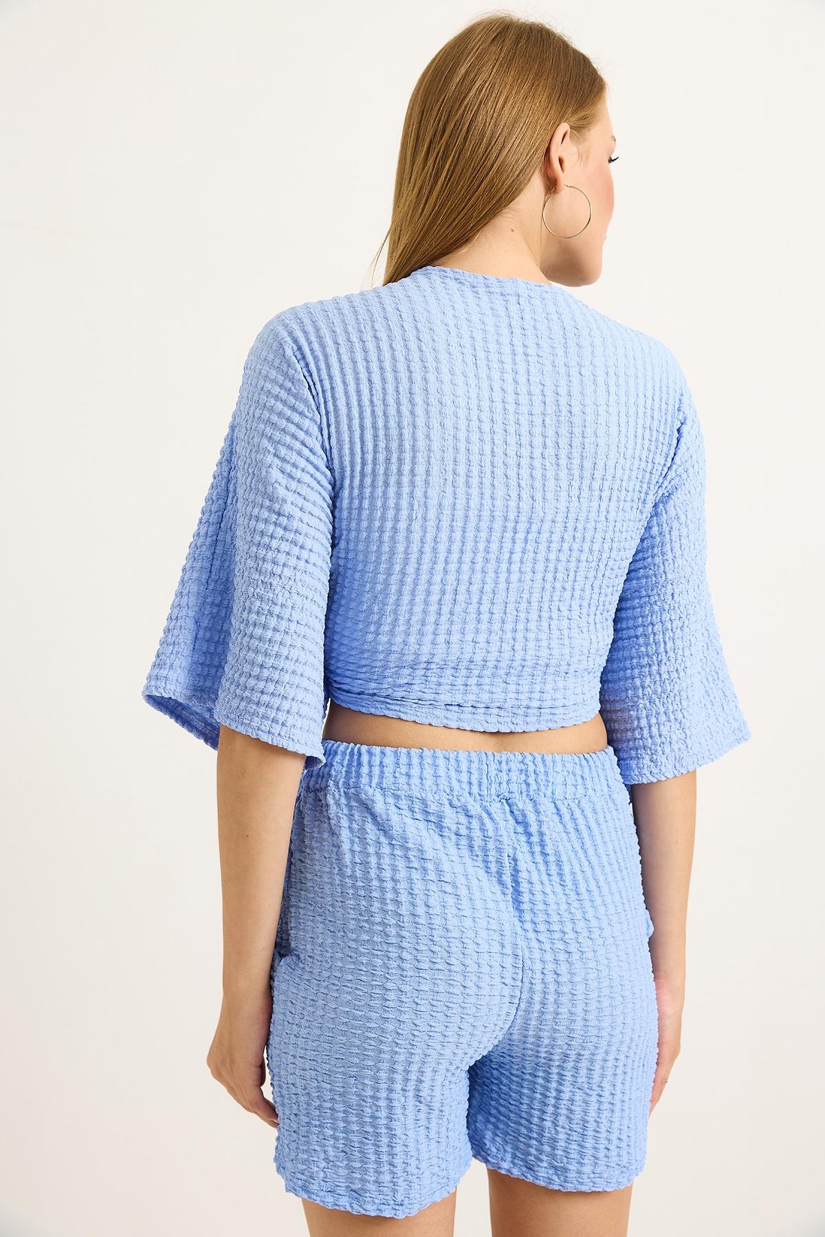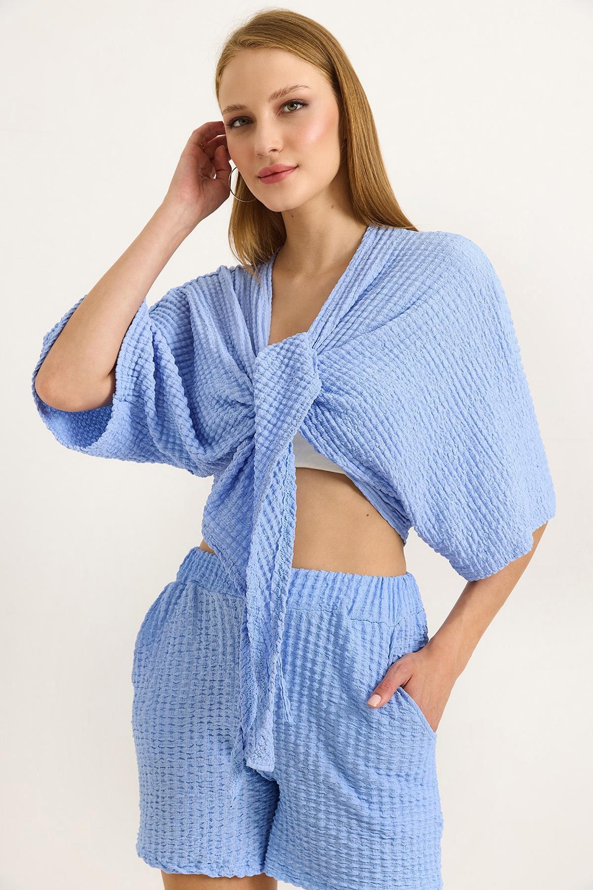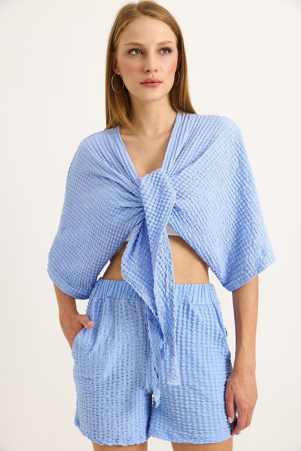Önden Bağlamalı Yarasa Kol Kadın Bluz Mavi (251142BLZXMVİ)