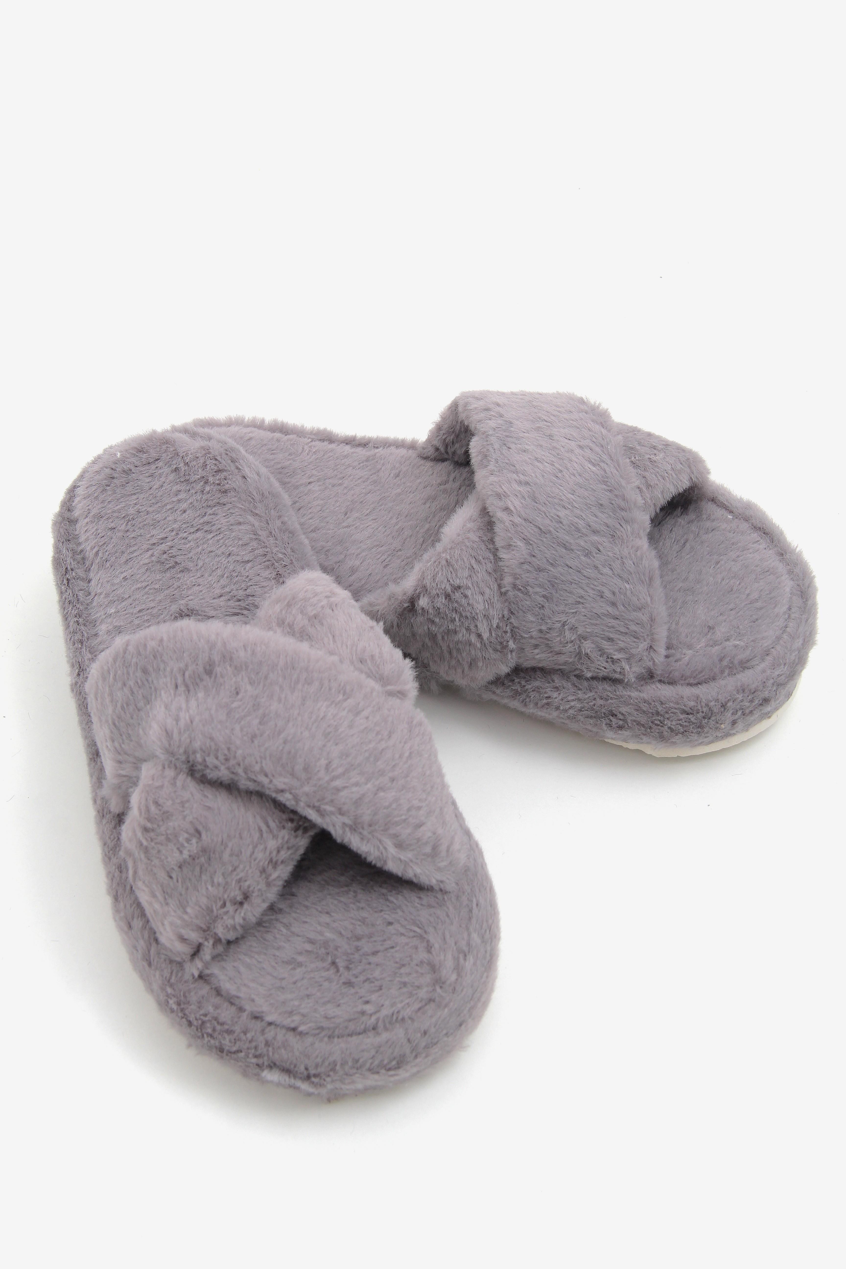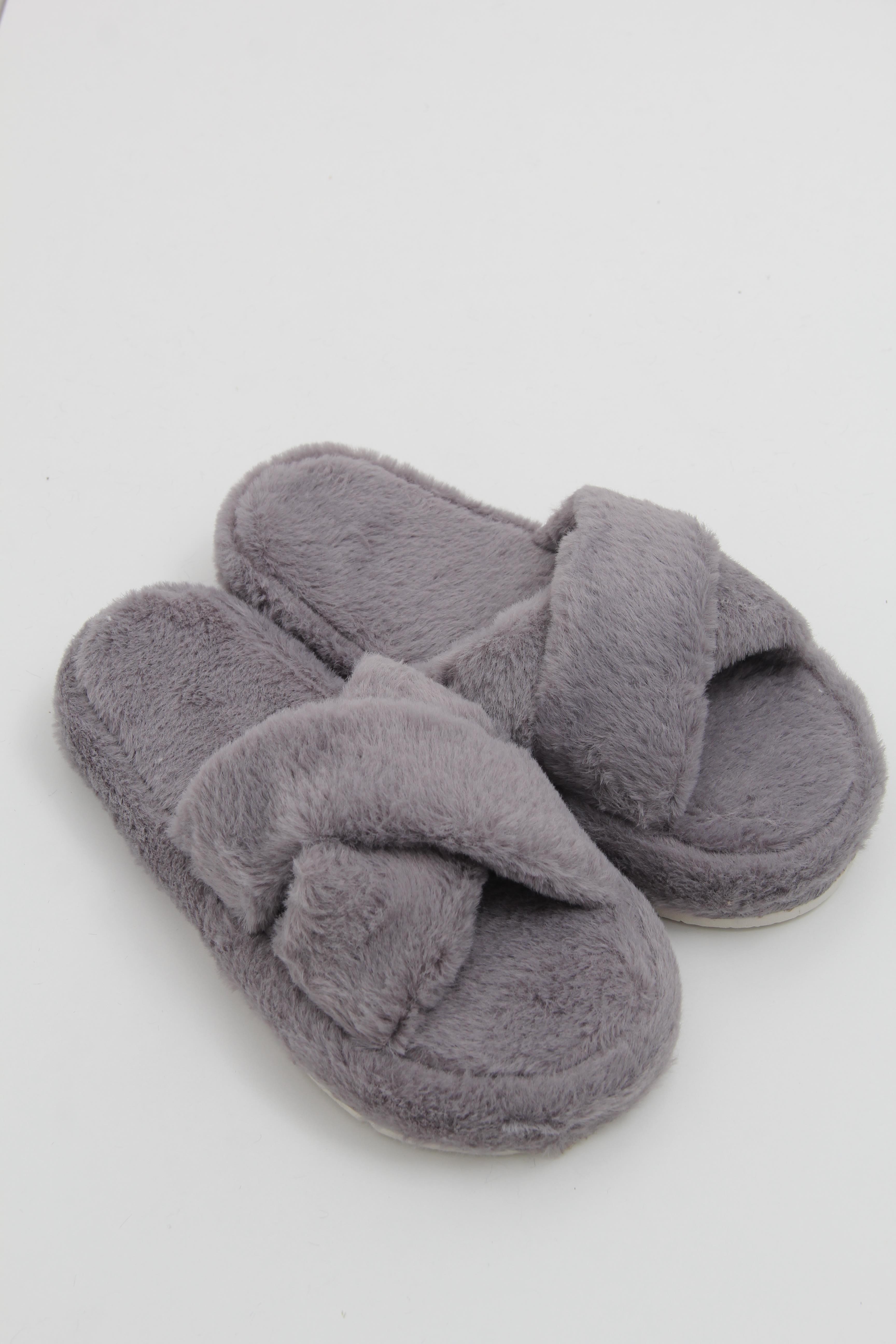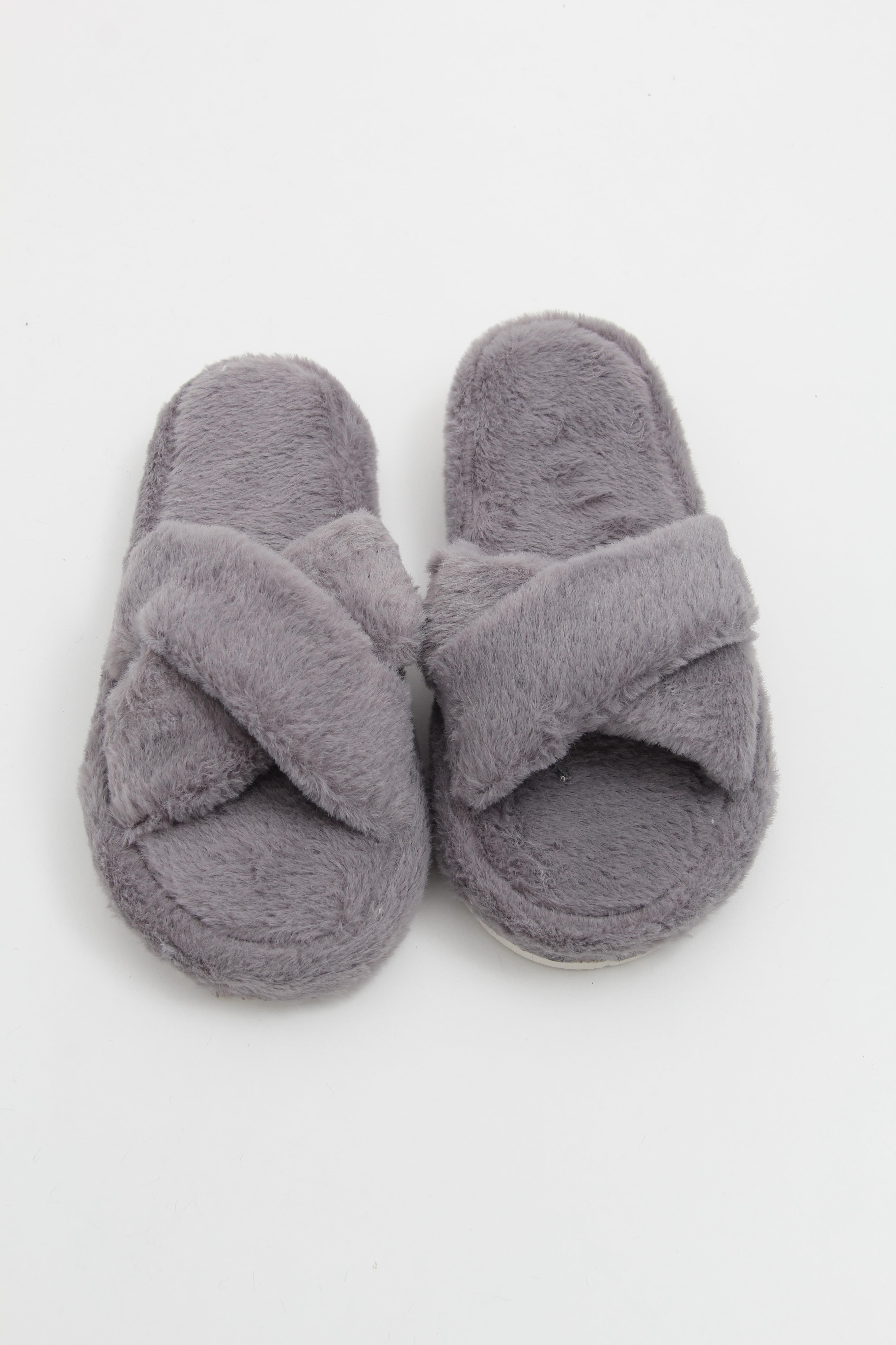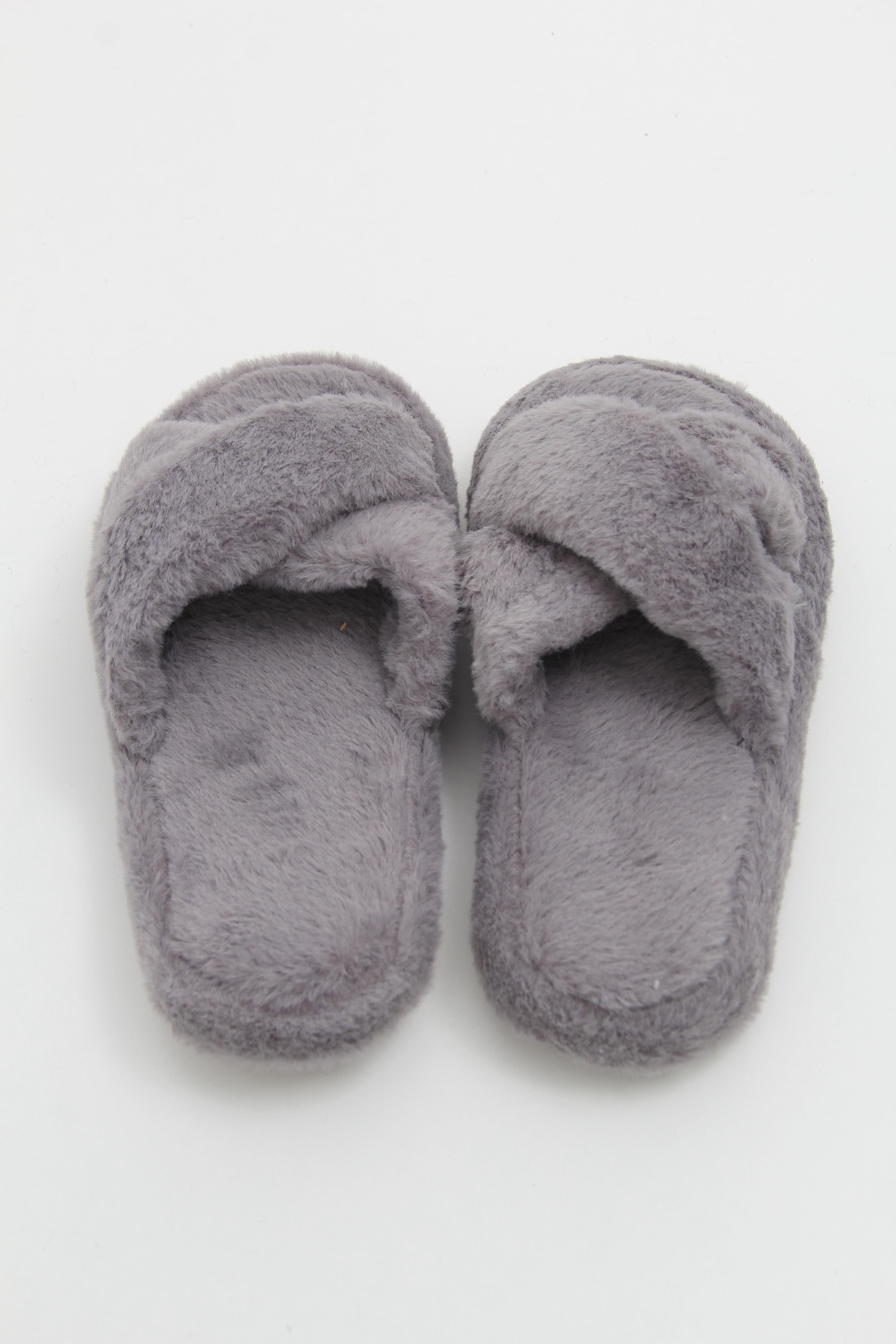 Önü Açık Pofuduk Çapraz Model Ev Terliği Gri (251290TRLXGRİ)