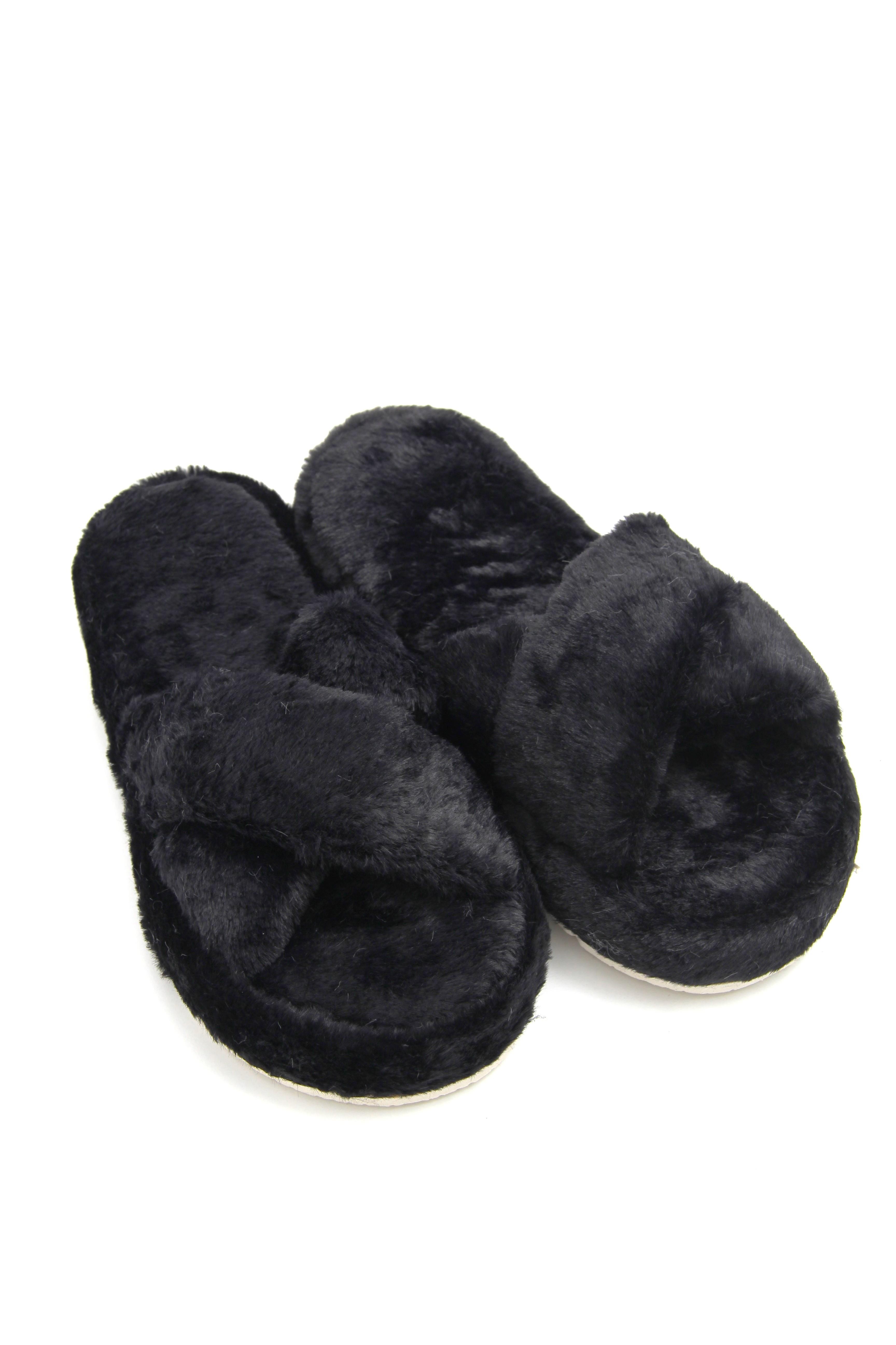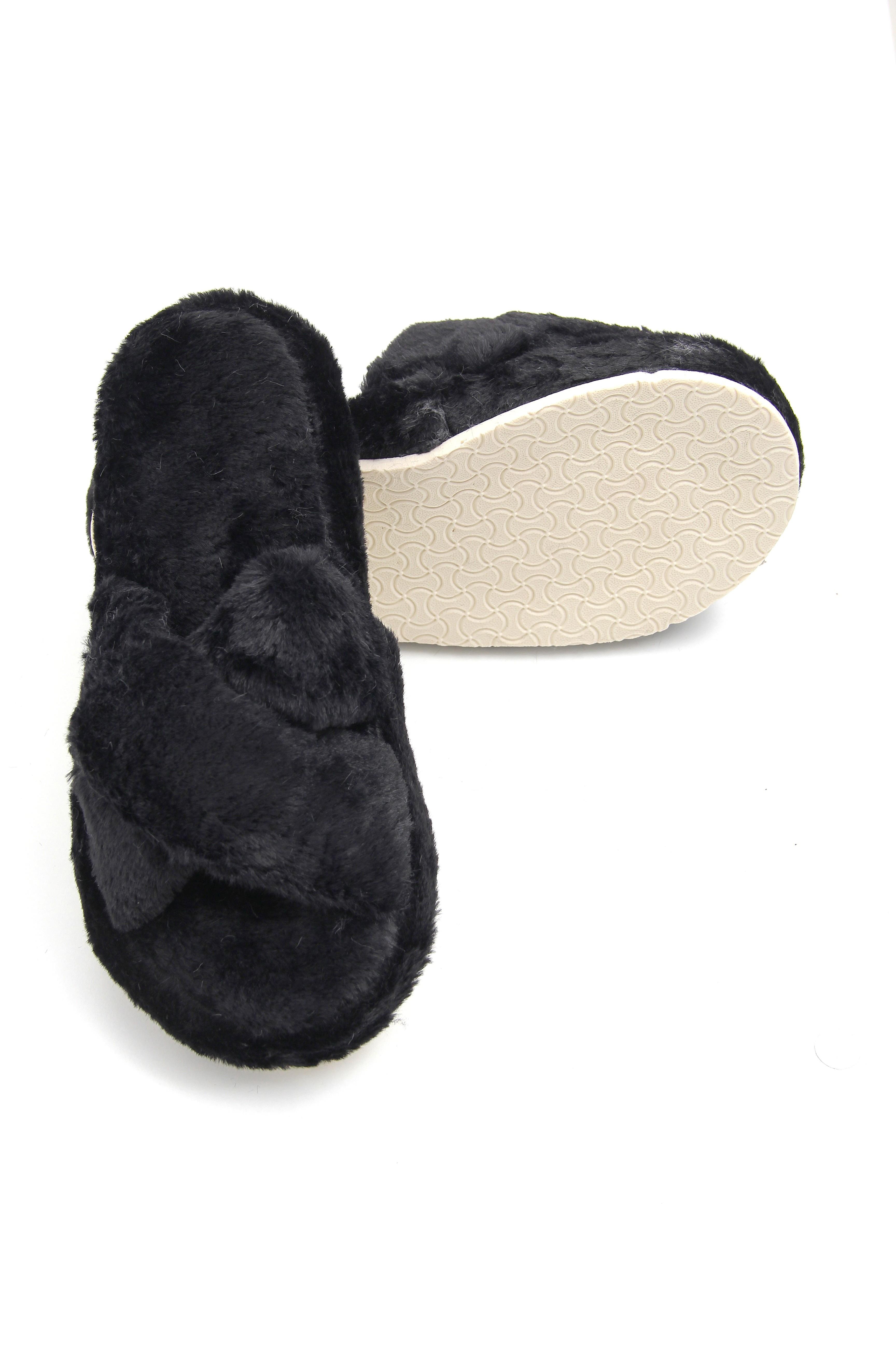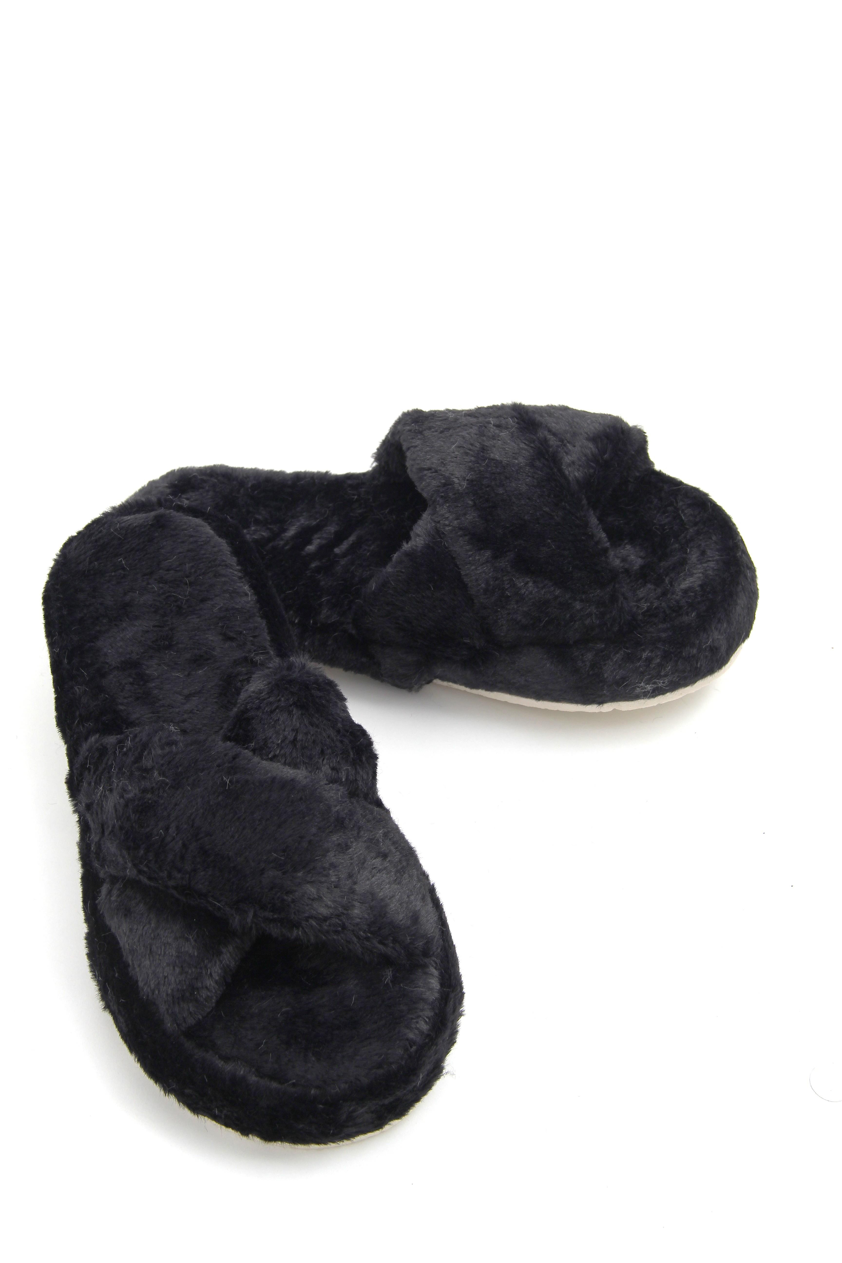Önü Açık Pofuduk Çapraz Model Ev Terliği Siyah (251290TRLXSYH)