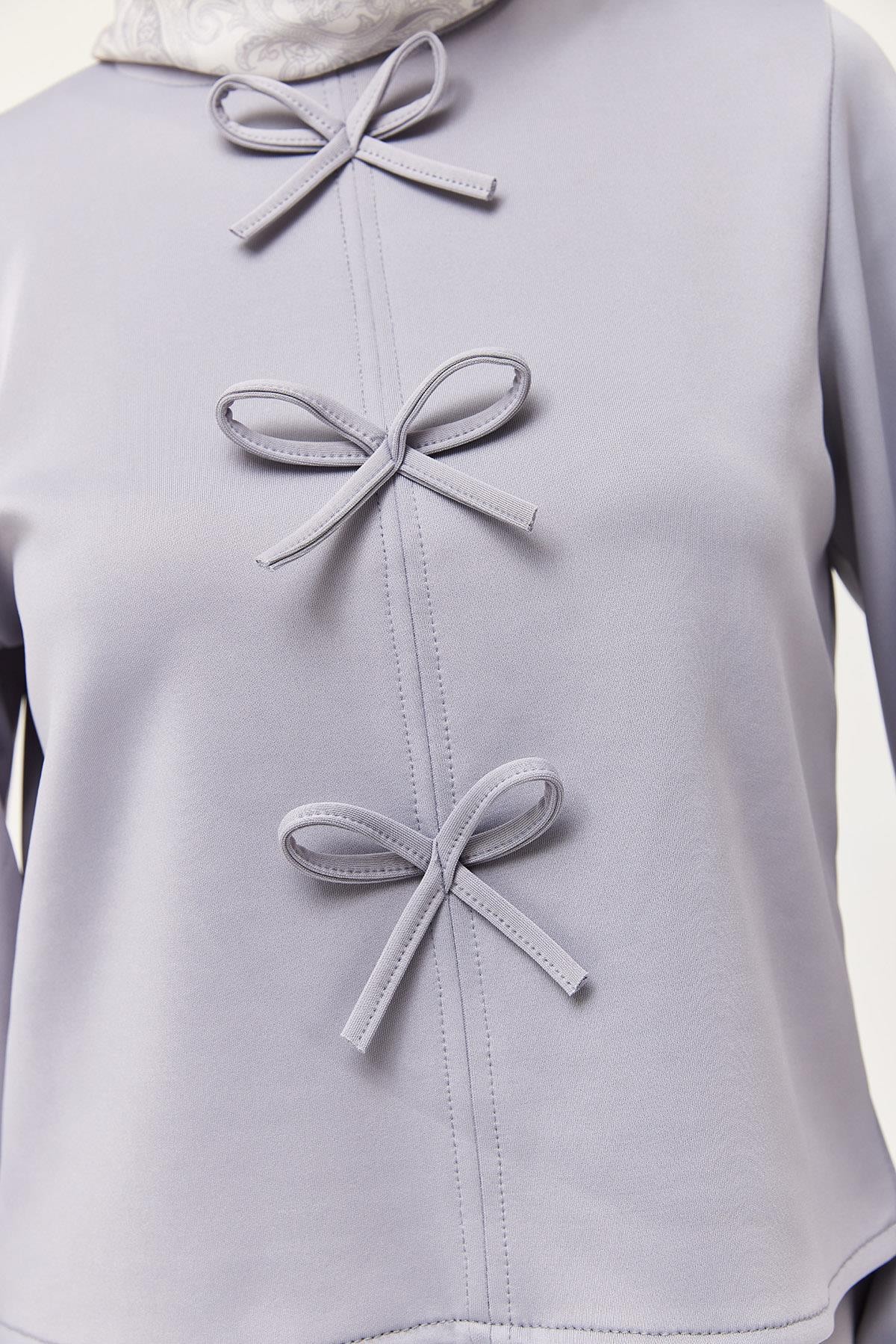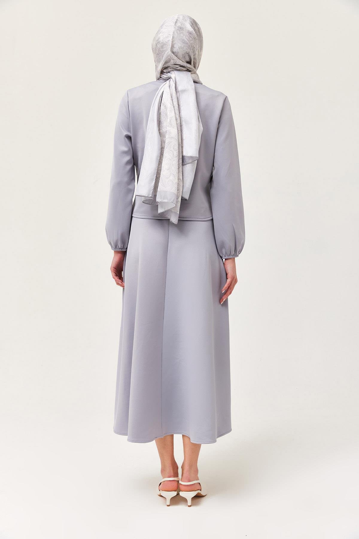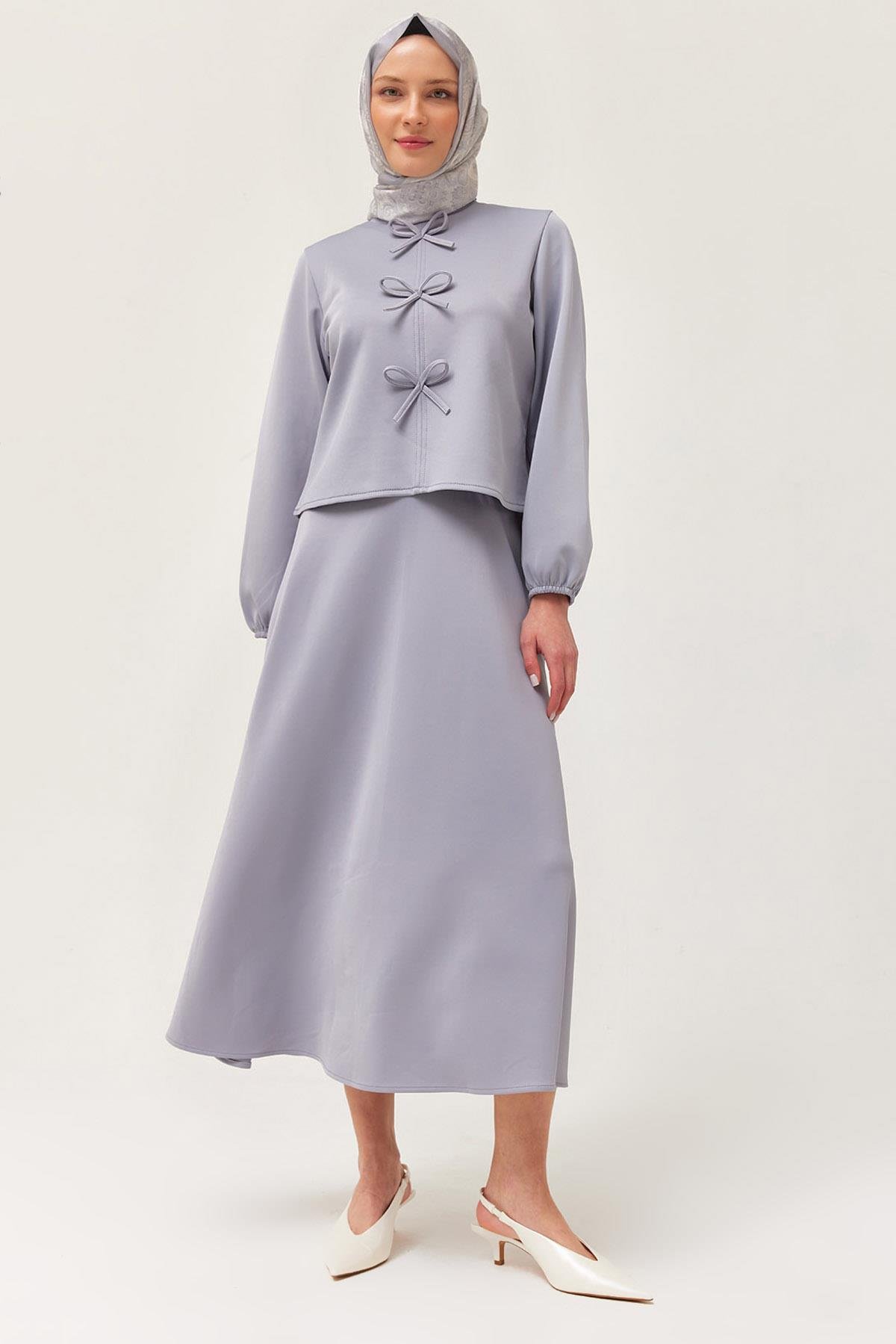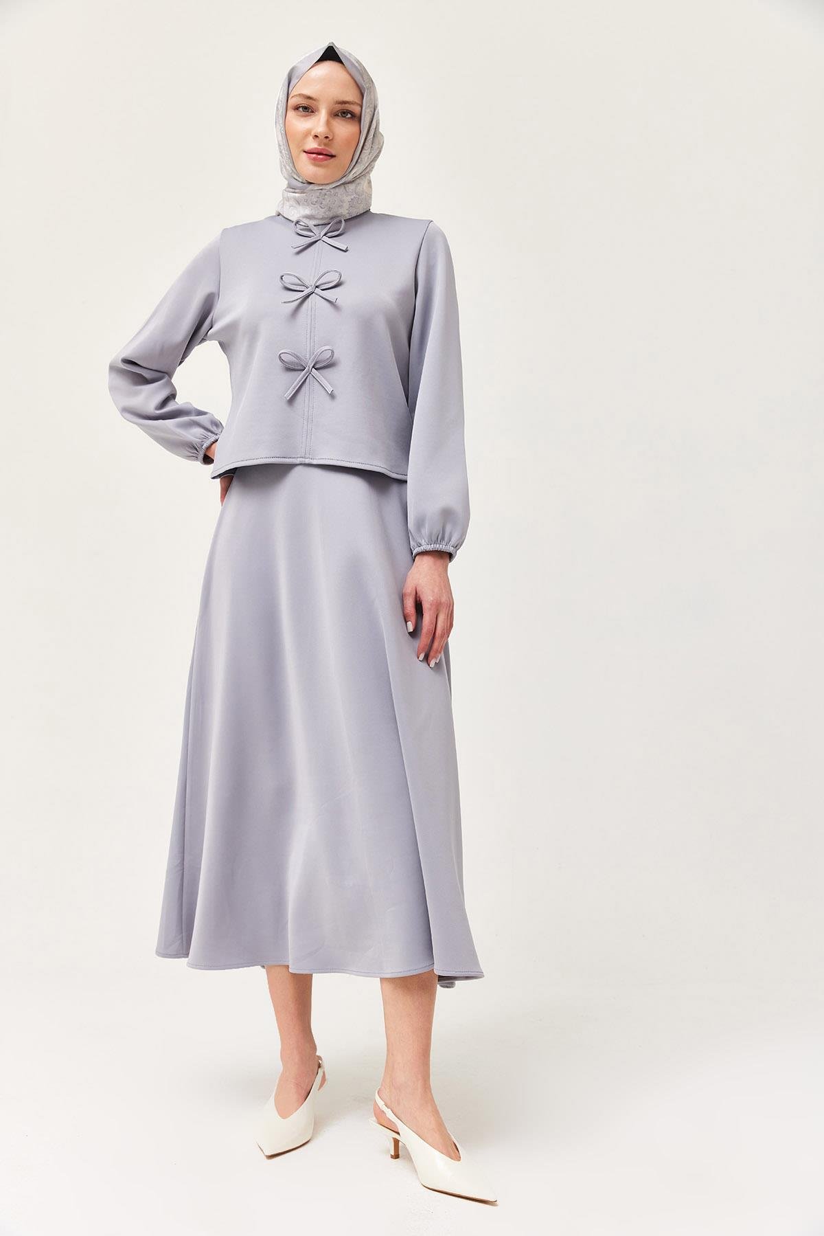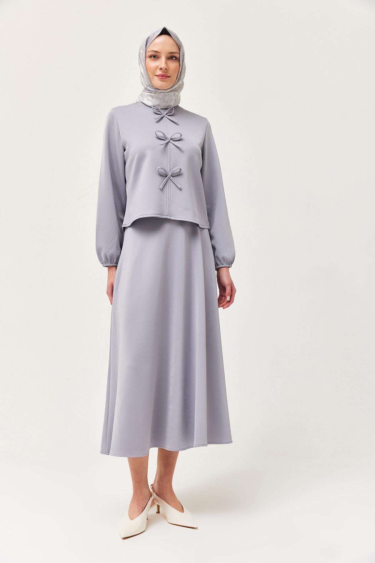 Önü Fiyonklu Etekli Scuba İkili Takım Gri (250388TKMXGRİ)