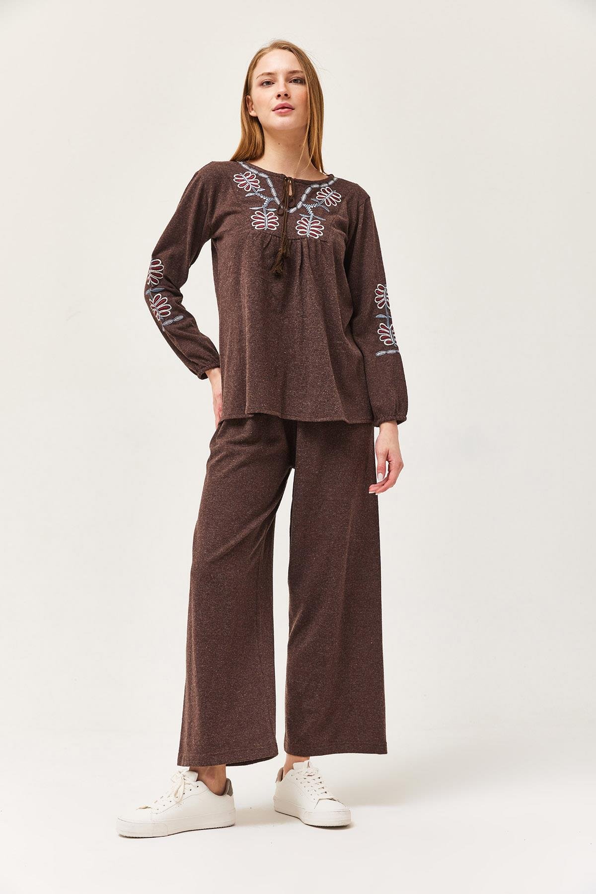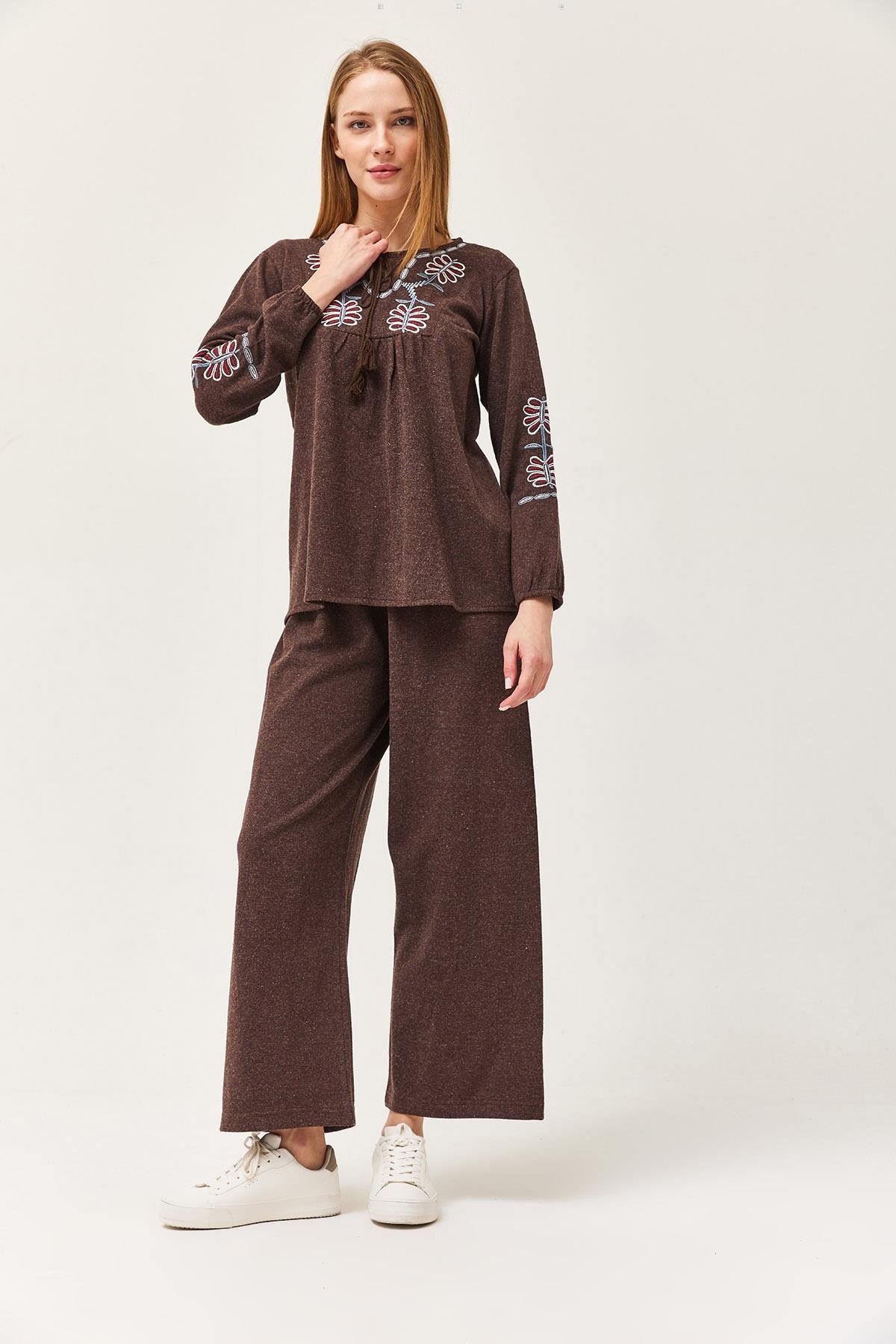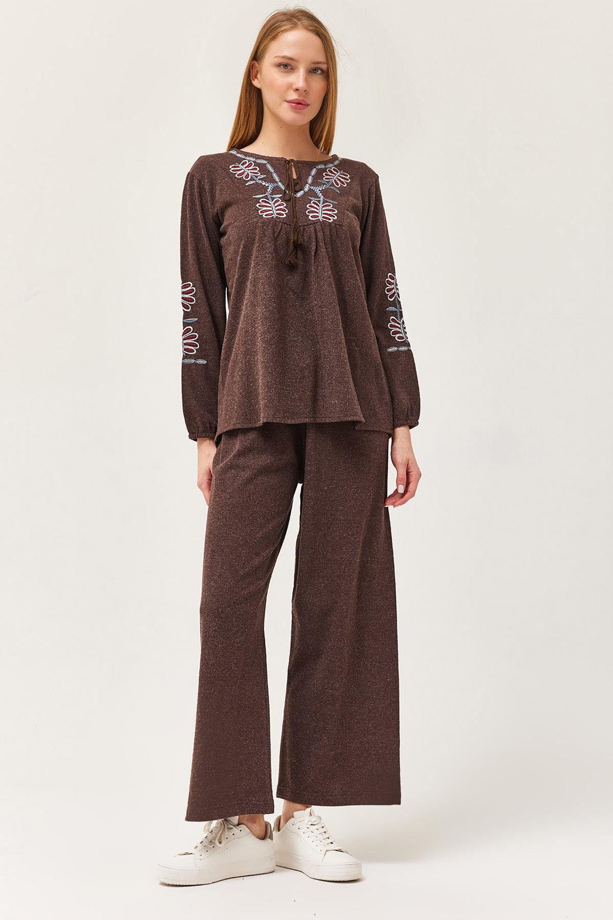 Önü İşlemeli Püsküllü İkili Takım Kahverengi (250377TKMXKHV)