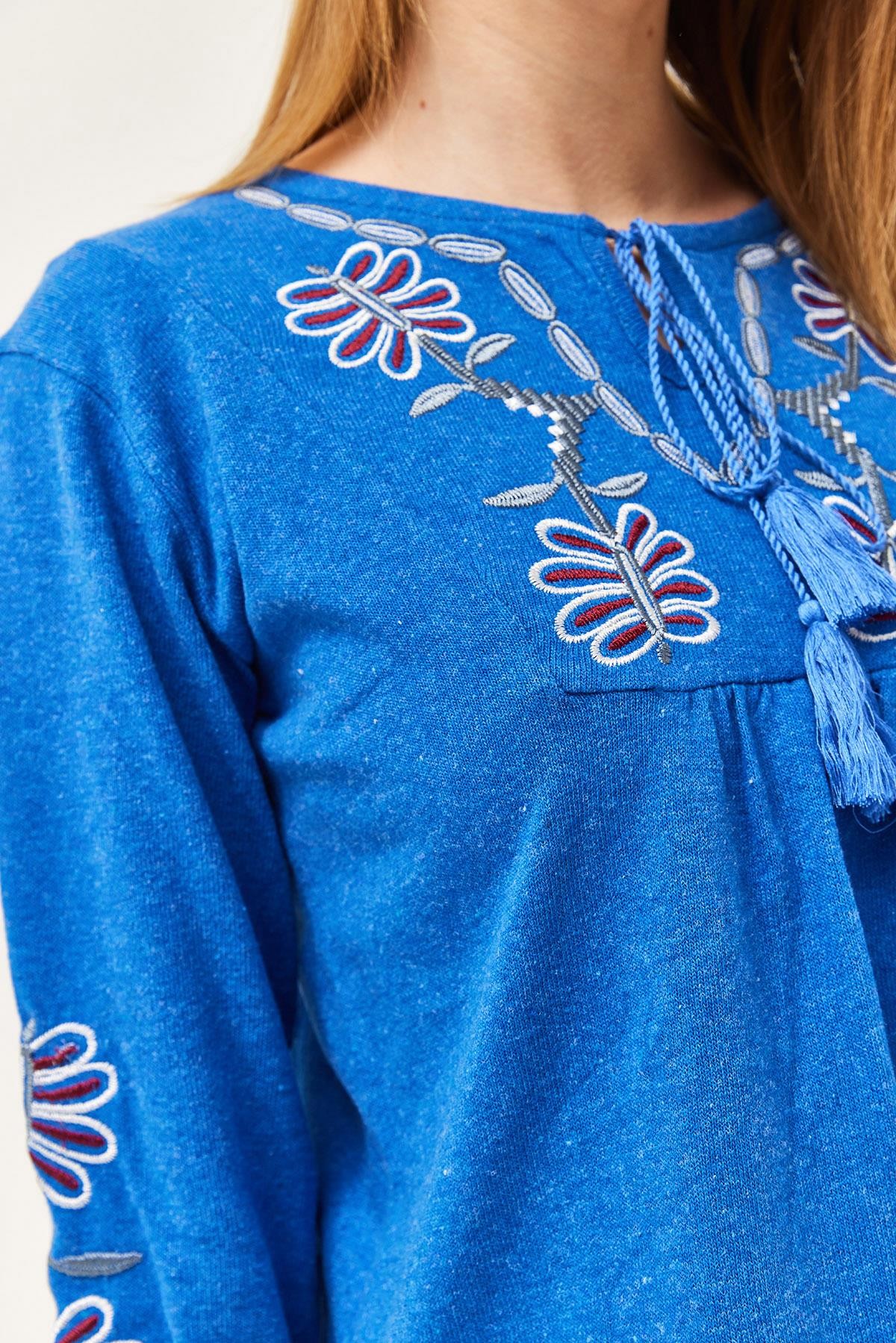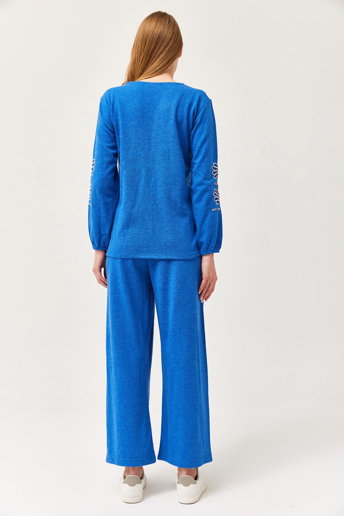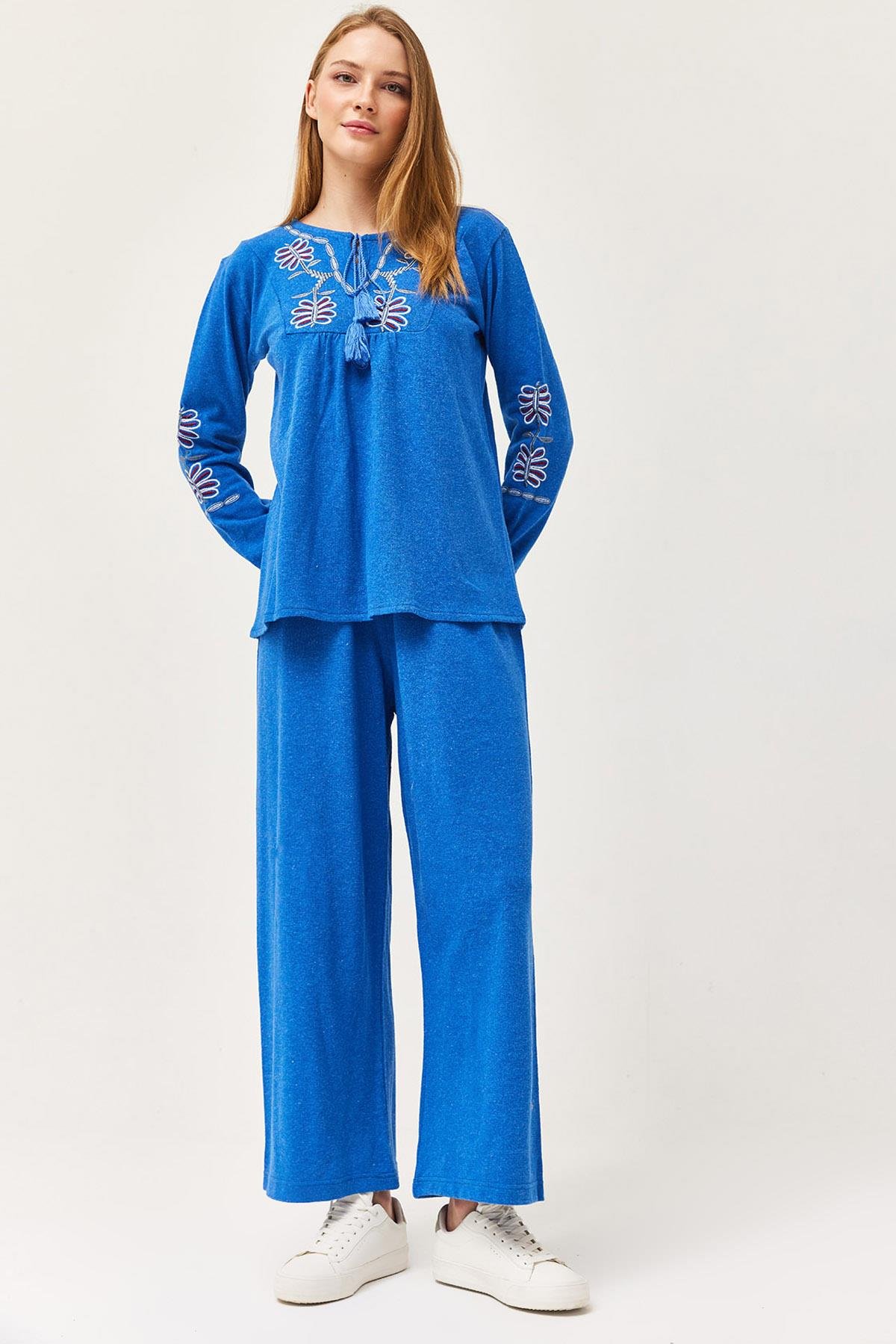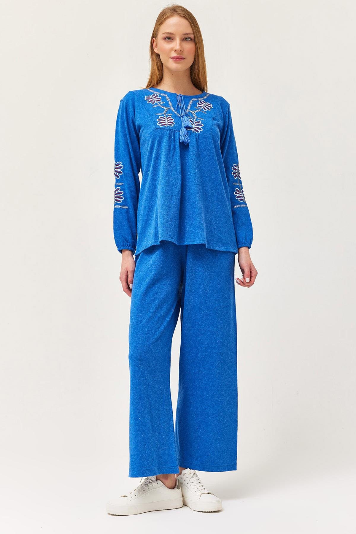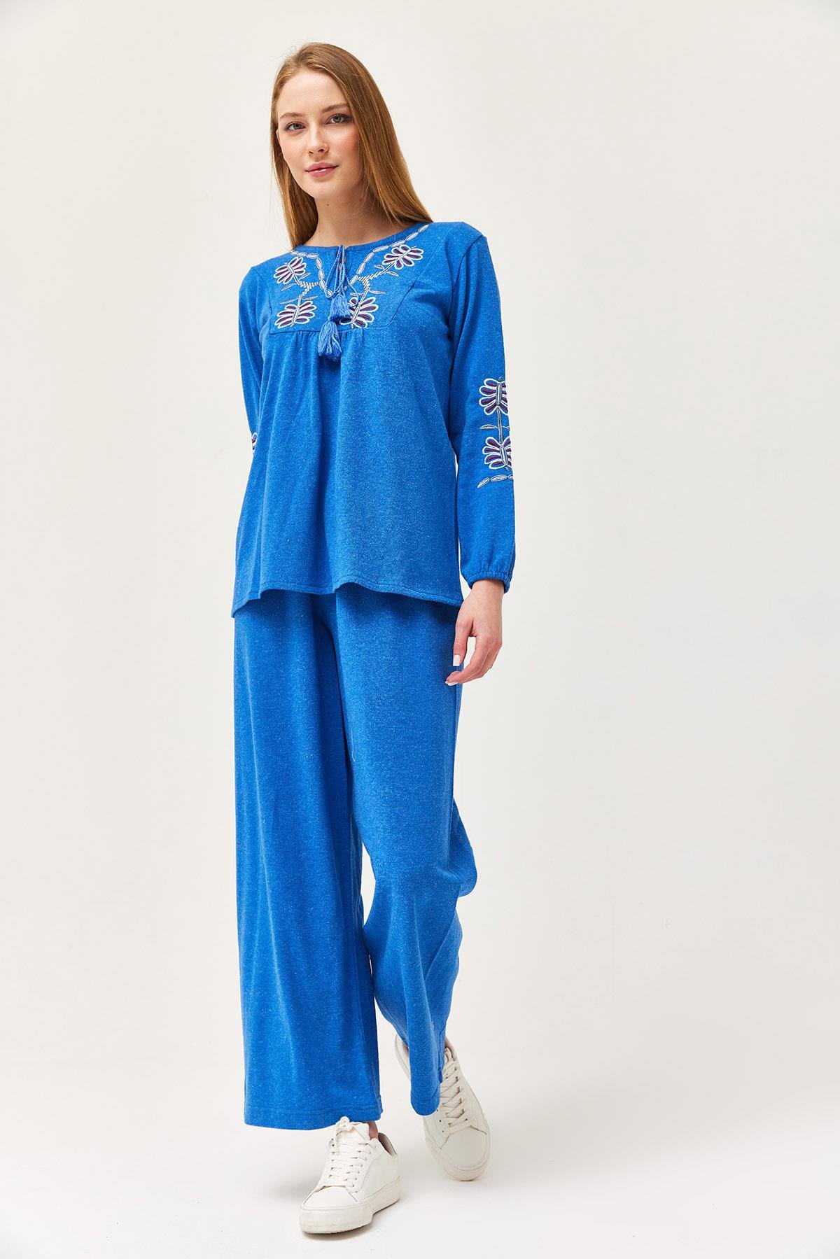 Önü İşlemeli Püsküllü İkili Takım Mavi (250377TKMXMVİ)