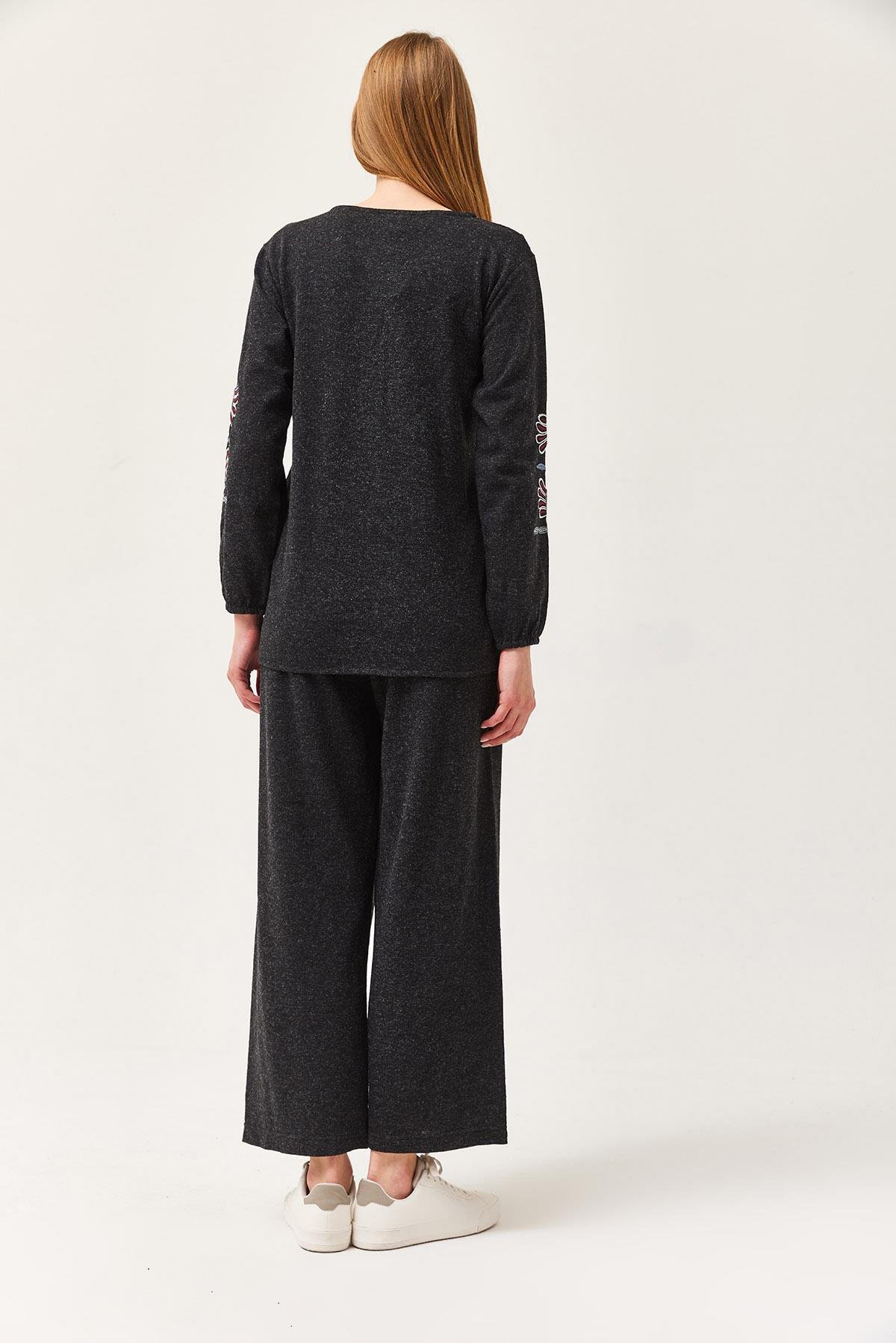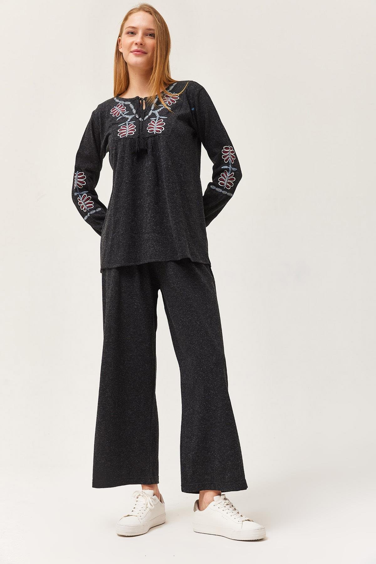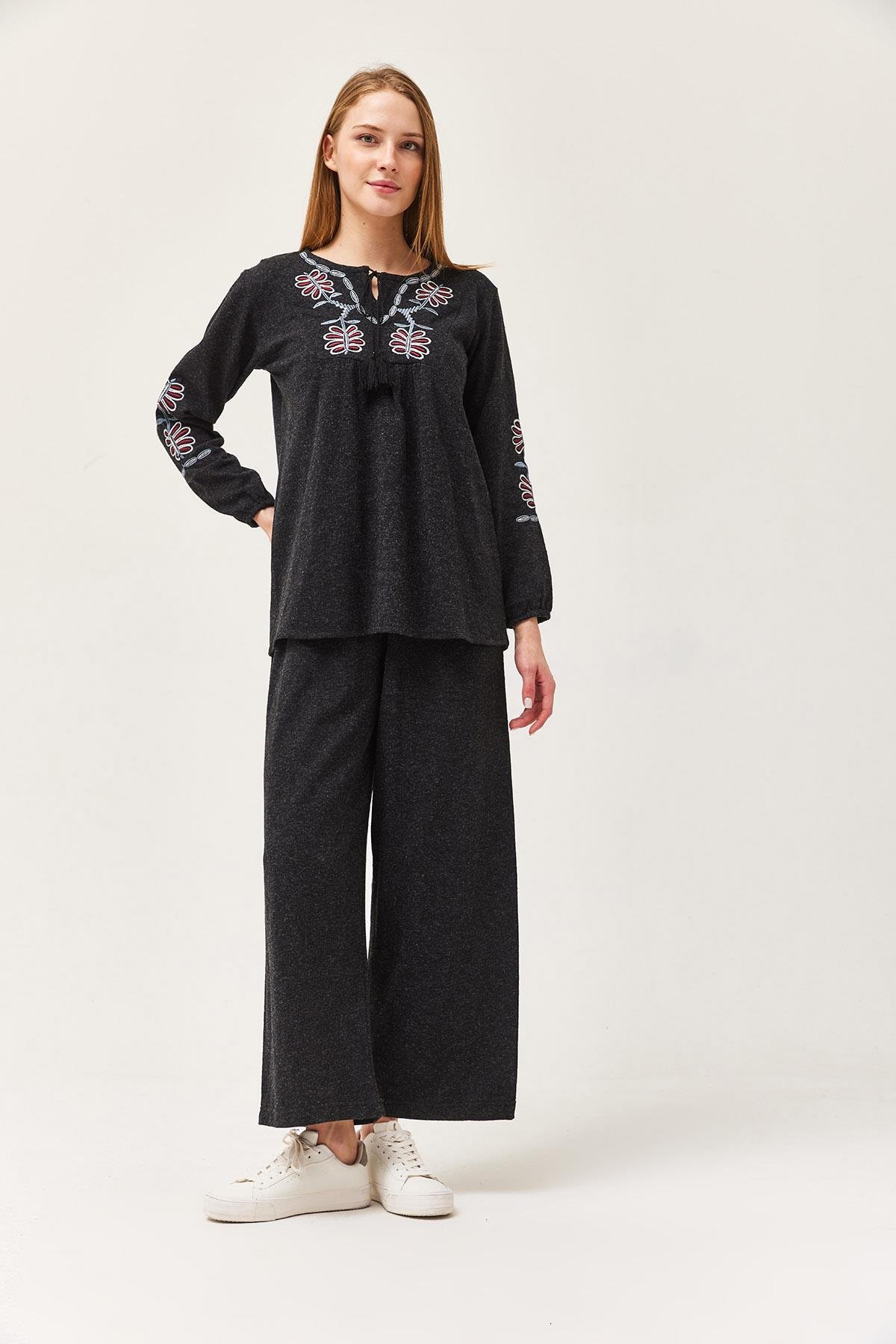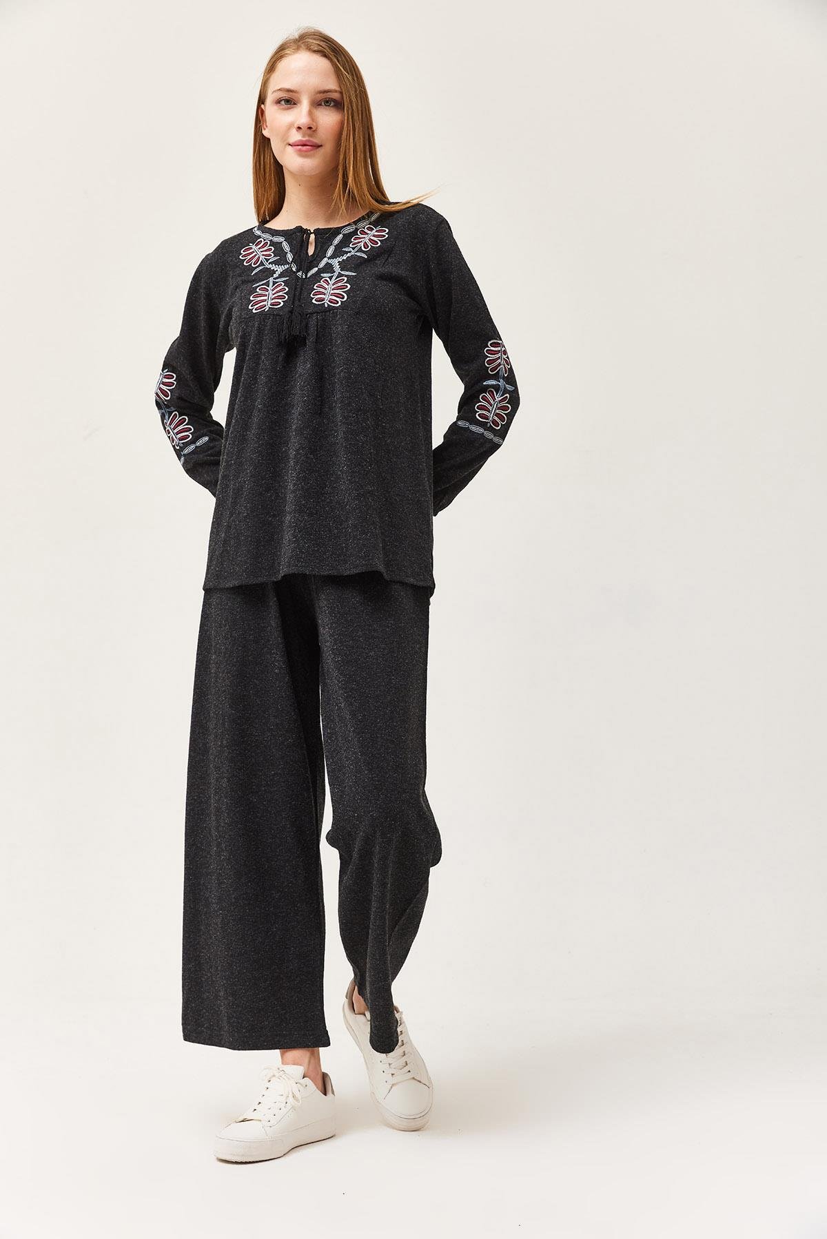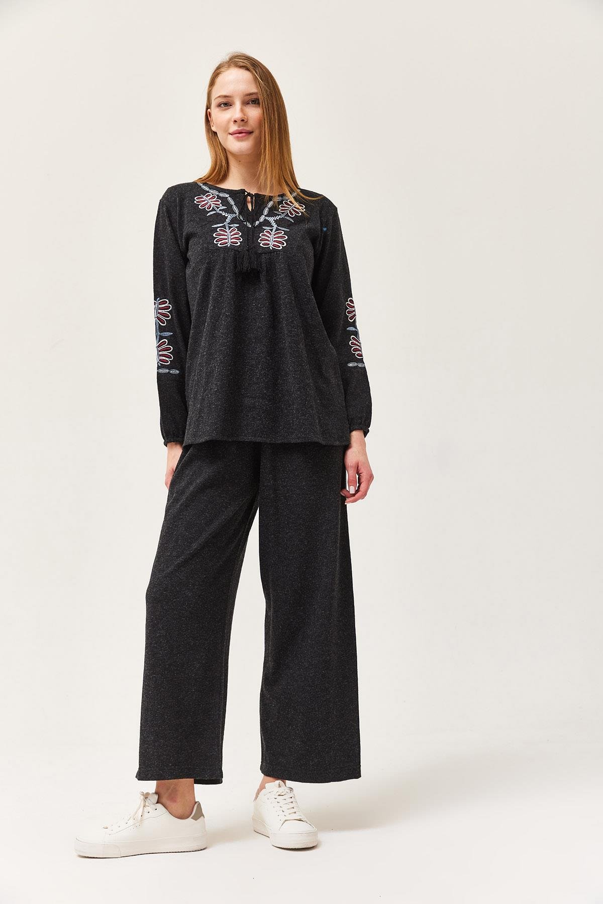 Önü İşlemeli Püsküllü İkili Takım Siyah (250377TKMXSYH)