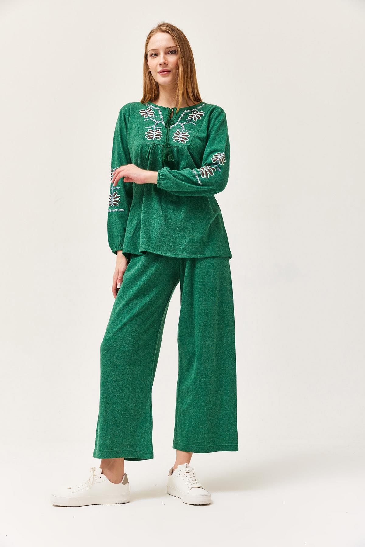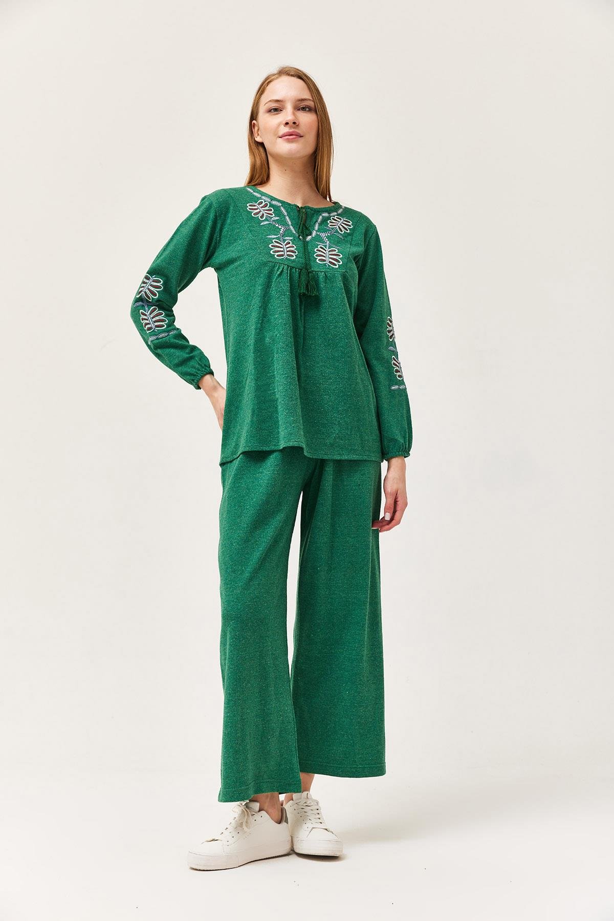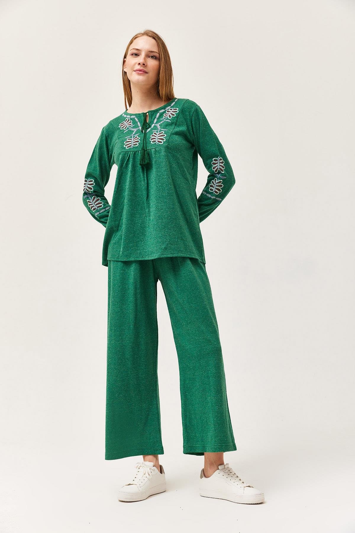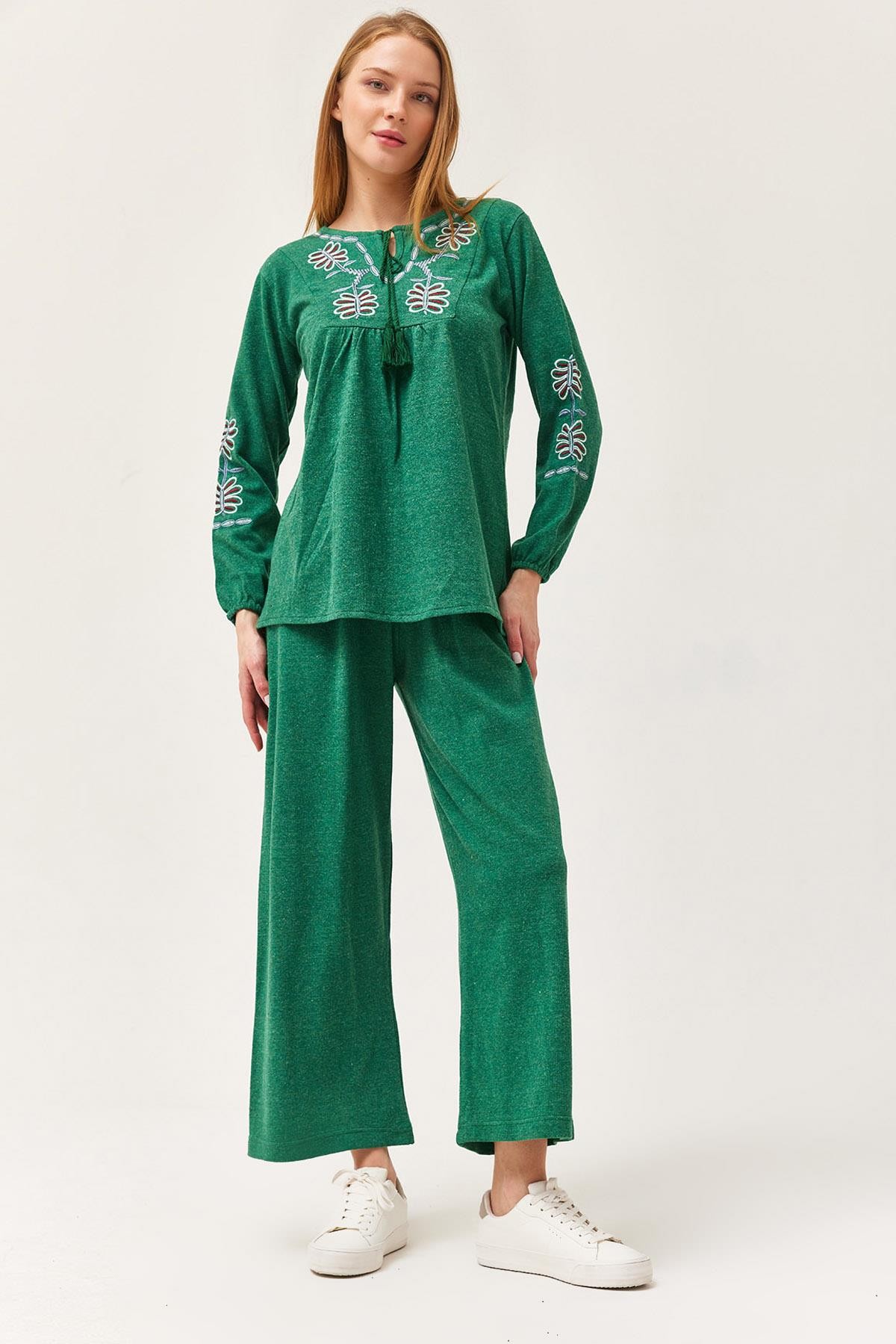 Önü İşlemeli Püsküllü İkili Takım Yeşil (250377TKMXYSL)