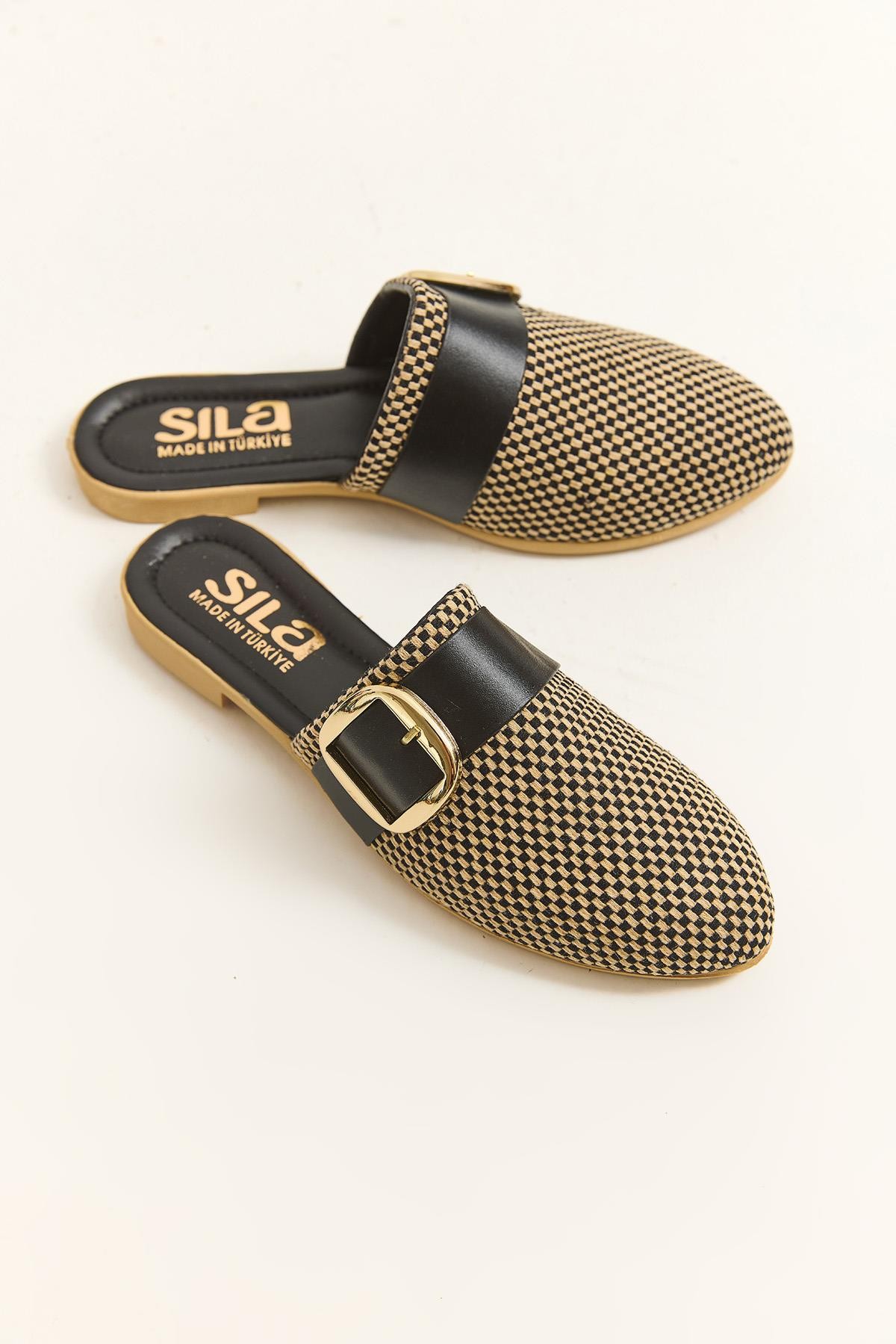 Önü Kapalı Aksesuarlı Terlik Siyah