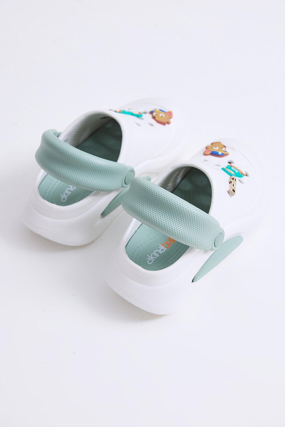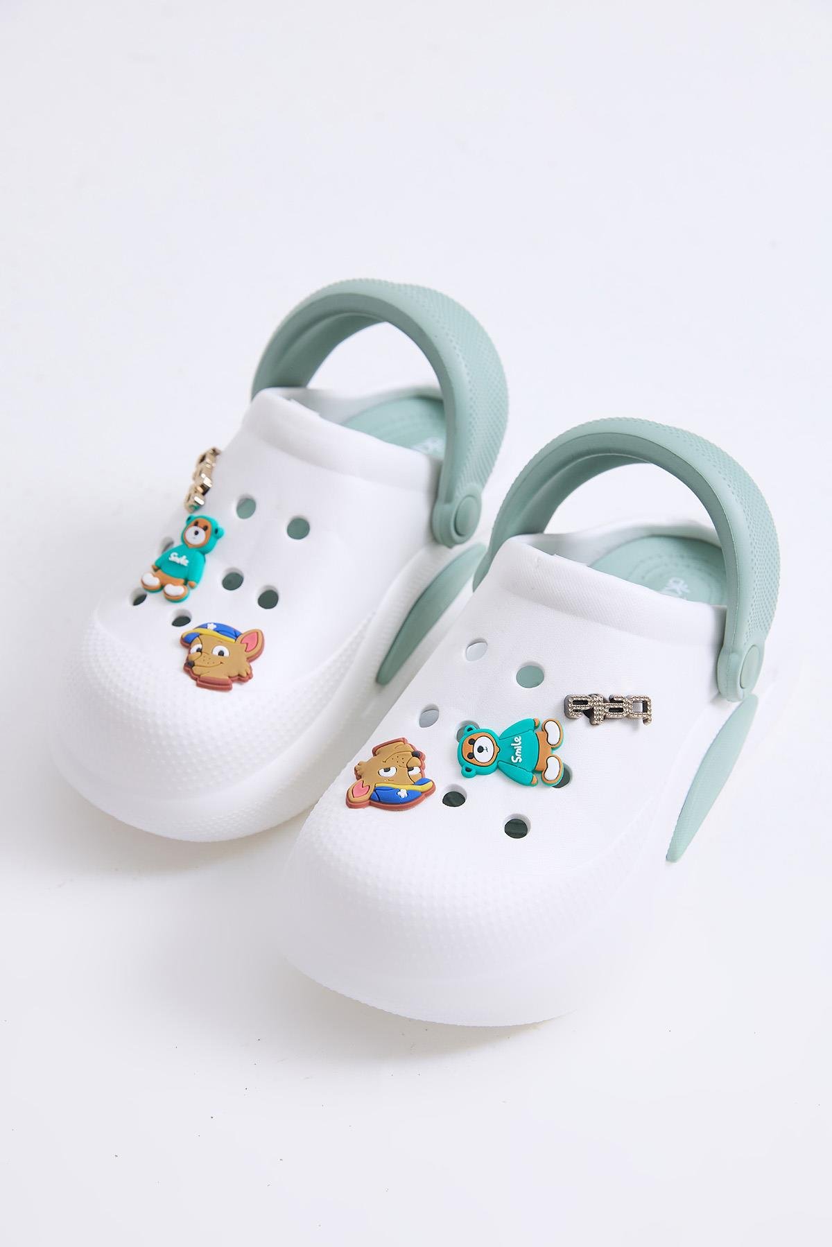 Önü Kapalı Çift Tabanlı Aksesuarlı Terlik Beyaz