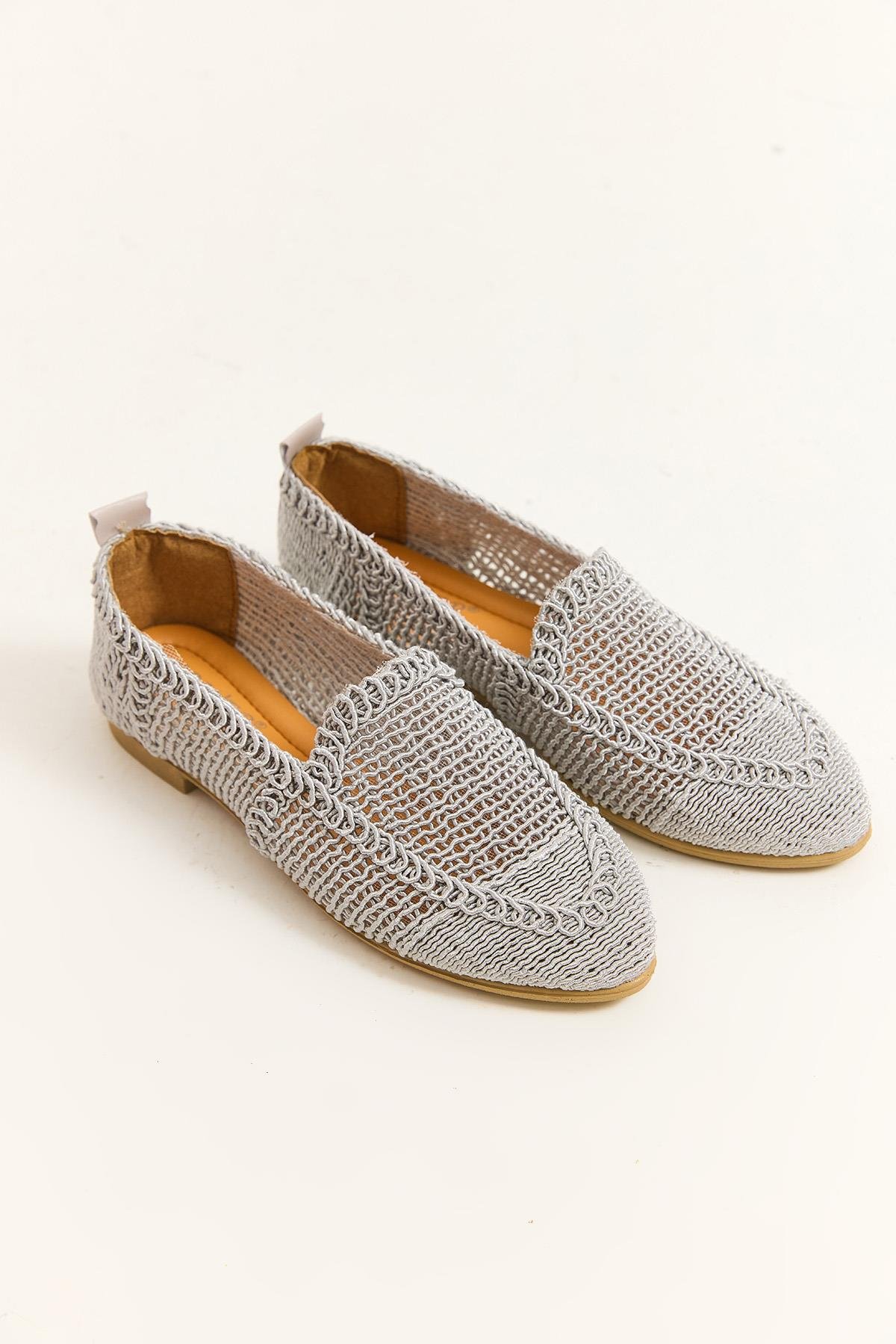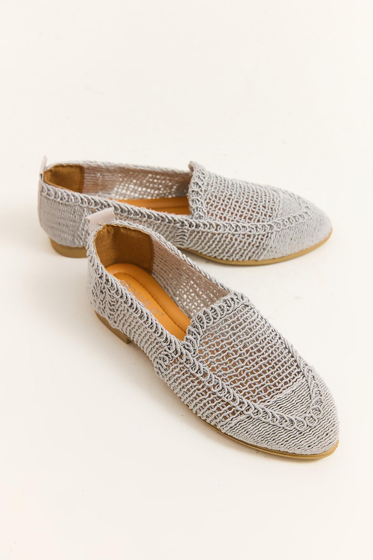 Örgü Tasarım Kadın Babet Ayakkabı Gri (252054AYKXGRİ)
