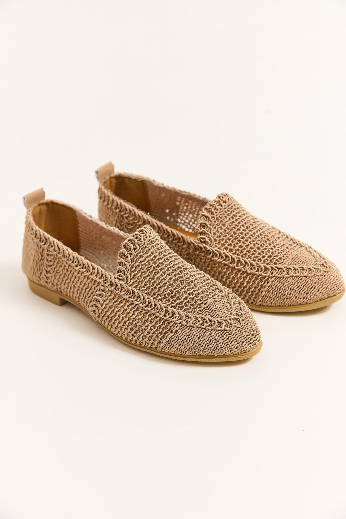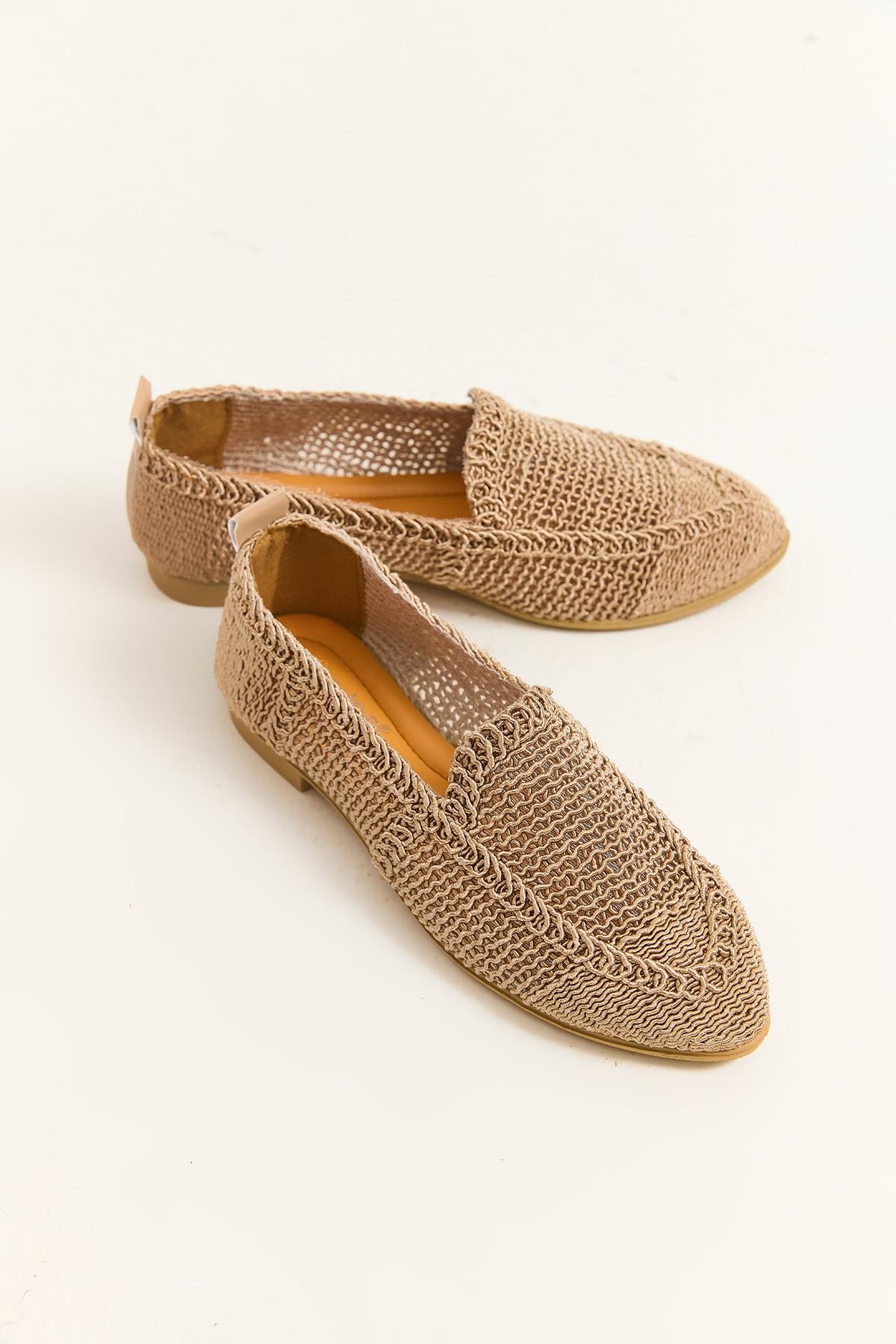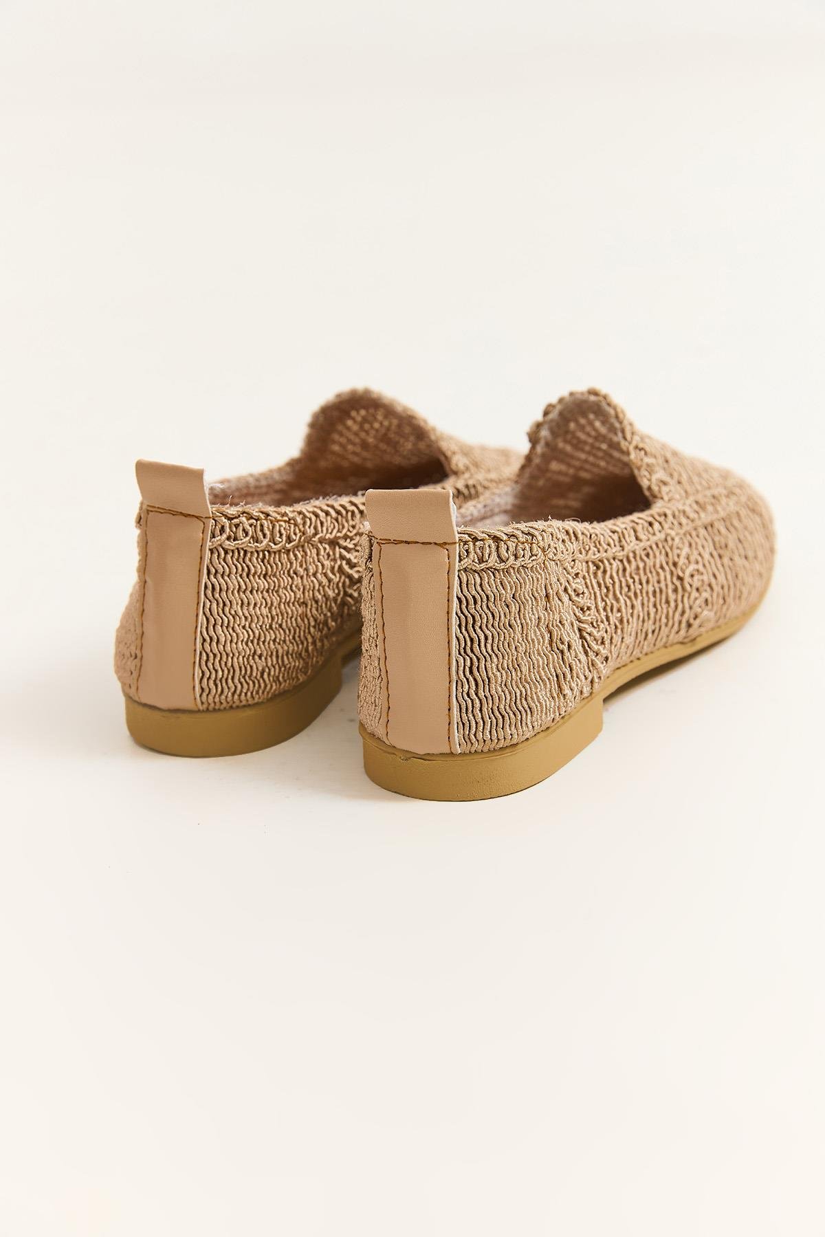 Örgü Tasarım Kadın Babet Ayakkabı Vizon