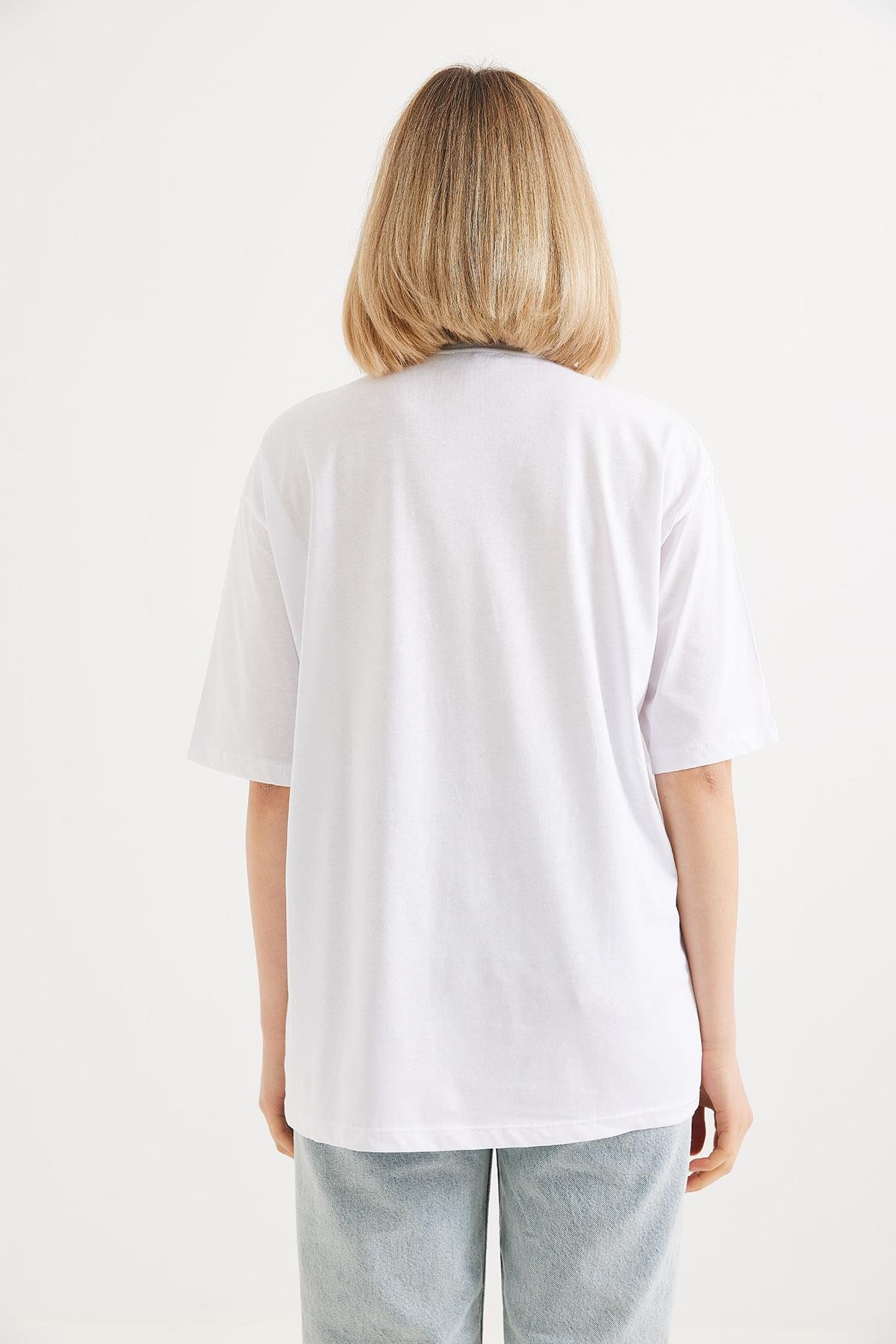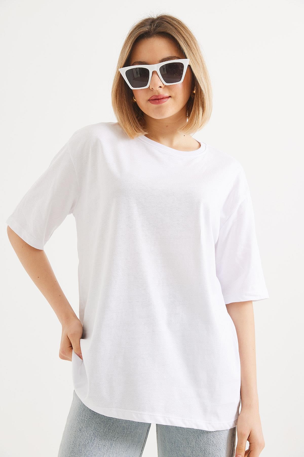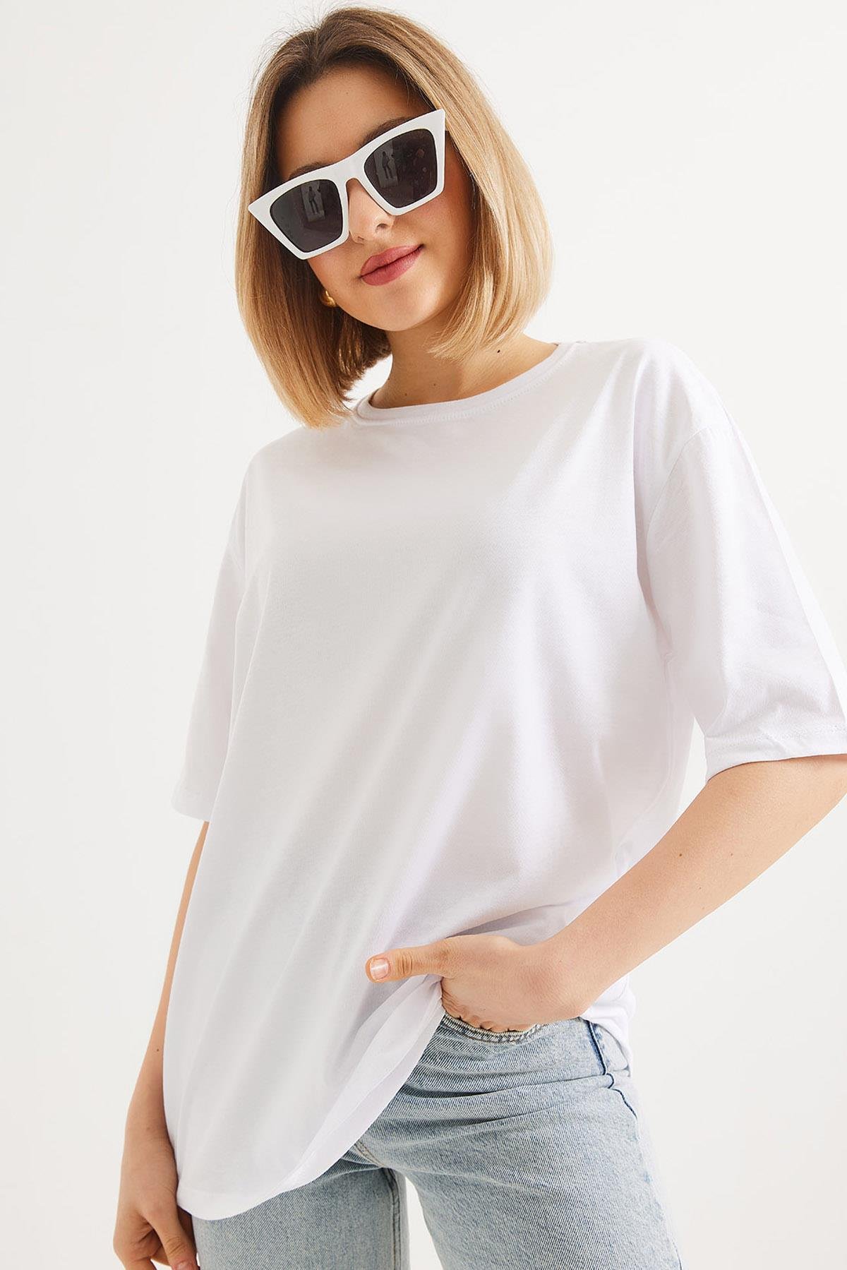 Oversize Bisiklet Yaka Basic Tshirt Beyaz (250561TSHXBYZ)