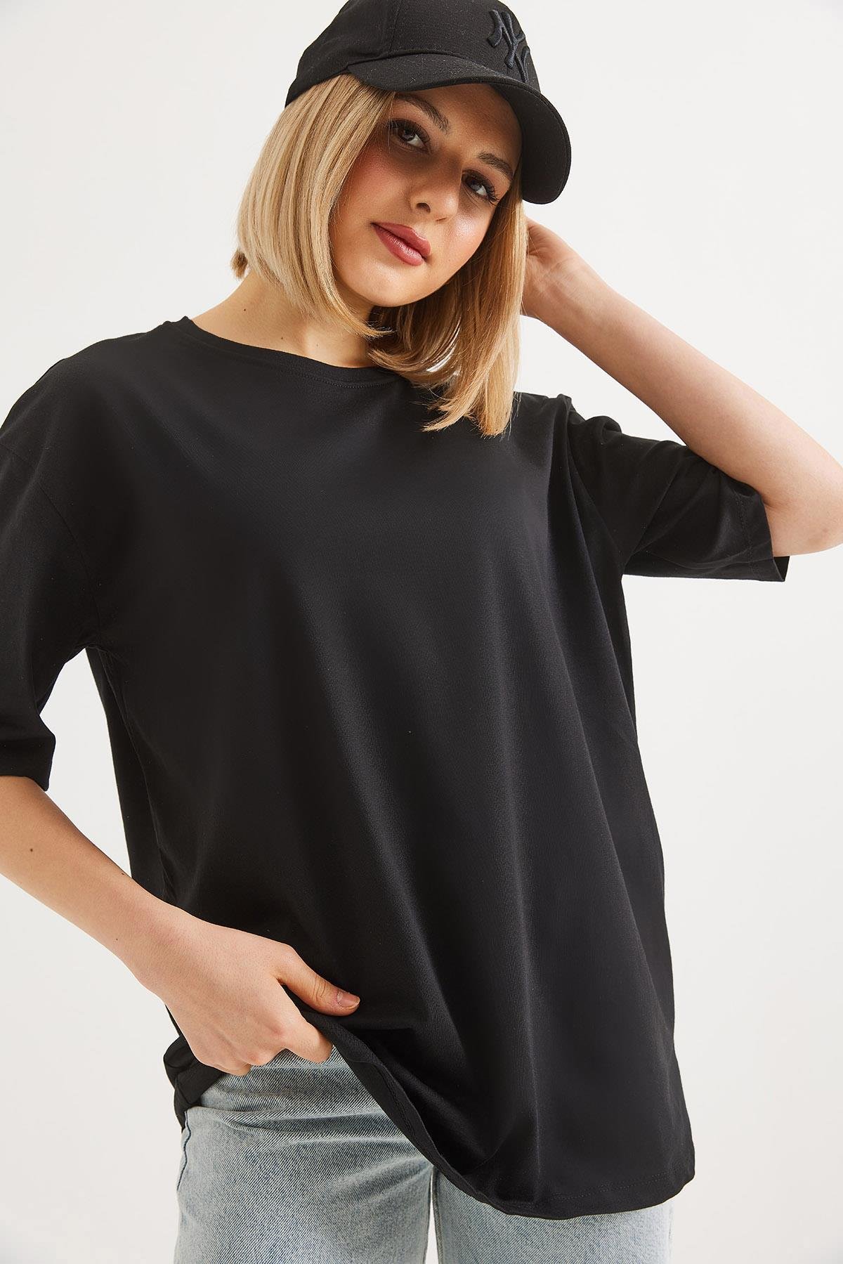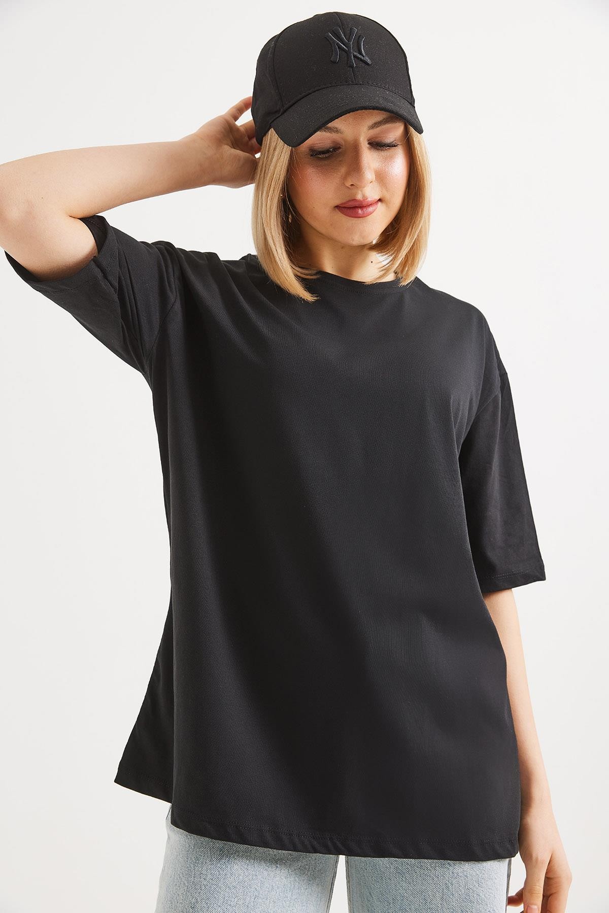 Oversize Bisiklet Yaka Basic Tshirt Siyah (250561TSHXSYH)
