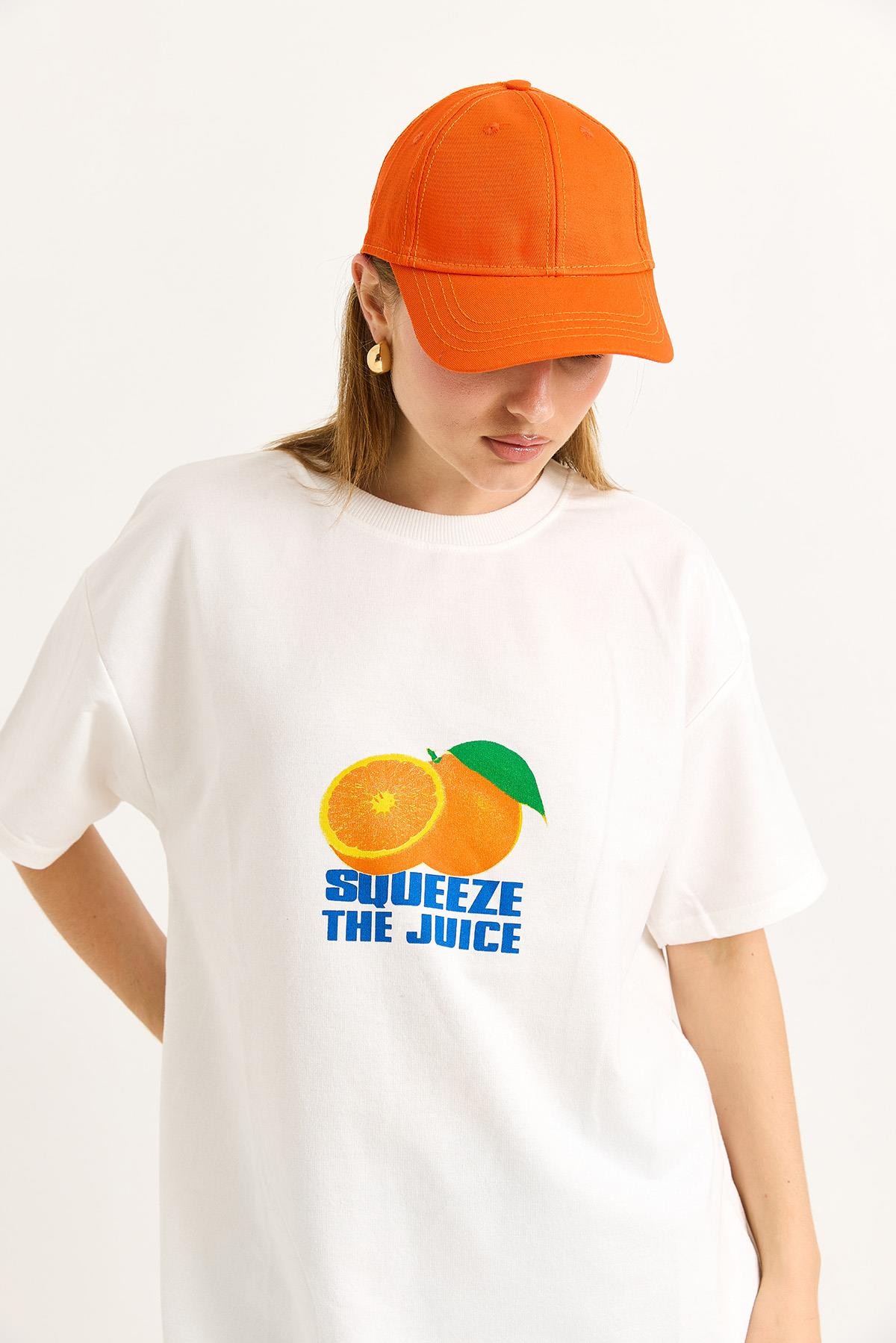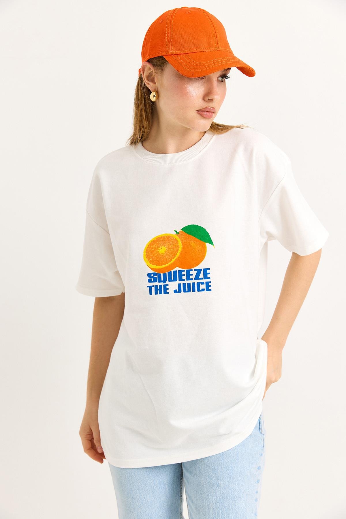 Oversize Ön ve Arka Baskılı Tshirt Beyaz