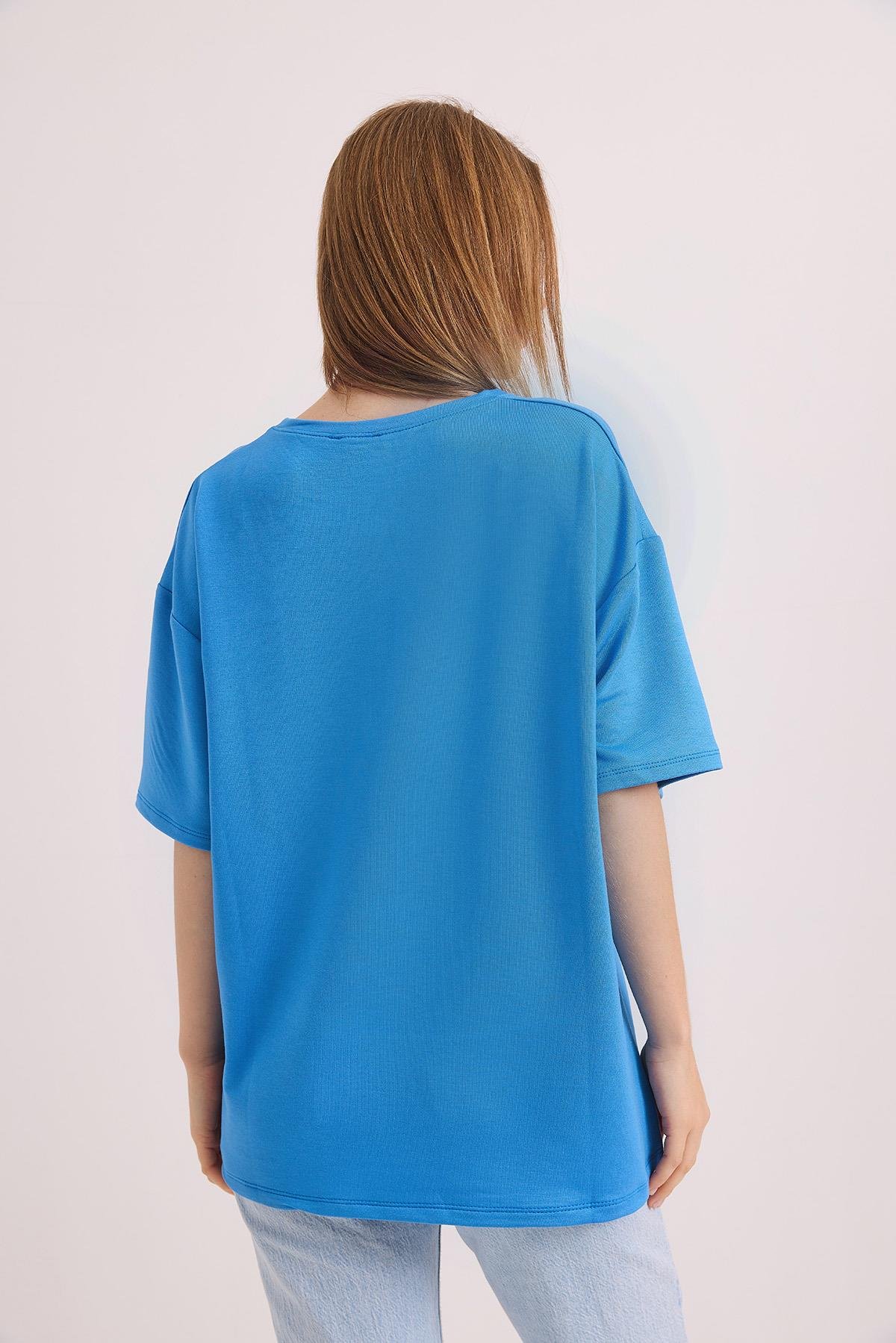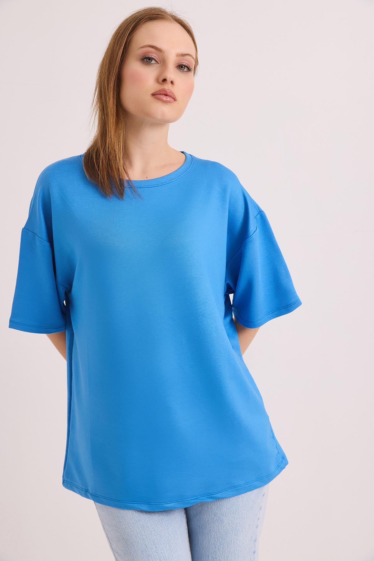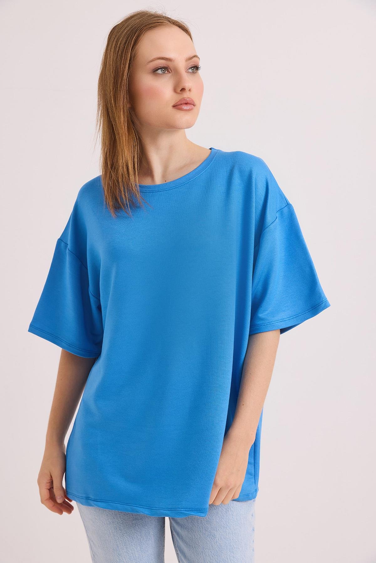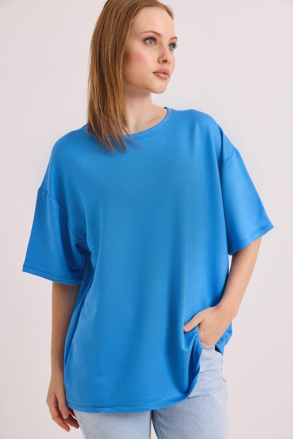 Oversize Yumuşak Dokulu Salaş T-Shirt Mavi (250847TSHXMVİ)
