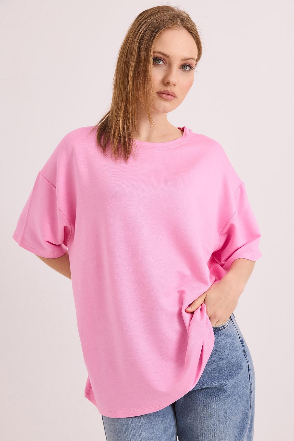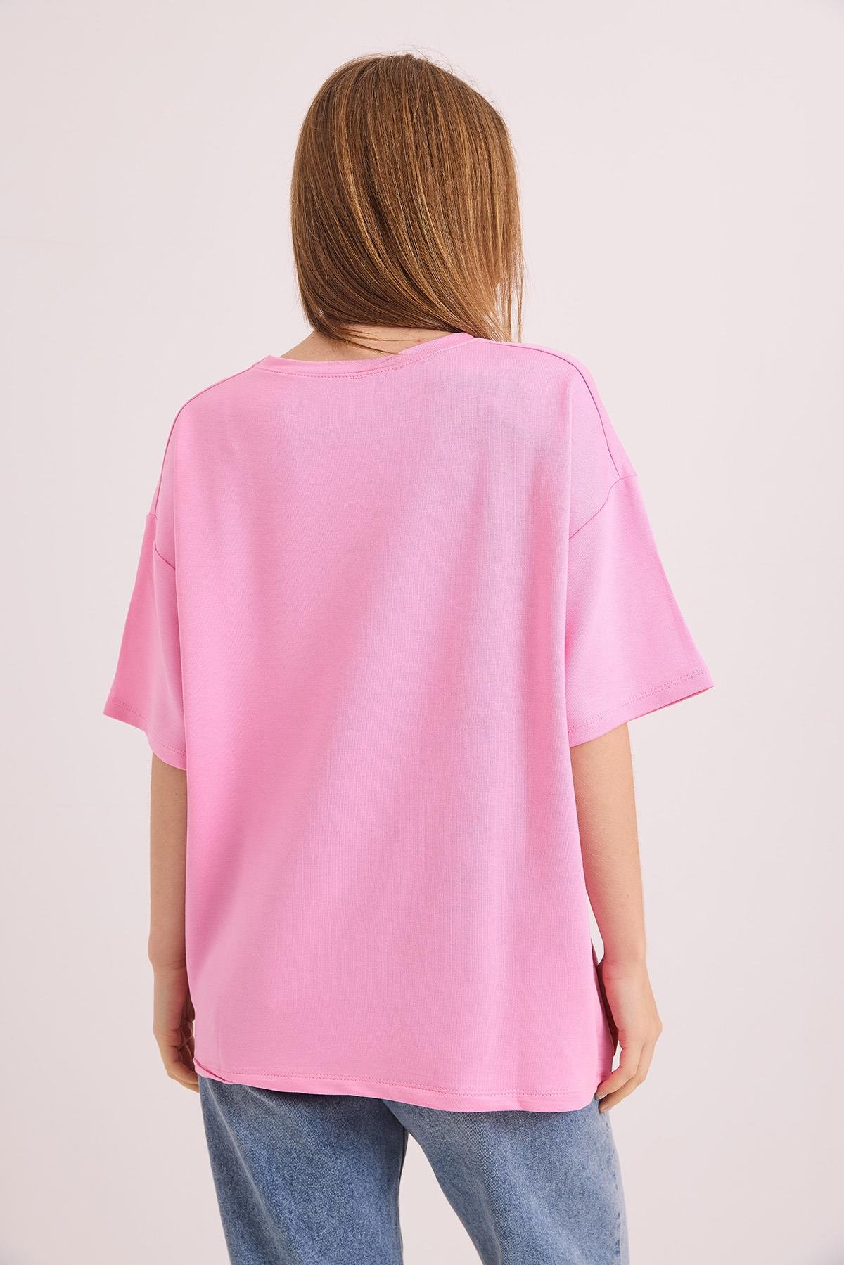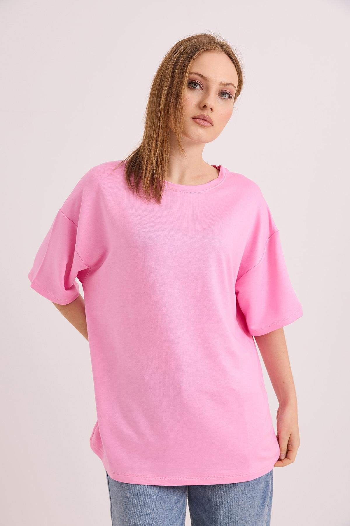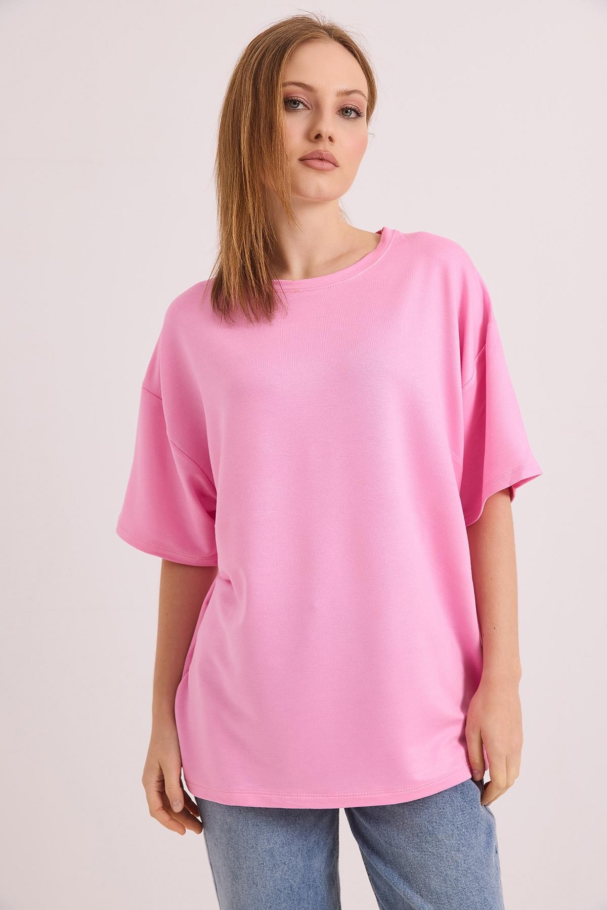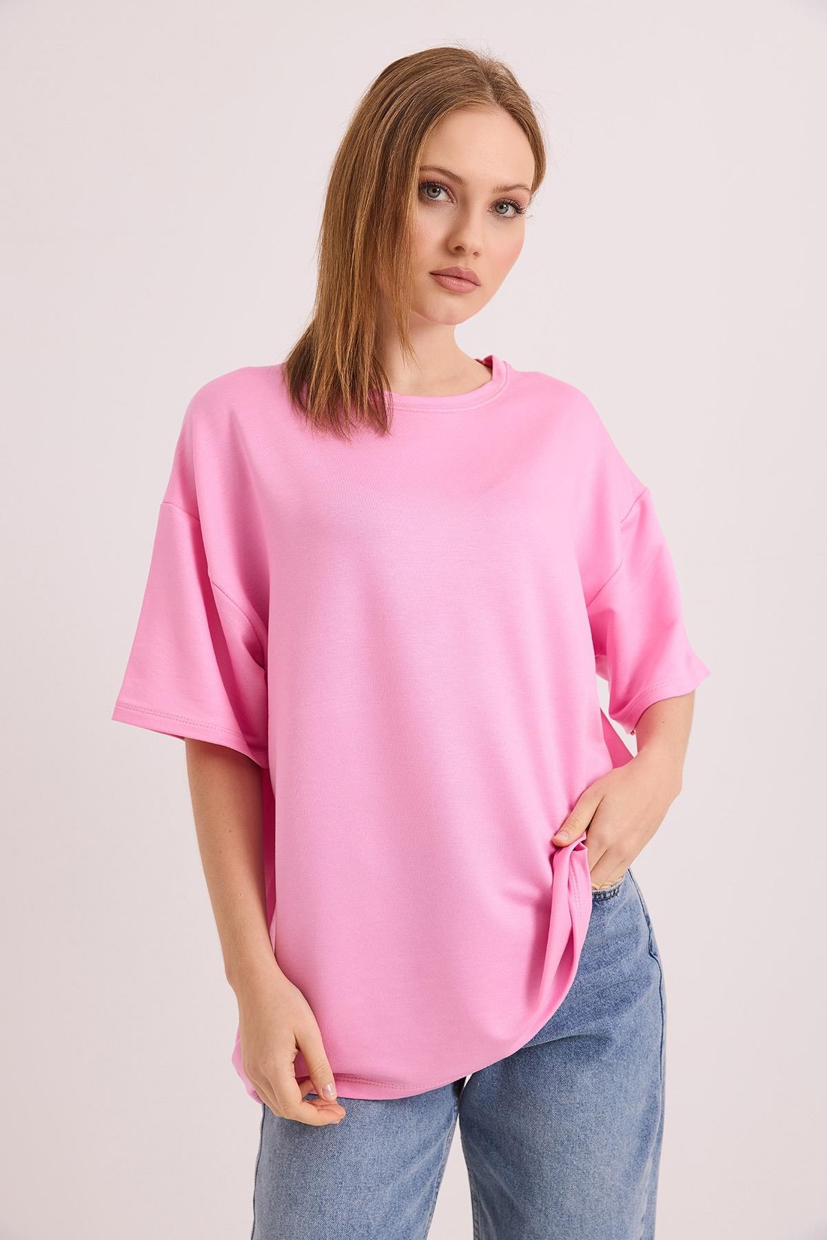Oversize Yumuşak Dokulu Salaş T-Shirt Pembe (250847TSHXPMB)