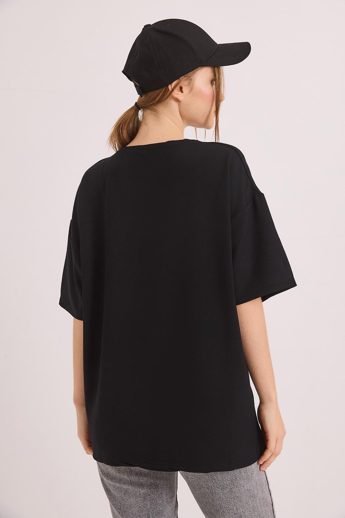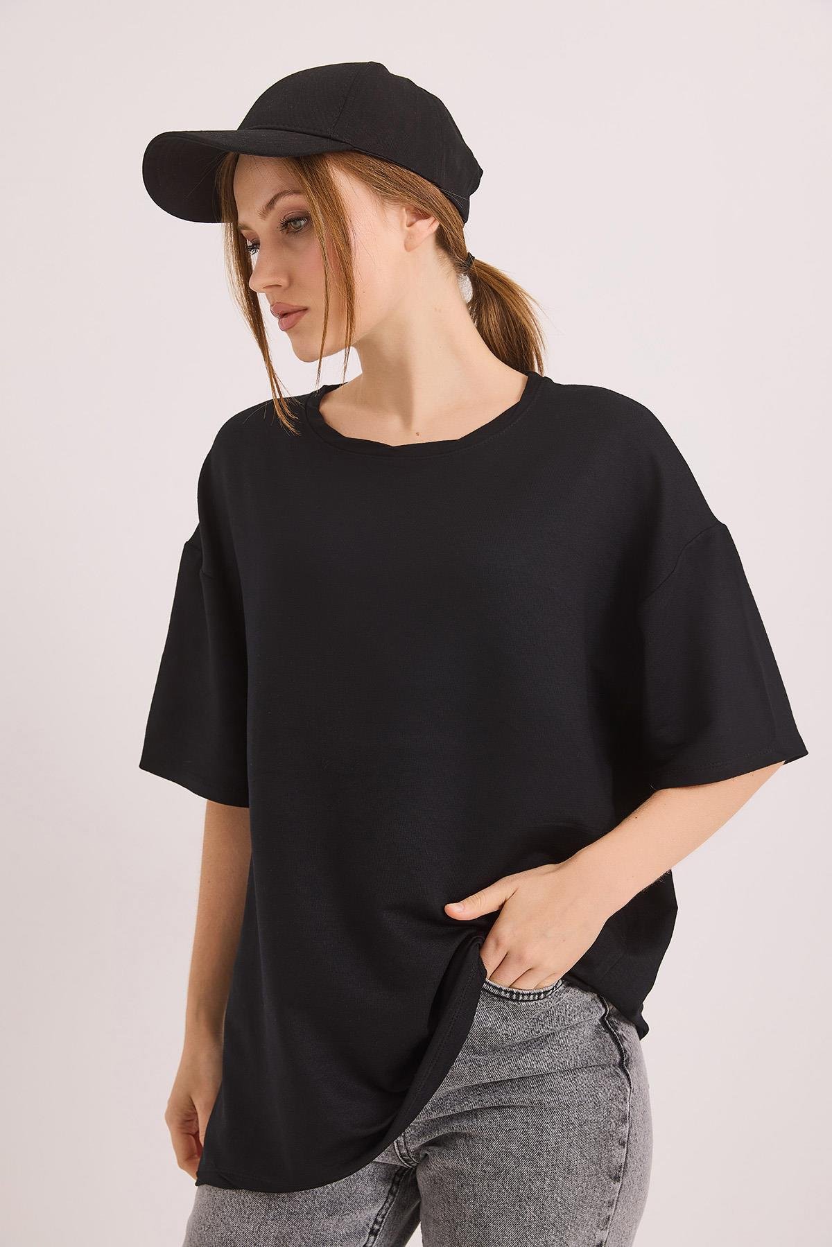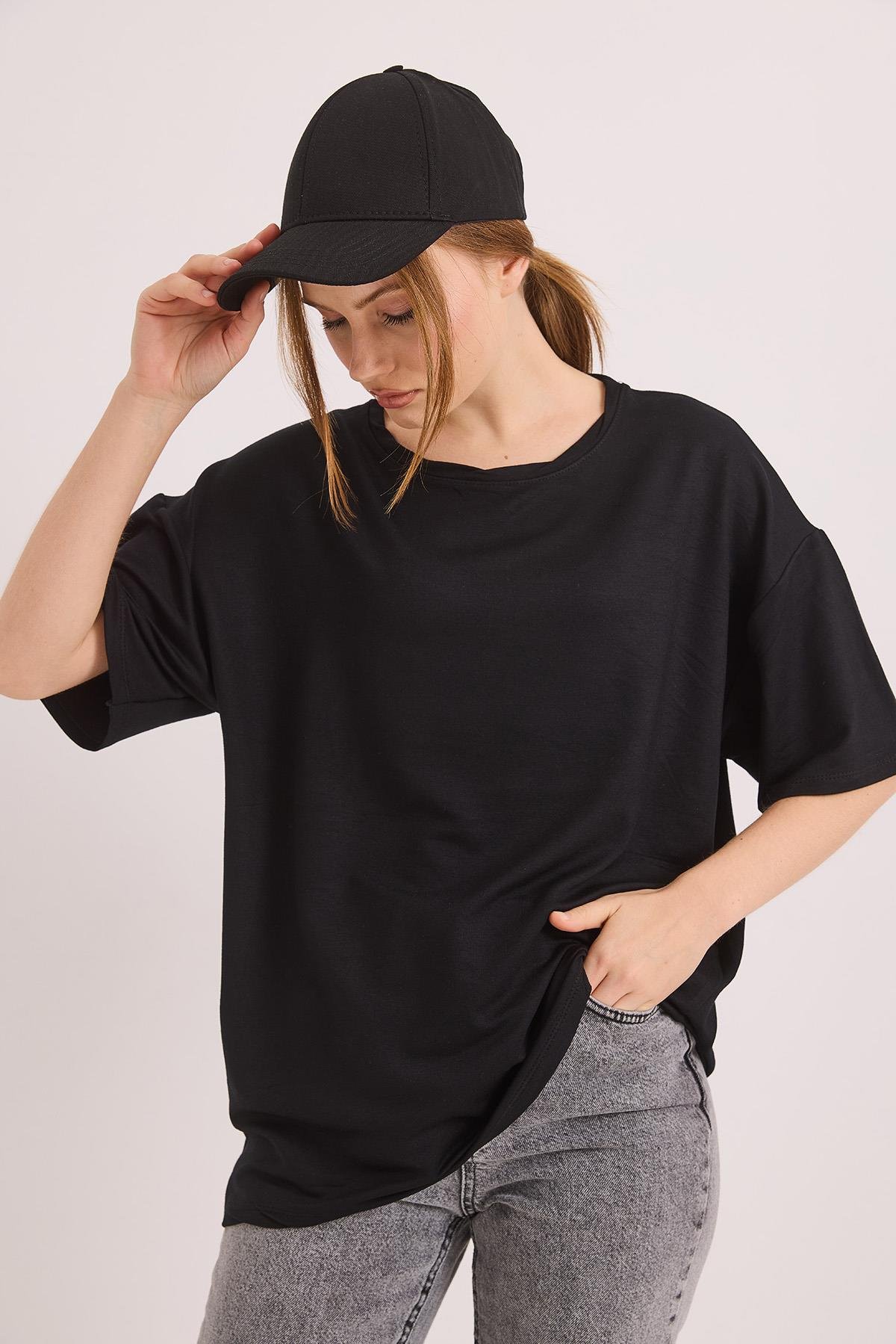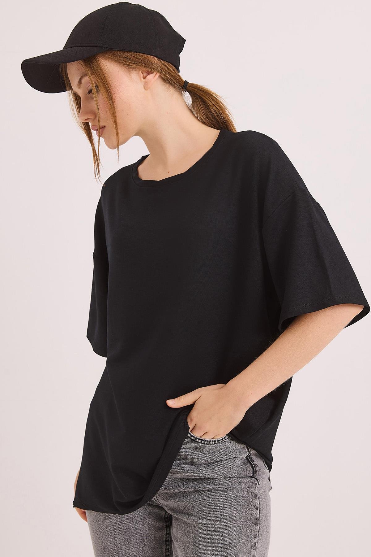 Oversize Yumuşak Dokulu Salaş T-Shirt Siyah (250847TSHXSYH)
