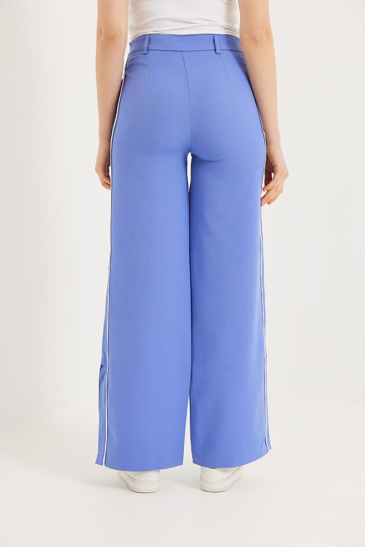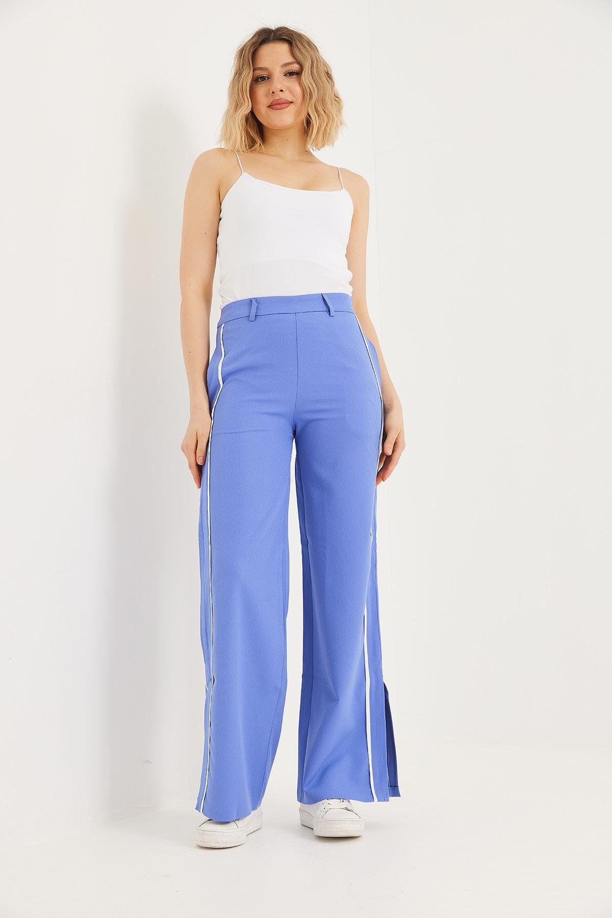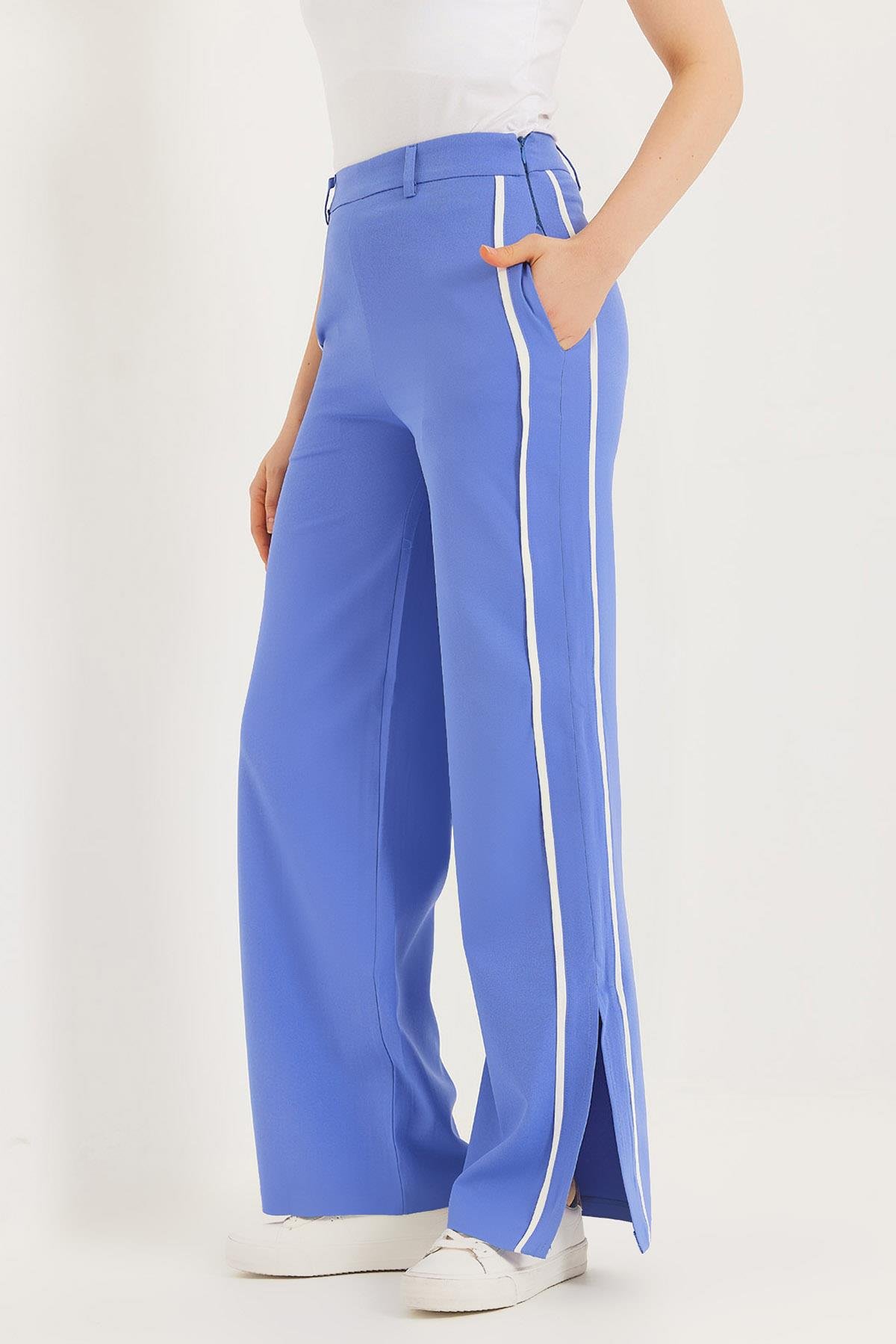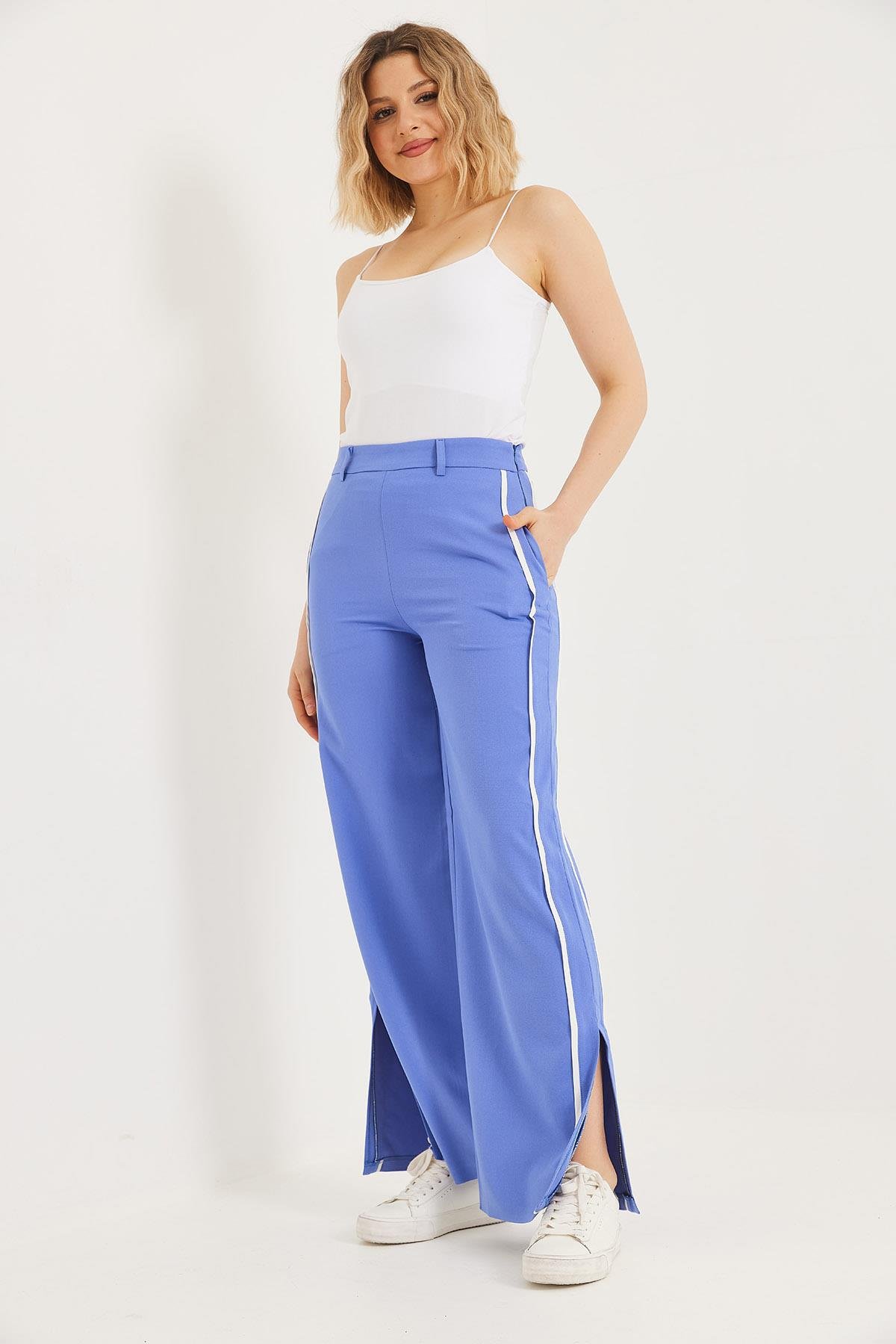 Paça Yırtmaç Detaylı Şeritli Pantolon Mavi (250519PNTXMVİ)