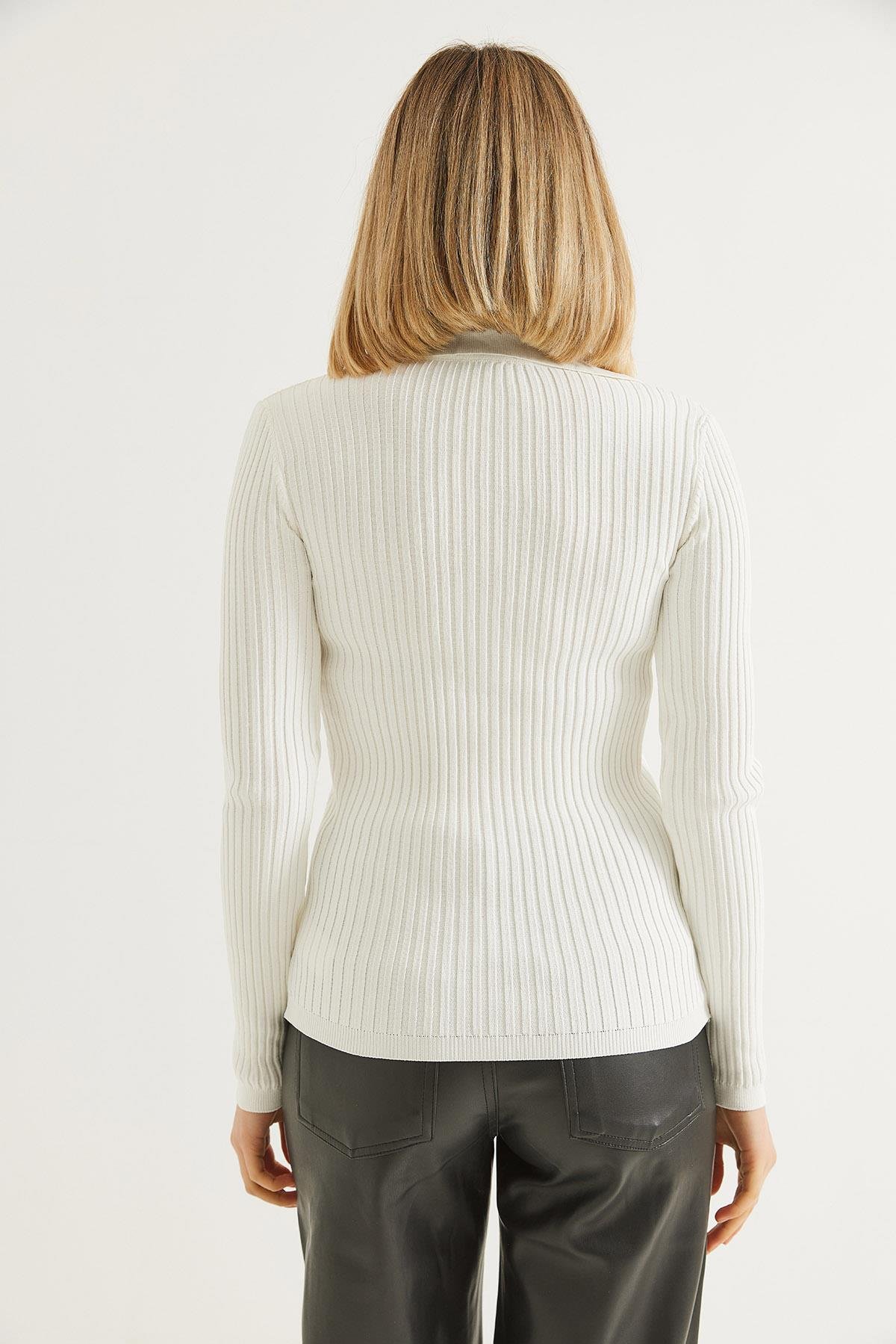 Polo Yaka Düğmeli Triko Bluz Beyaz (250044BLZXBYZ)