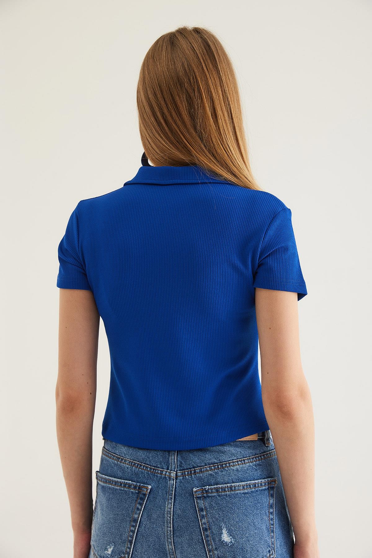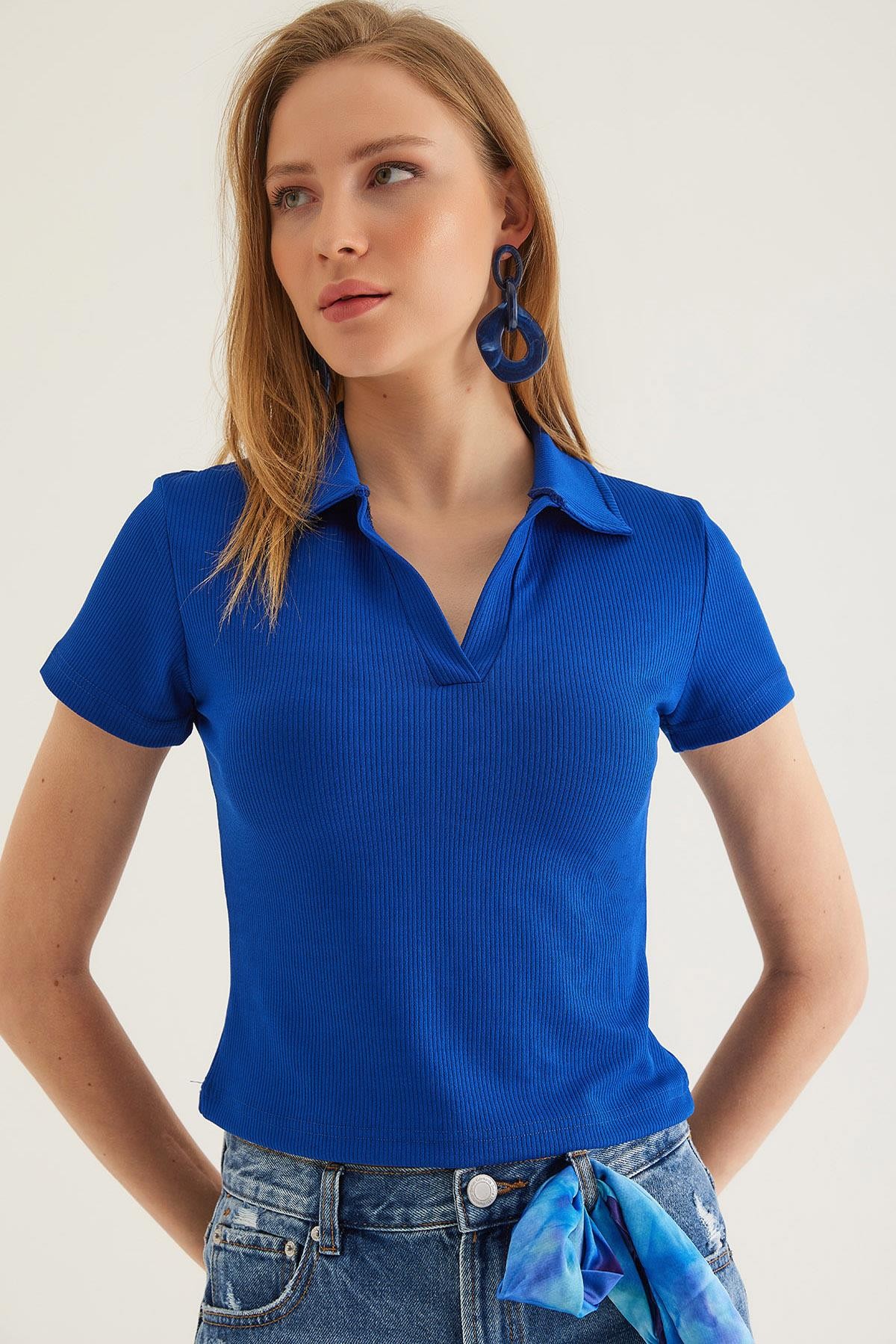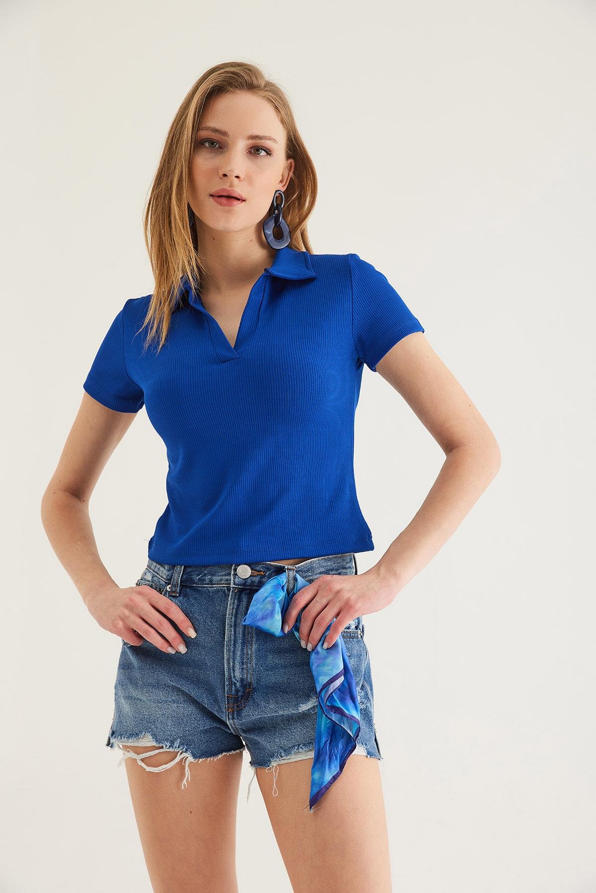 Polo Yaka Kadın Kısa Kol Bluz Saks (250452BLZXSKS)