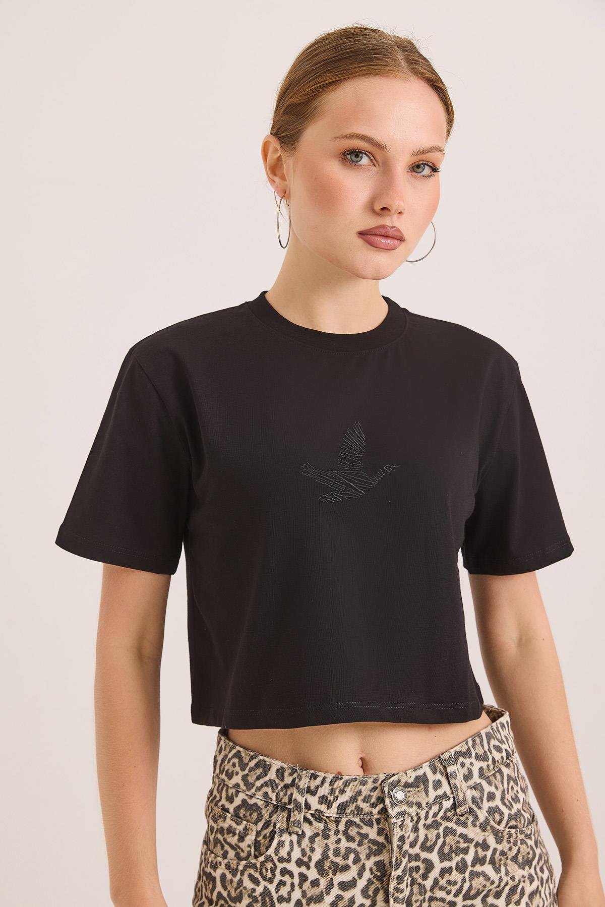 Rahat Kalıp Pamuk Örme Crop Tshirt Siyah (250738TSHXSYH)