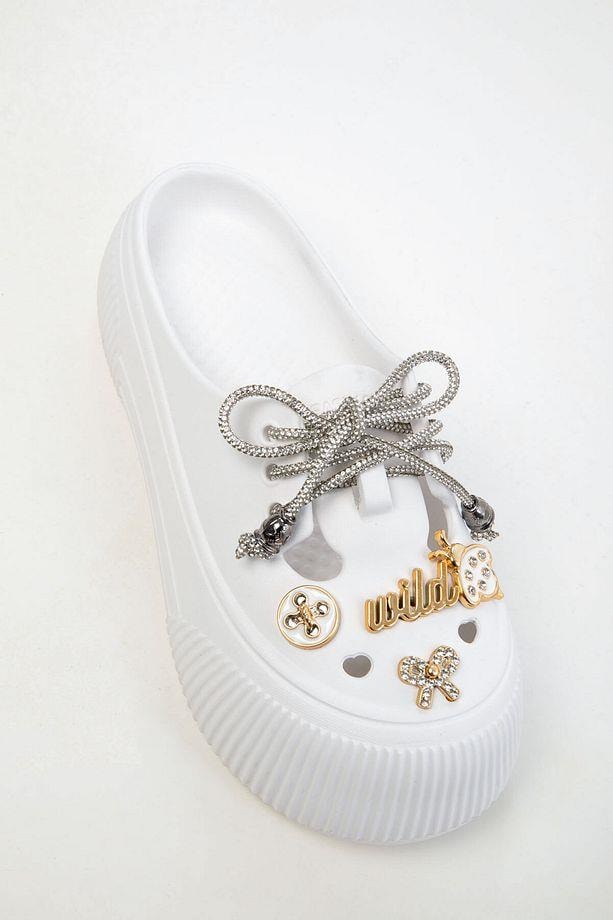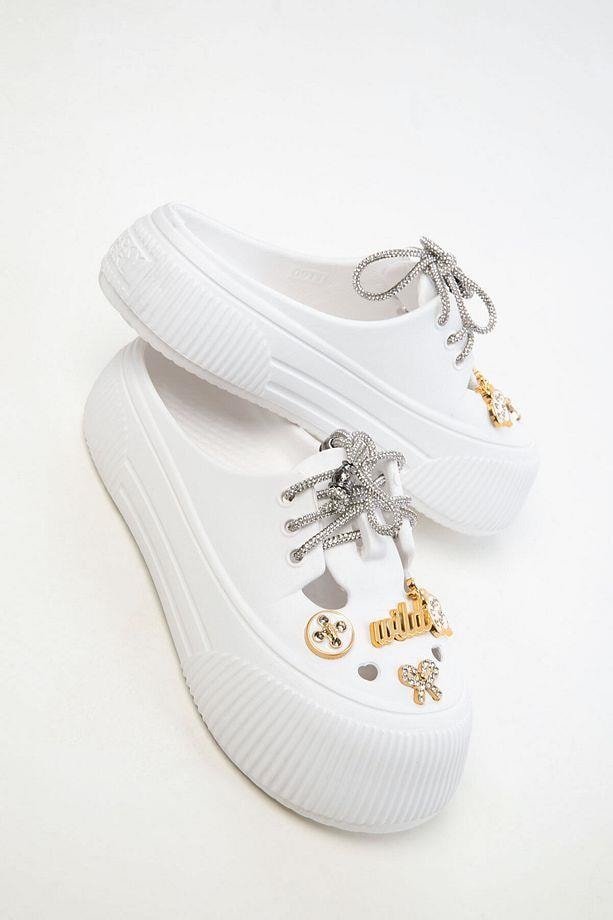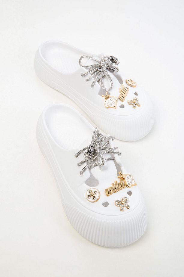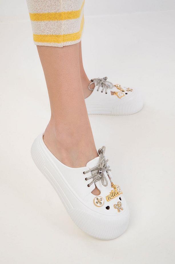 Rahat Taban Aksesuarlı Kadın Terlik Beyaz