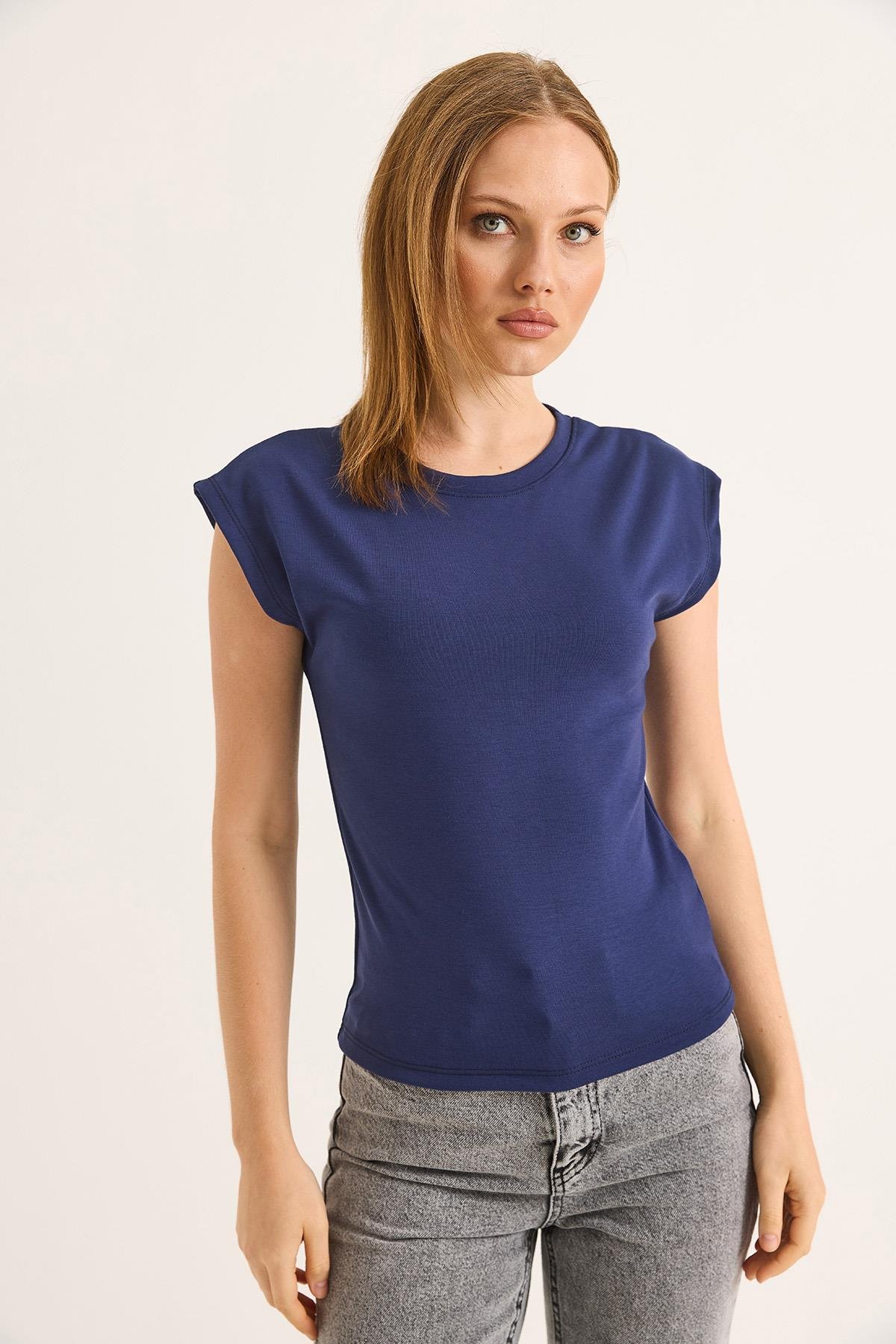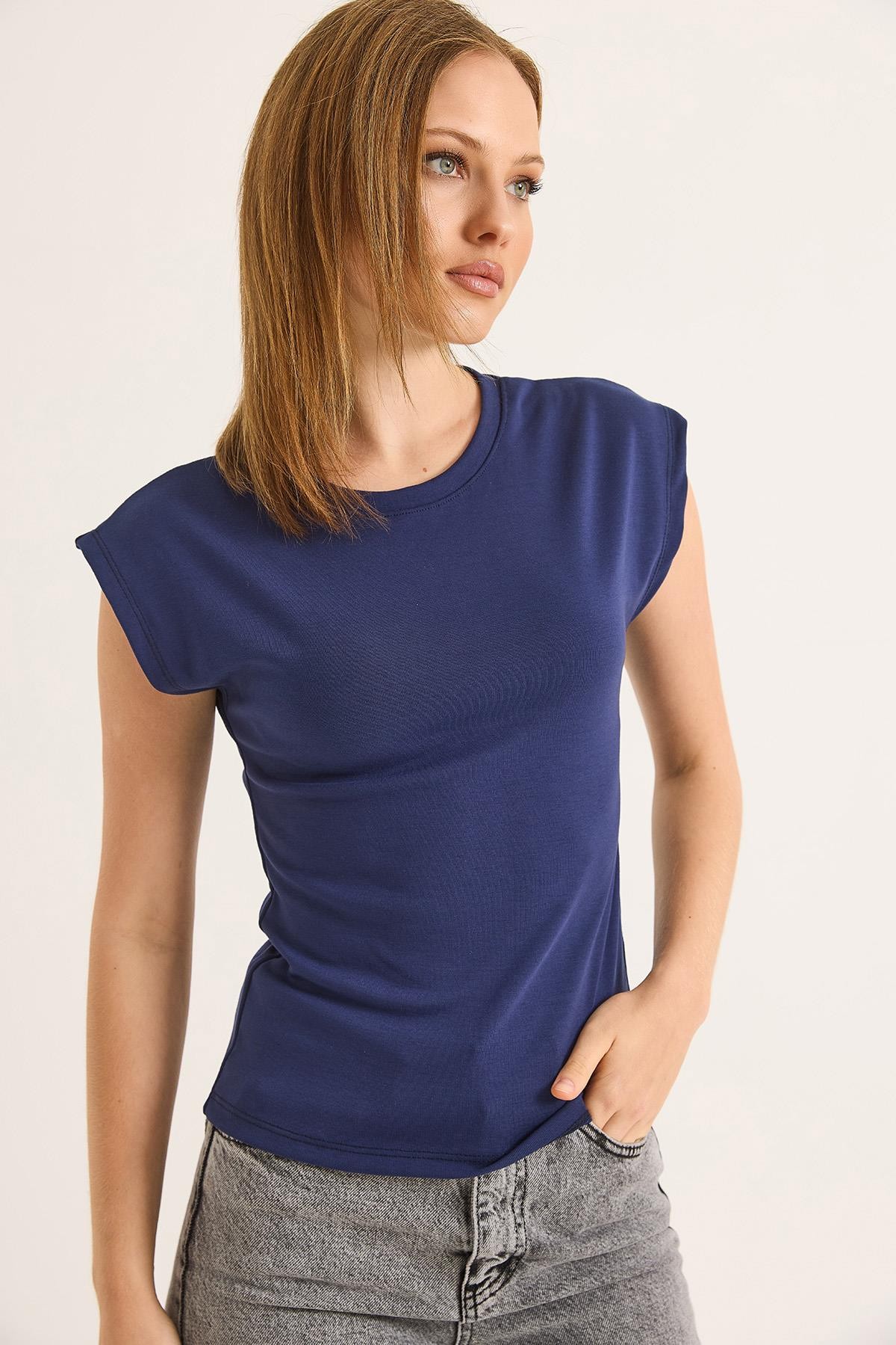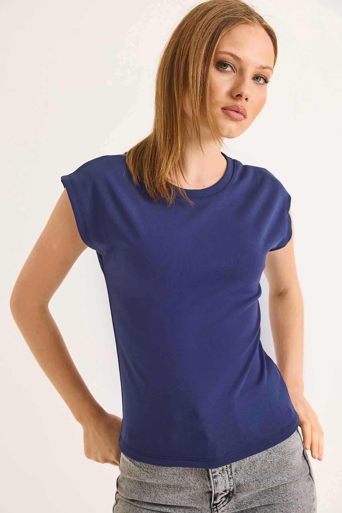 Sıfır Kol Soft Touch Esnek Viskon Bluz Lacivert (250709BLZXLACİ)