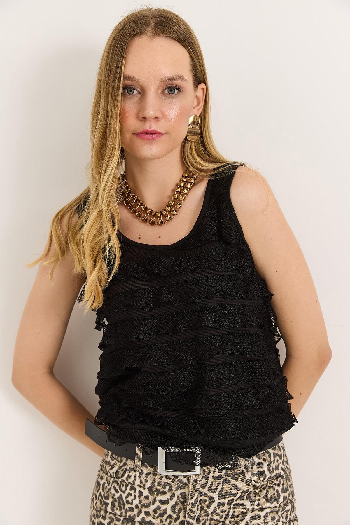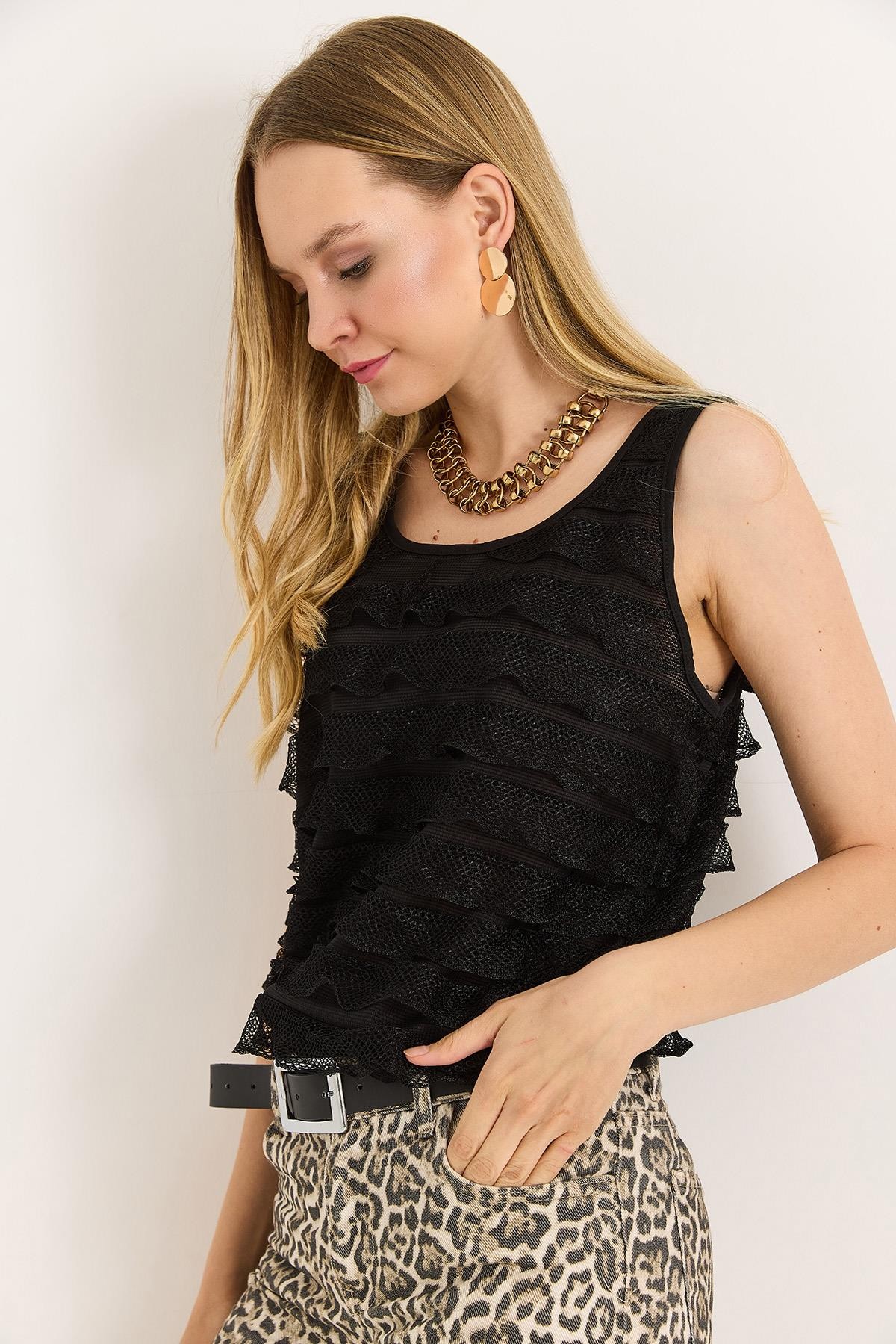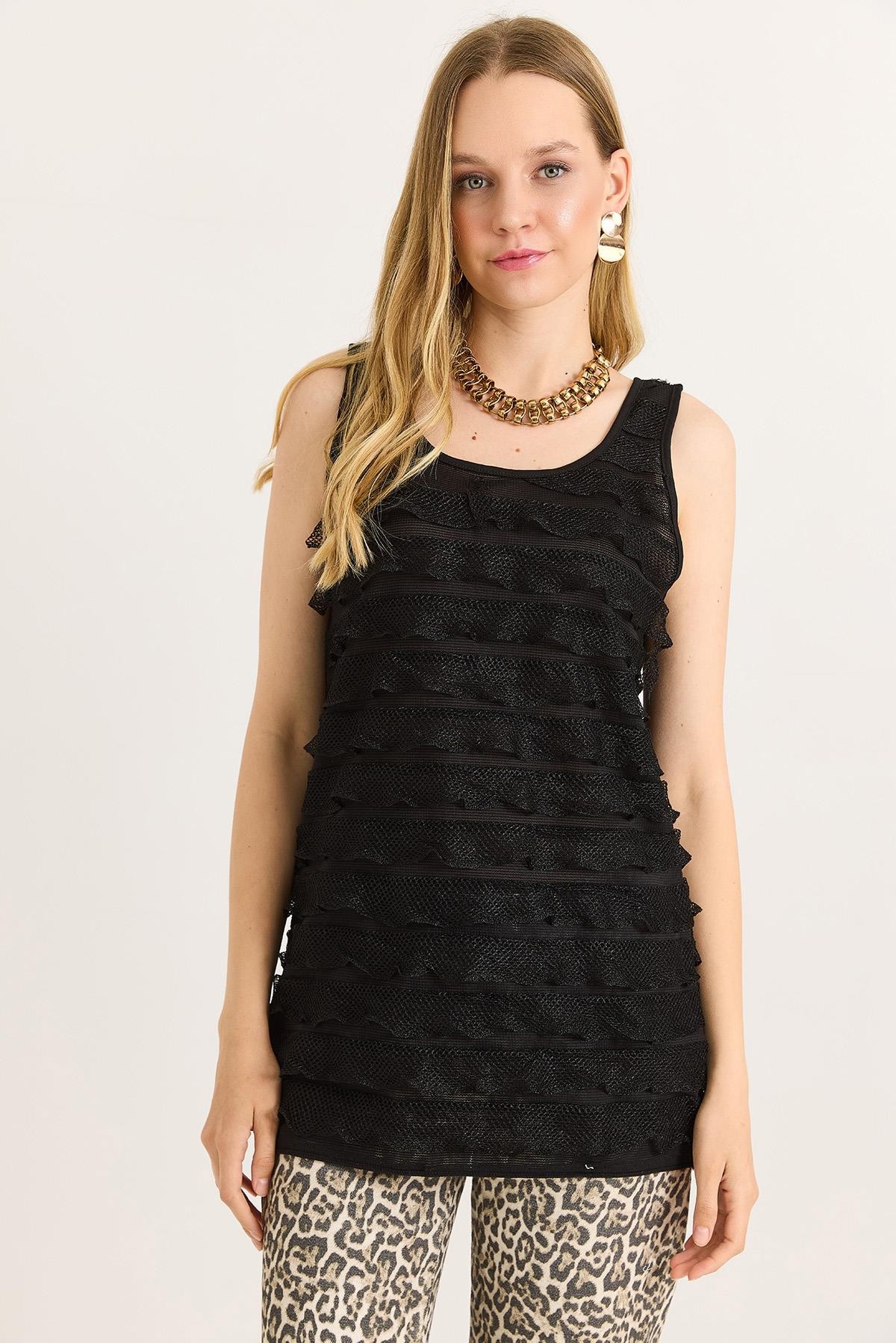 Sıfır Kollu Kat Görünümlü Bluz Siyah (251009BLZXSYH)