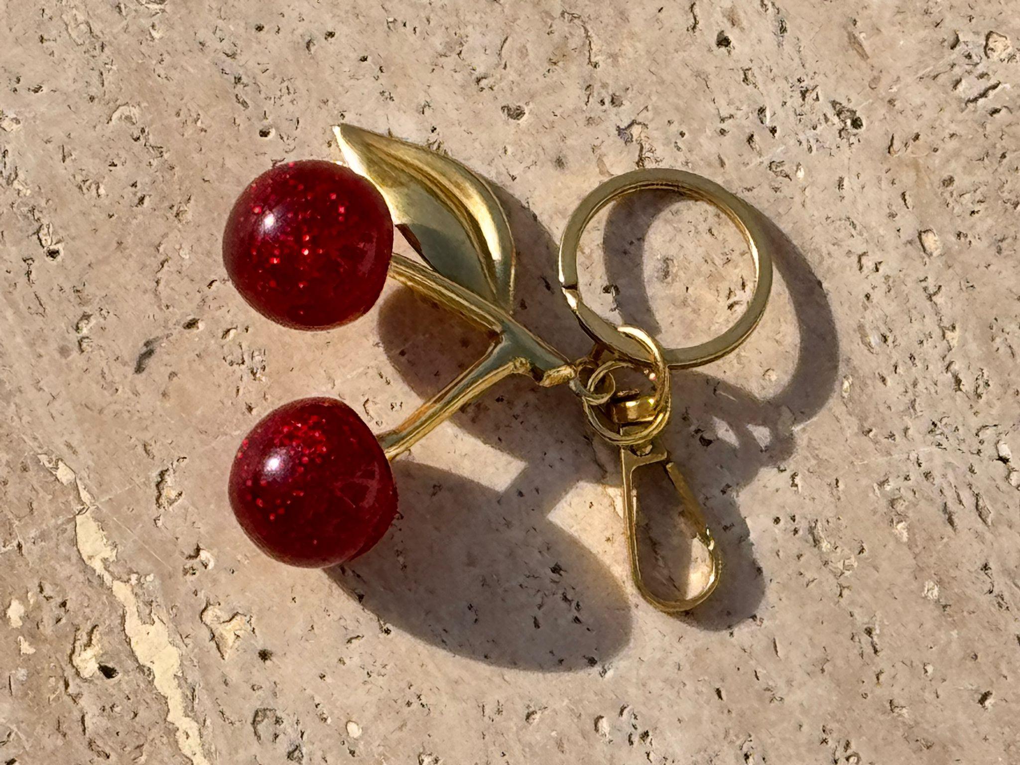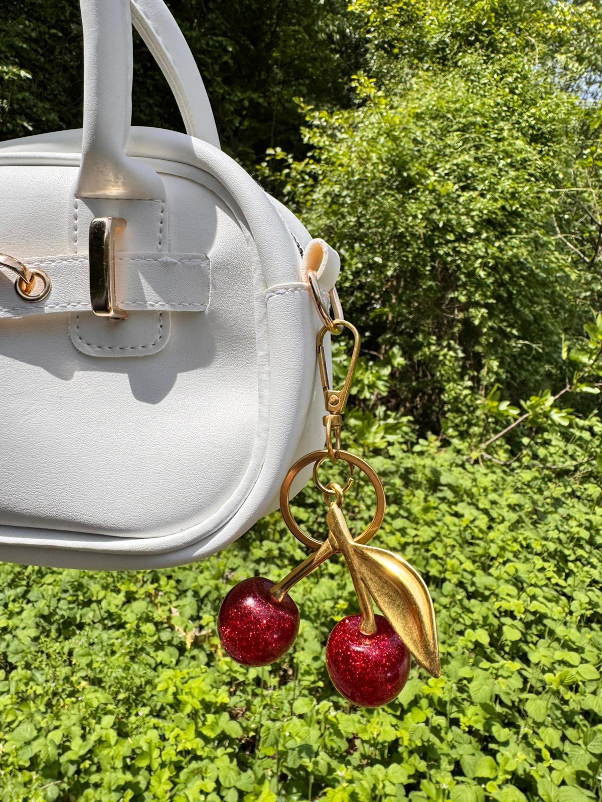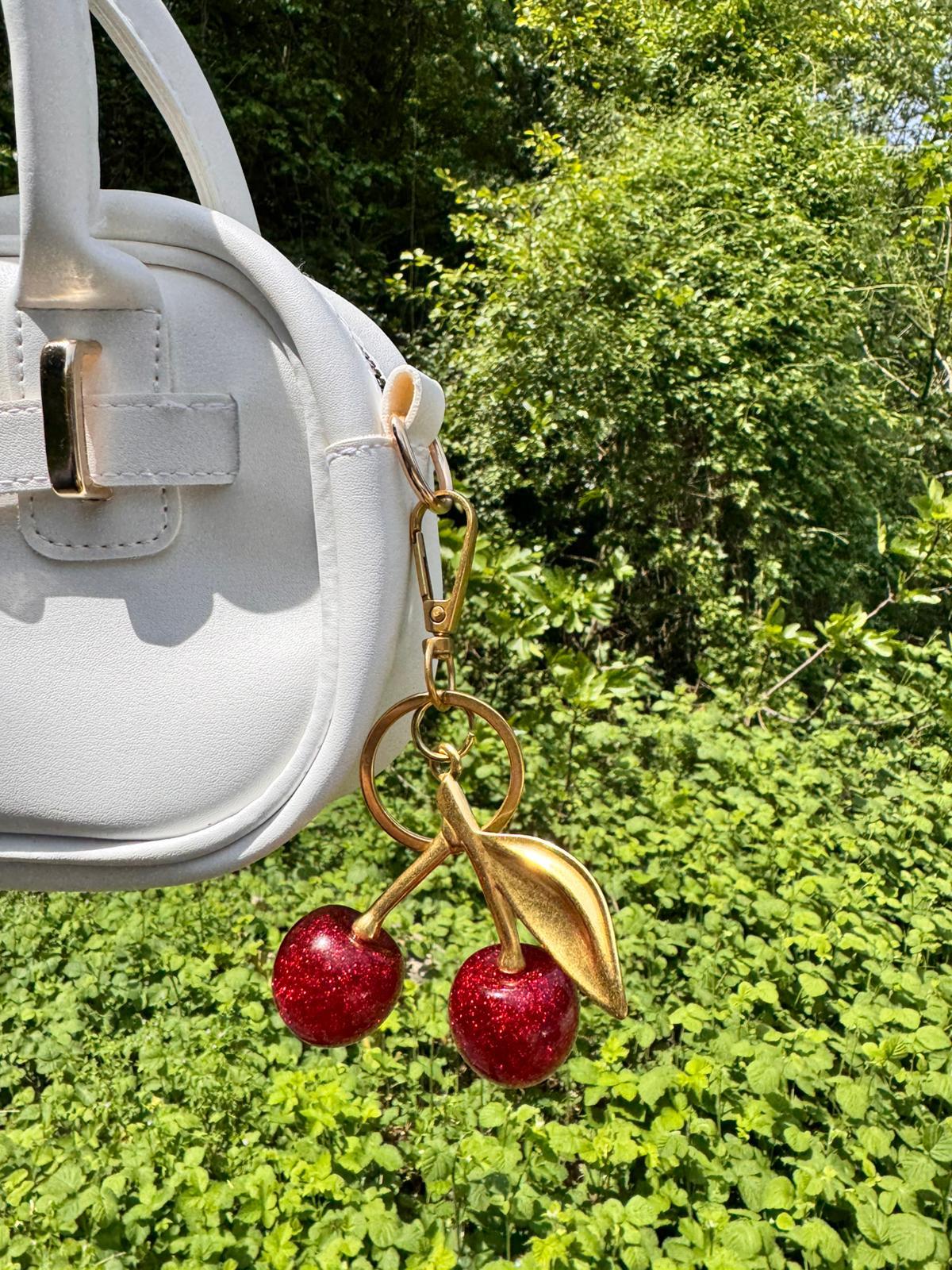 Simli Kırmızı Kirazlı Çanta Charmı ve Anahtarlık