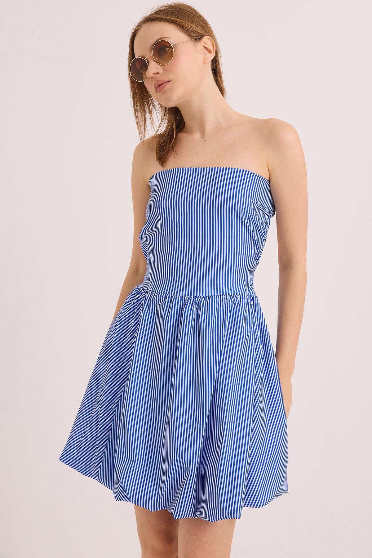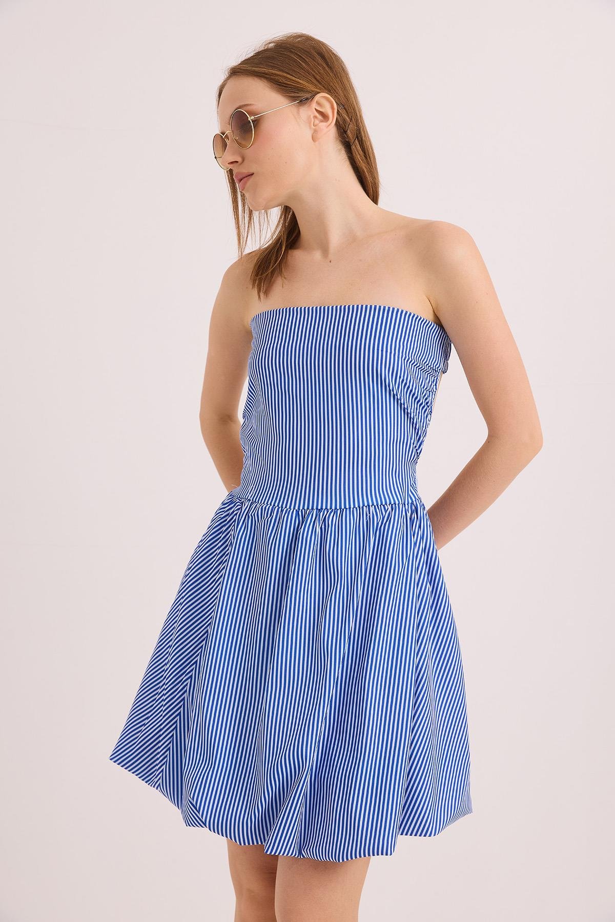 Sırt Detaylı Straplez Mini Dokuma Elbise Mavi (250857ELBXMVİ)