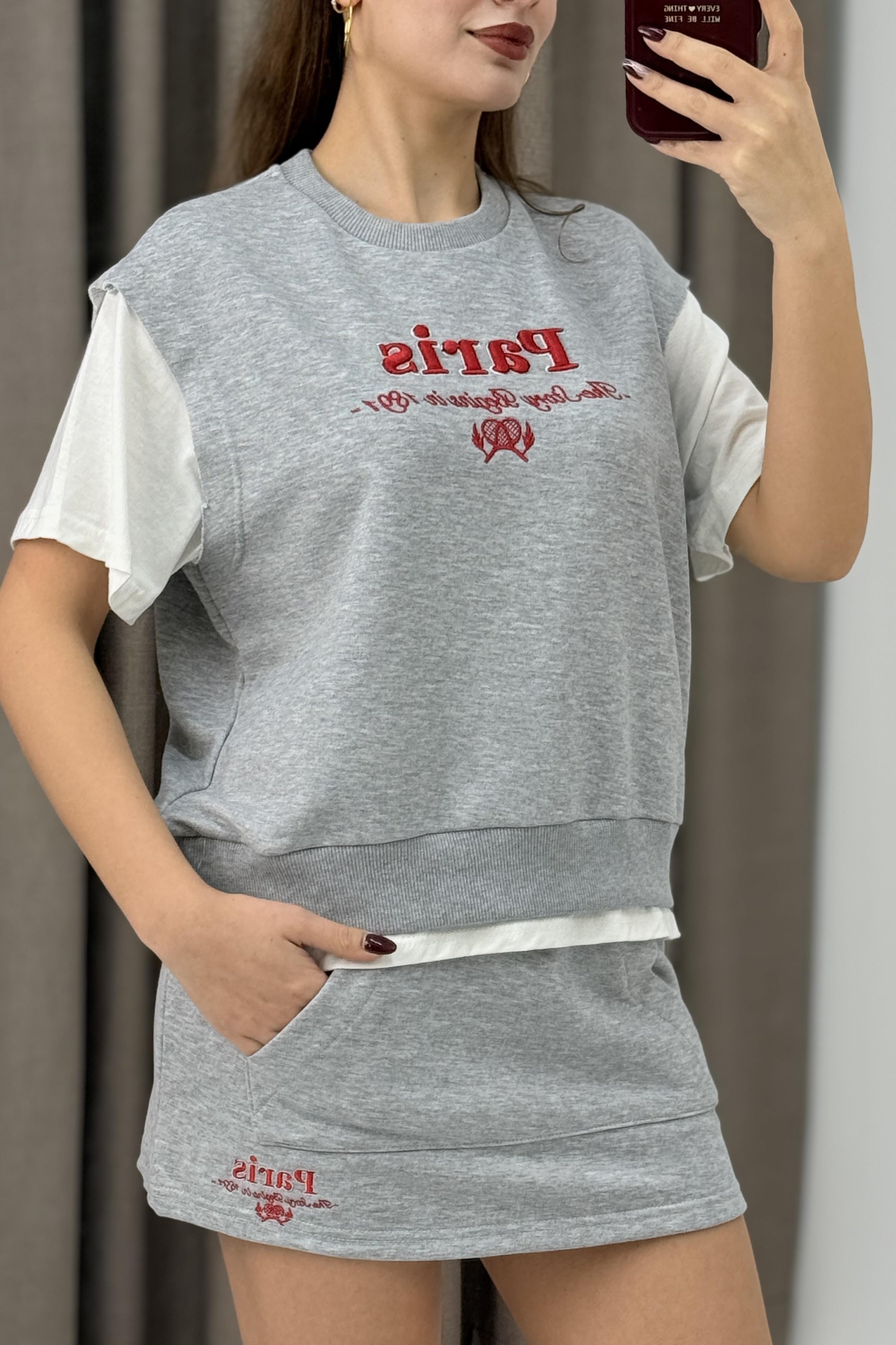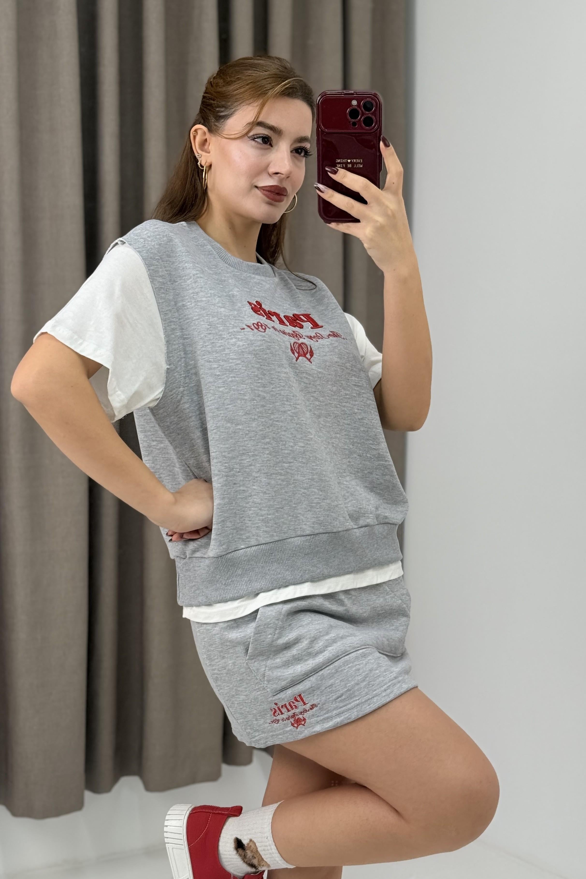 Şort Etek İkili Spor Takım Gri (250482TKMXGRİ)