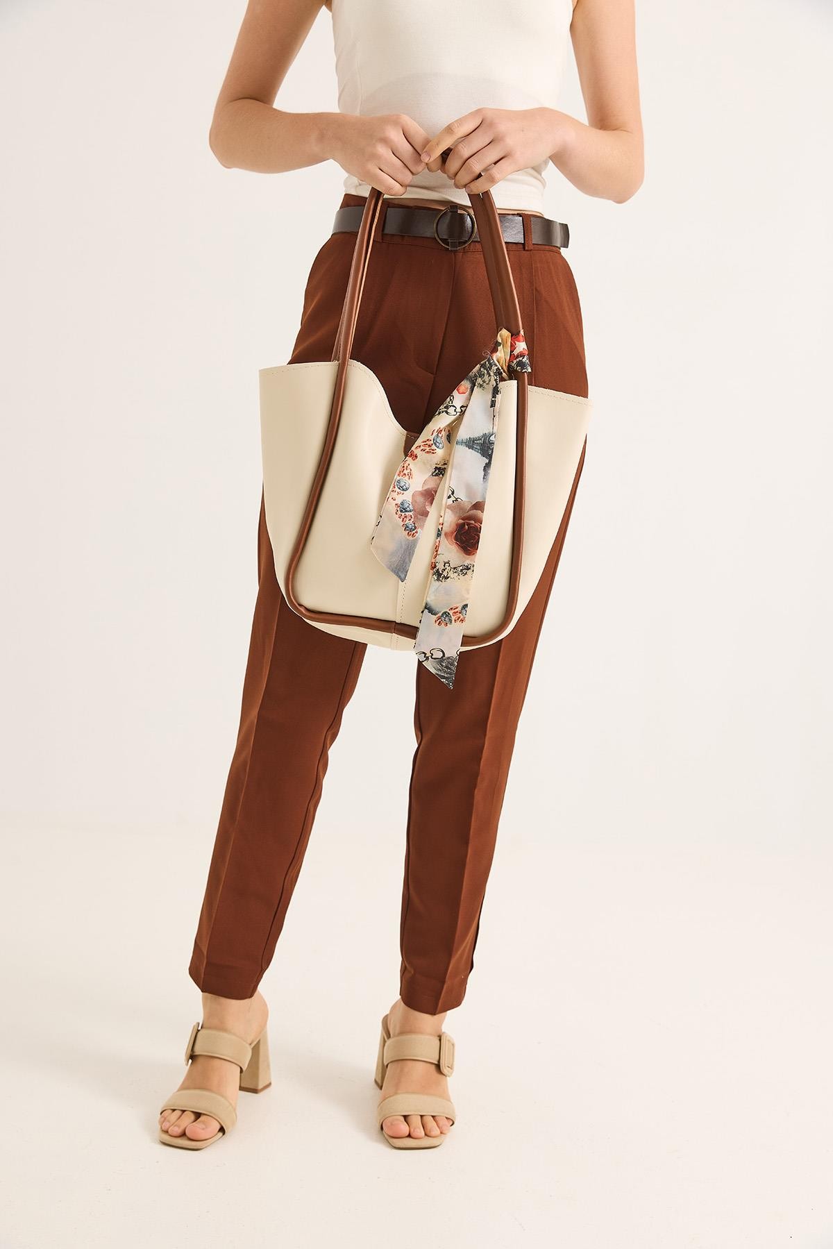Suni Deri Kadın Omuz Çantası Krem (250532CNTXKRM)