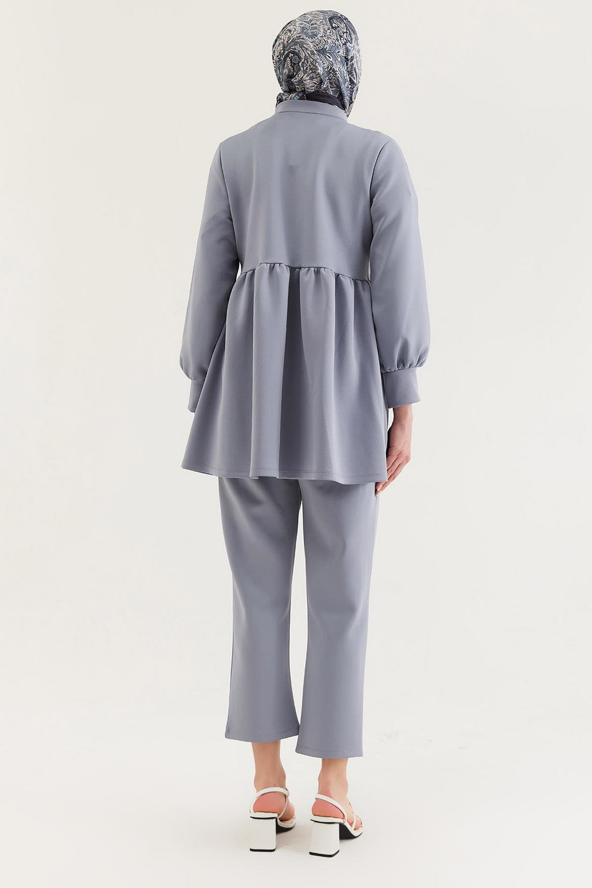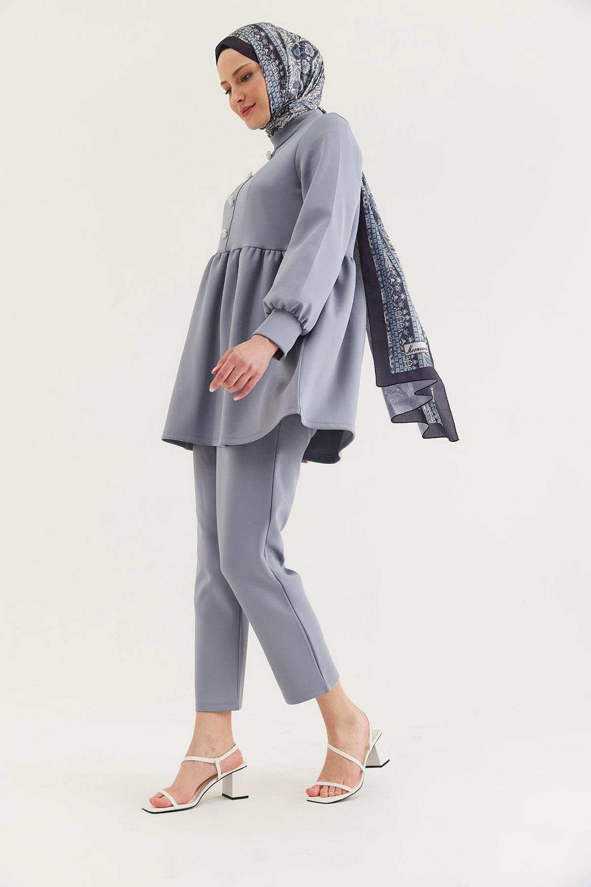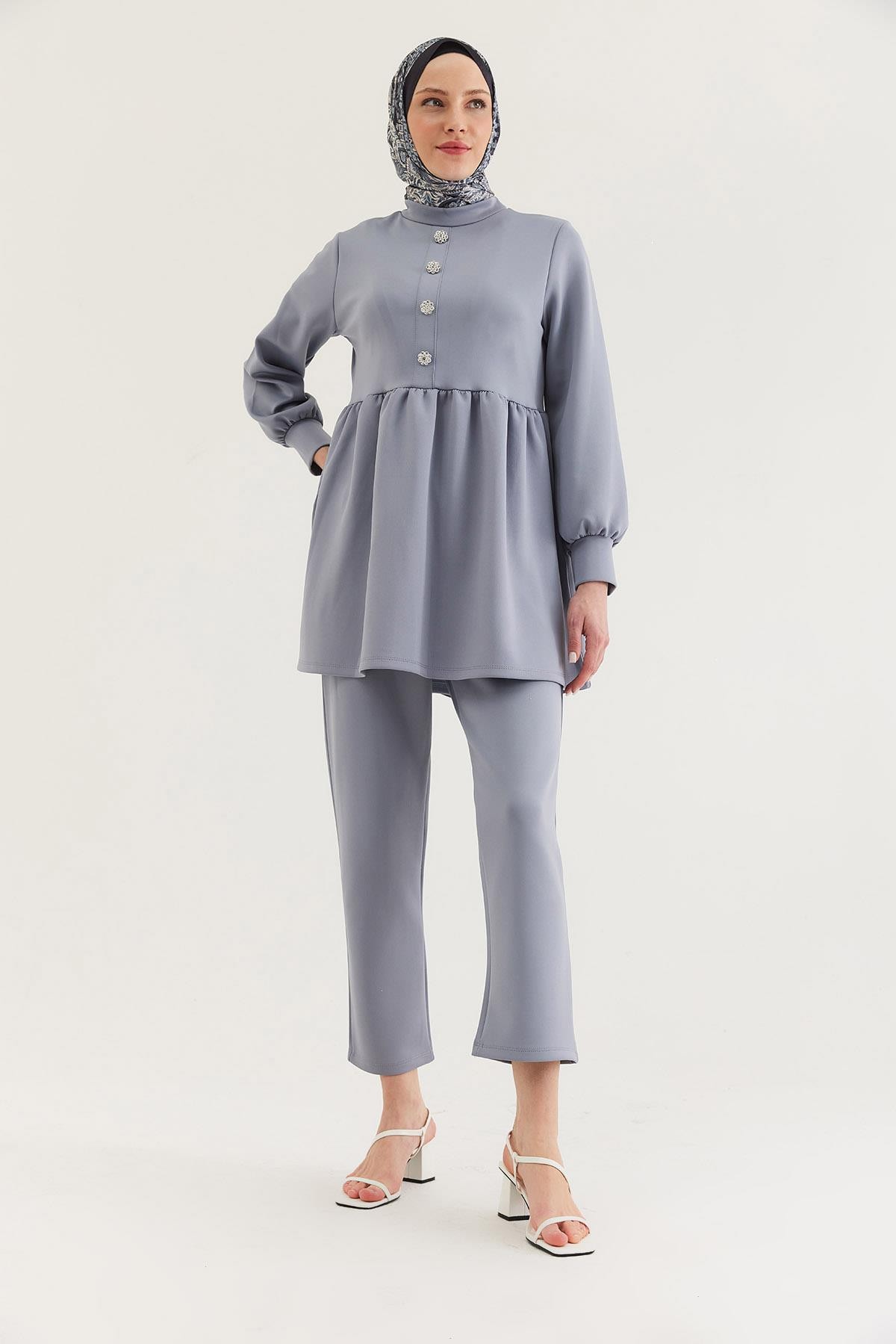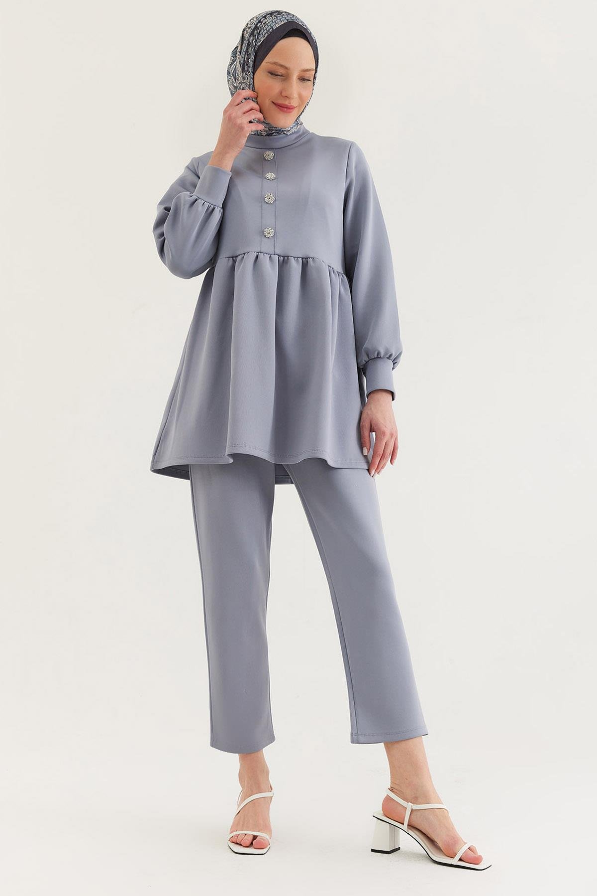 Taş Düğmeli Scuba İkili Takım Gri (250378TKMXGRİ)