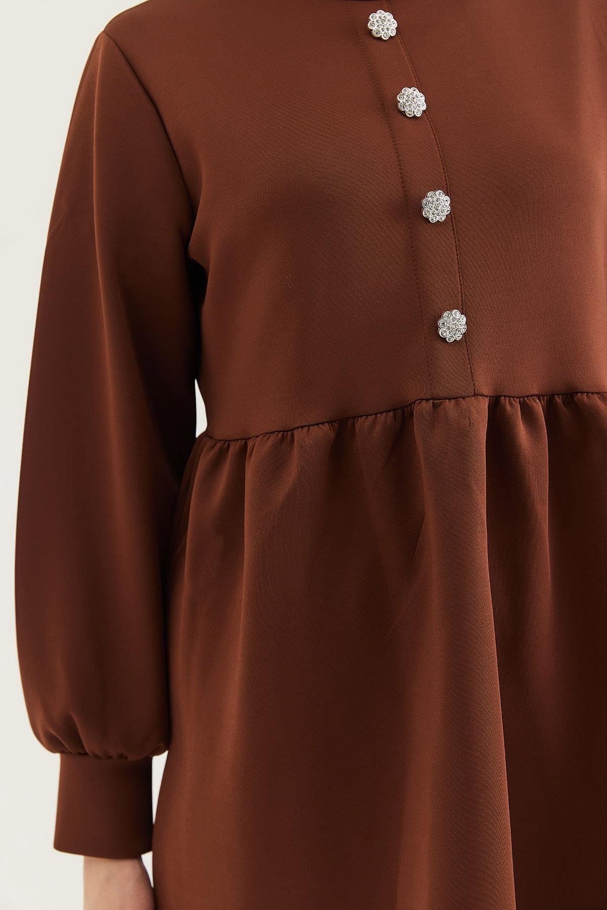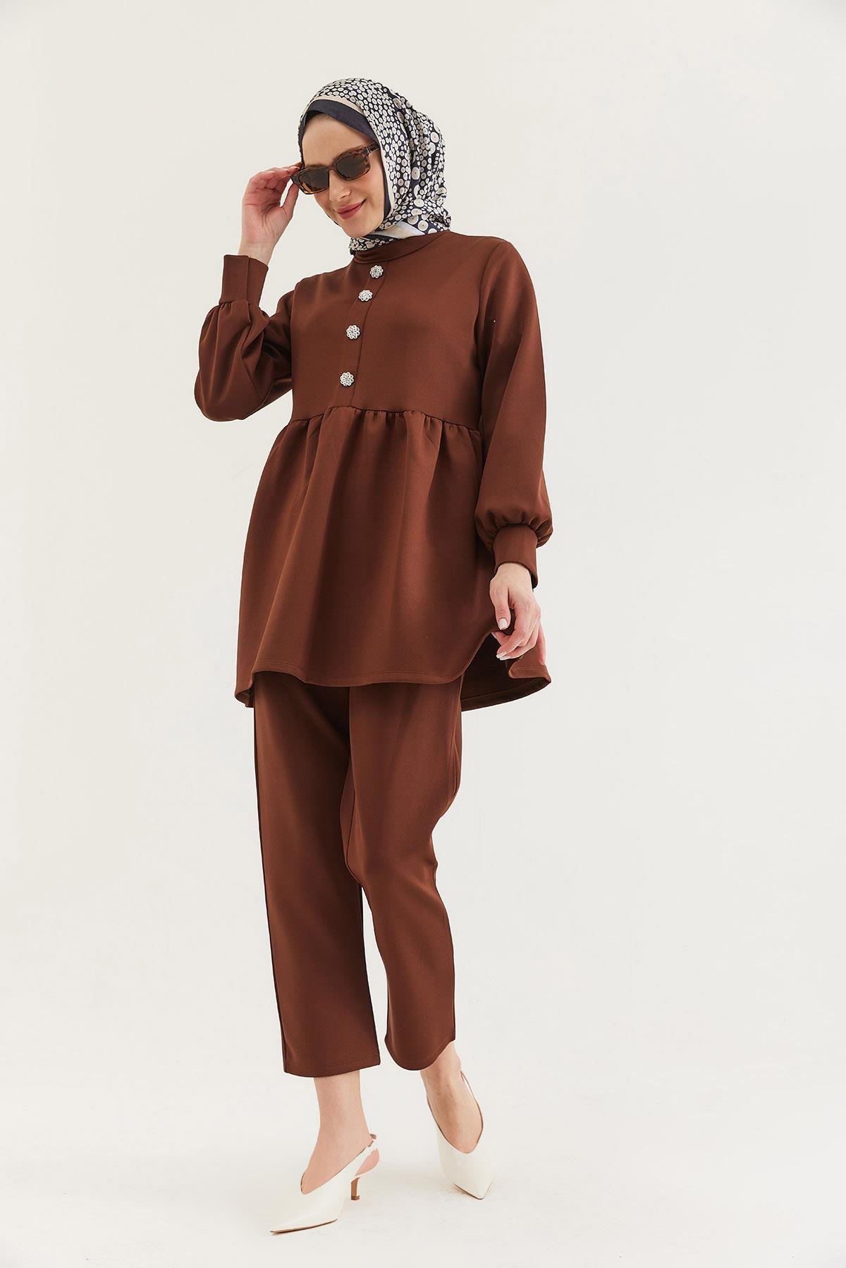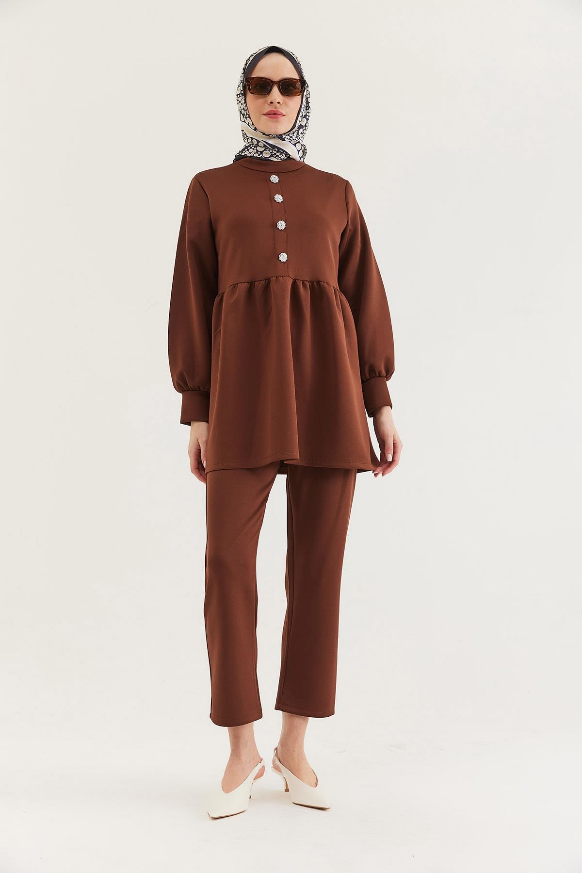 Taş Düğmeli Scuba İkili Takım Kahverengi