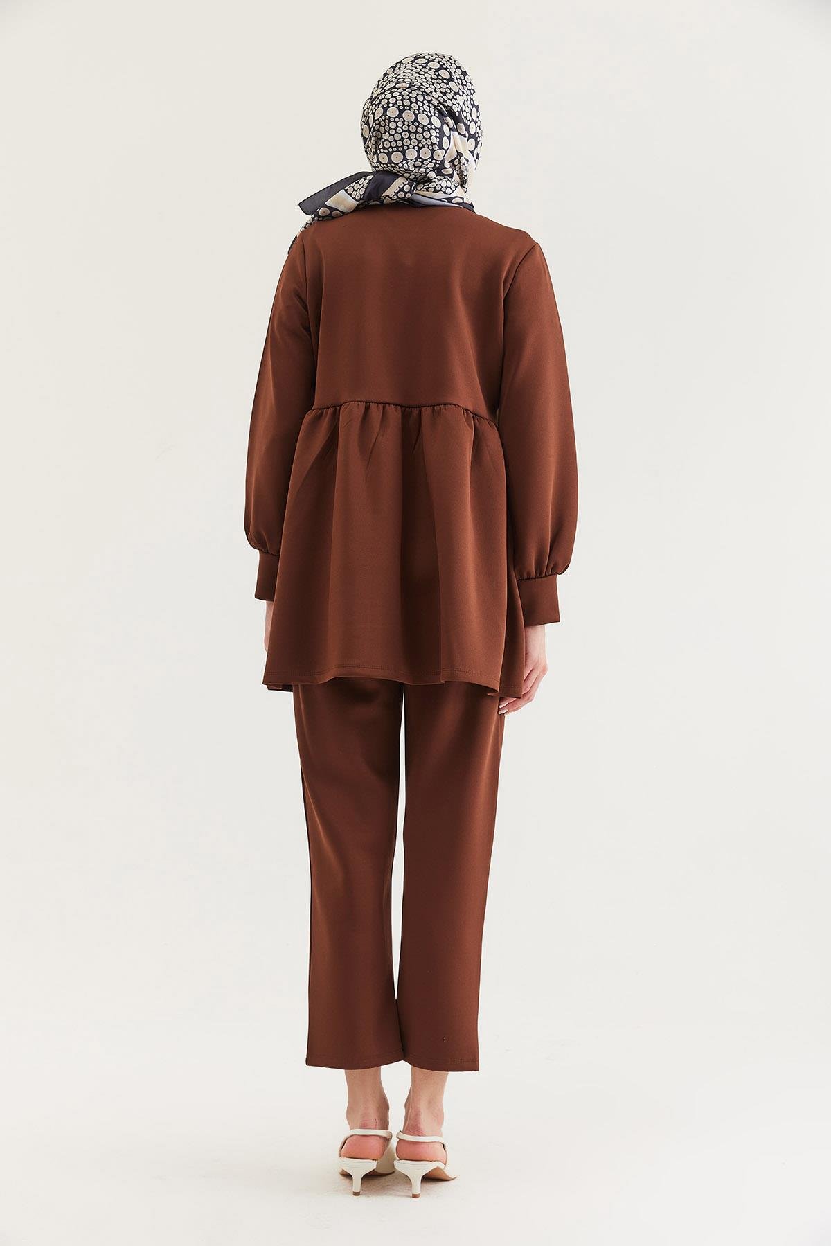 Taş Düğmeli Scuba İkili Takım Kahverengi (250378TKMXKHV)