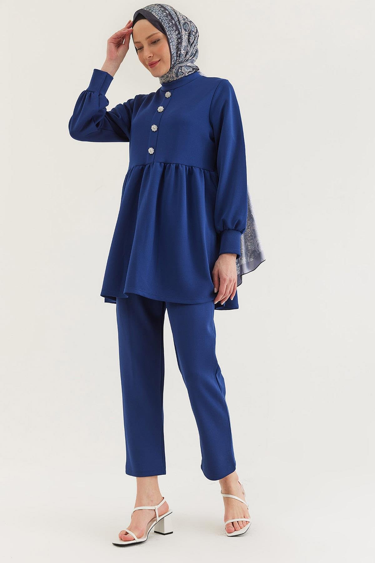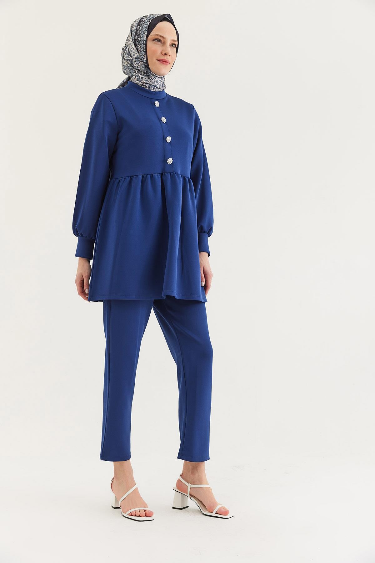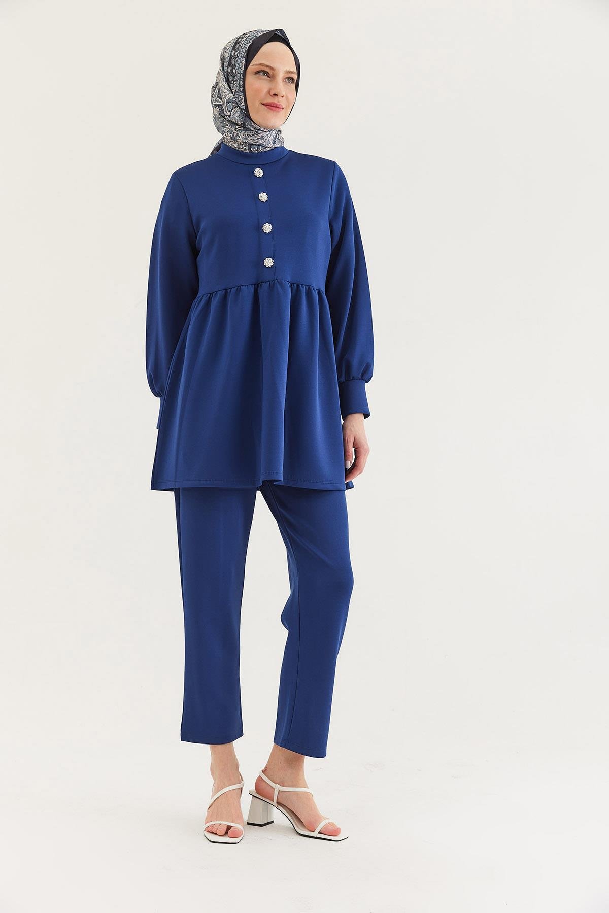 Taş Düğmeli Scuba İkili Takım Lacivert (250378TKMXLACİ)