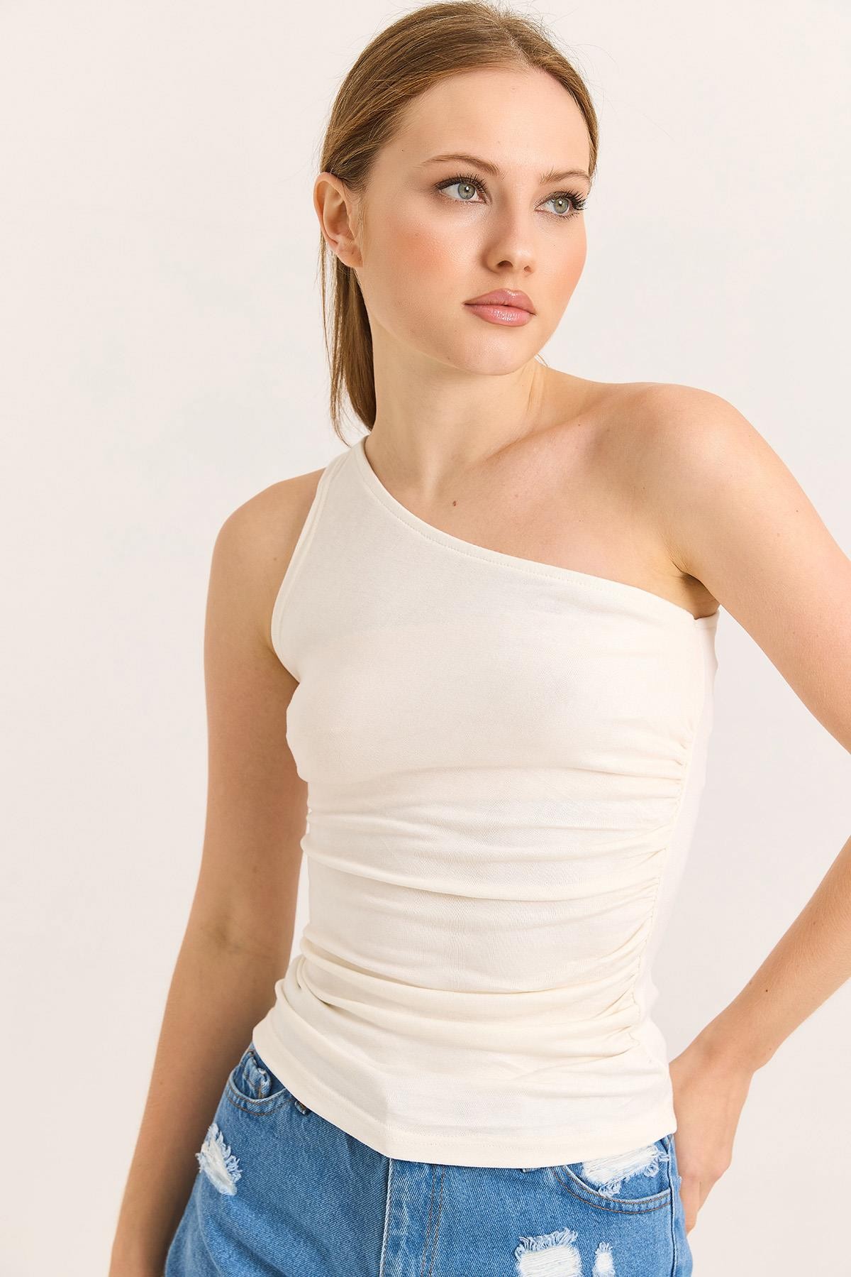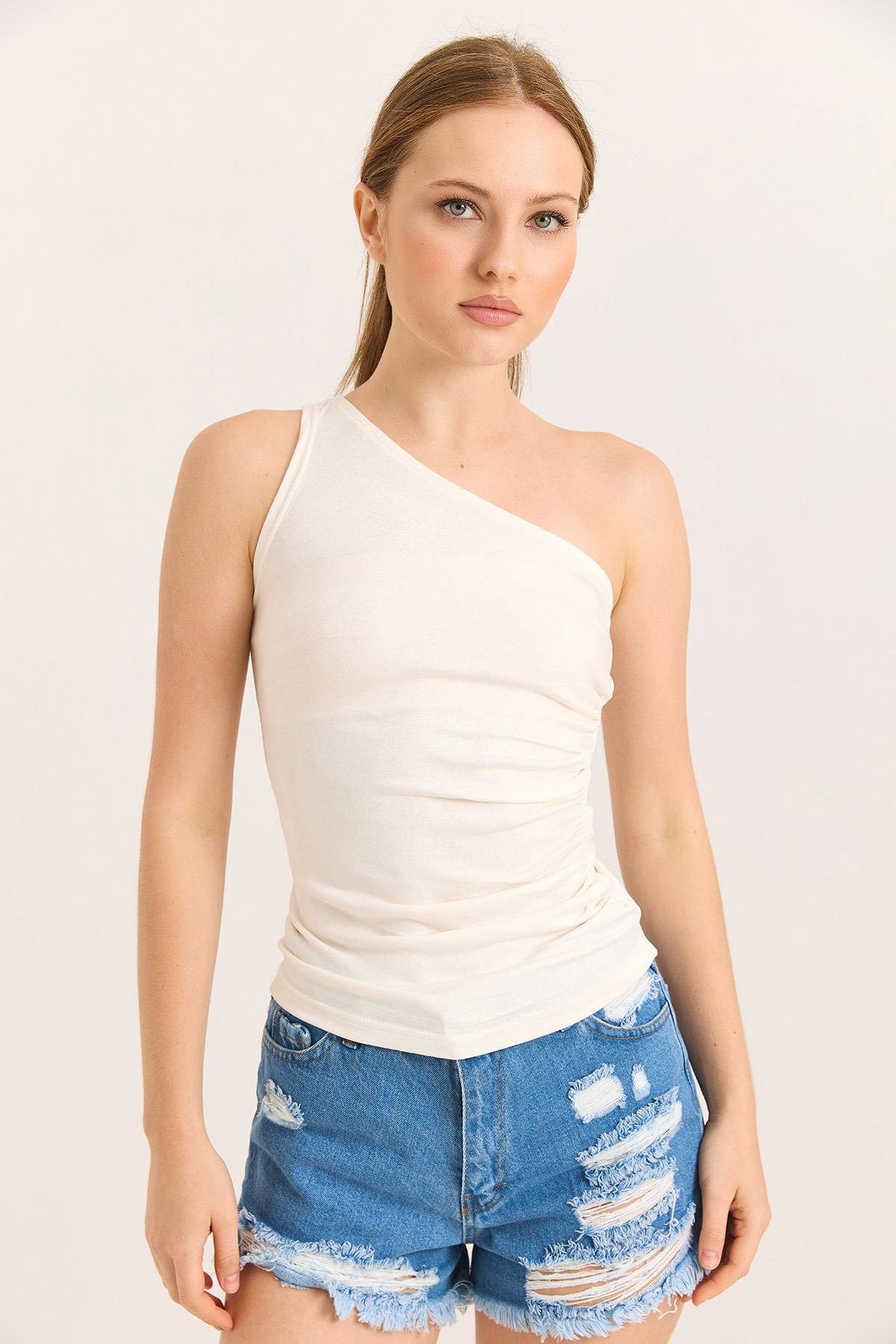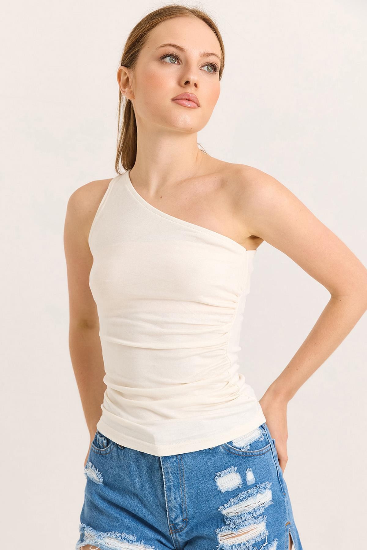 Tek Omuz Esnek Kumaş Bluz Ekru (500011BLZXEKR)