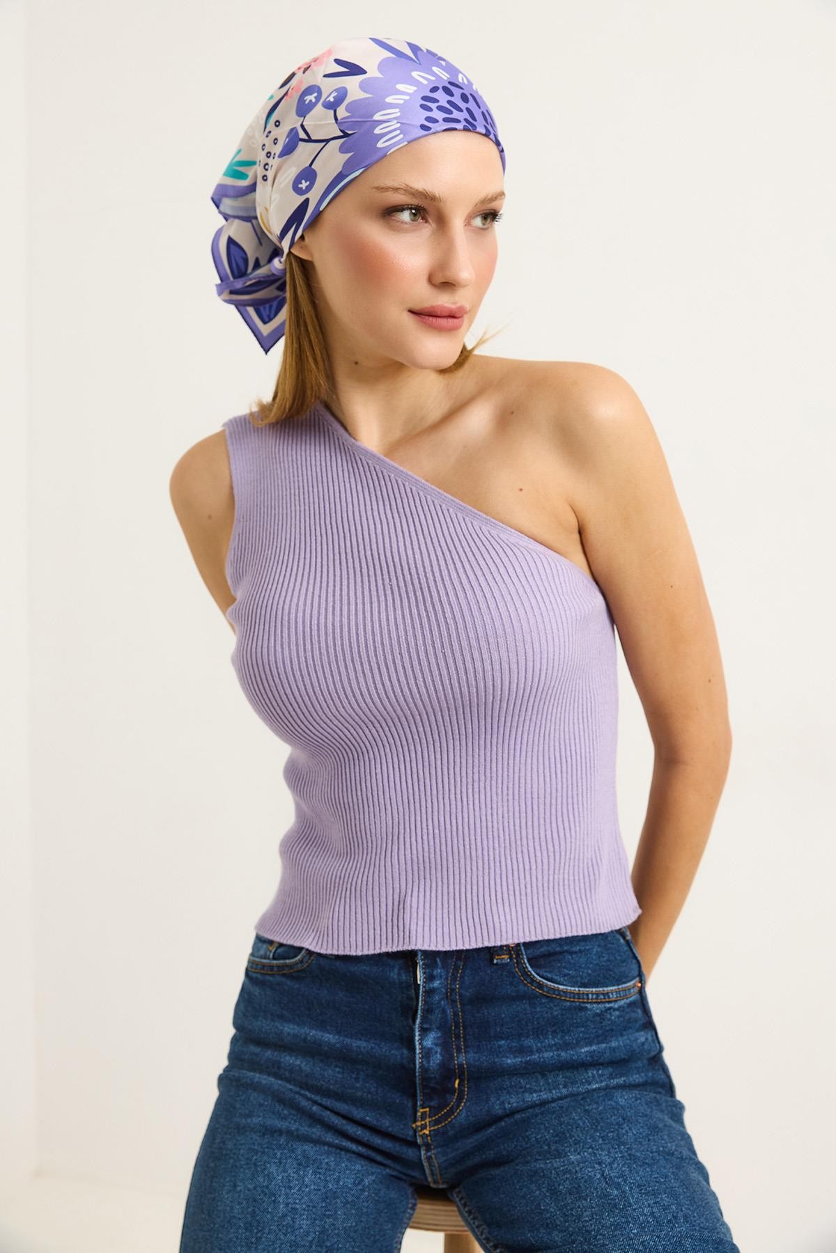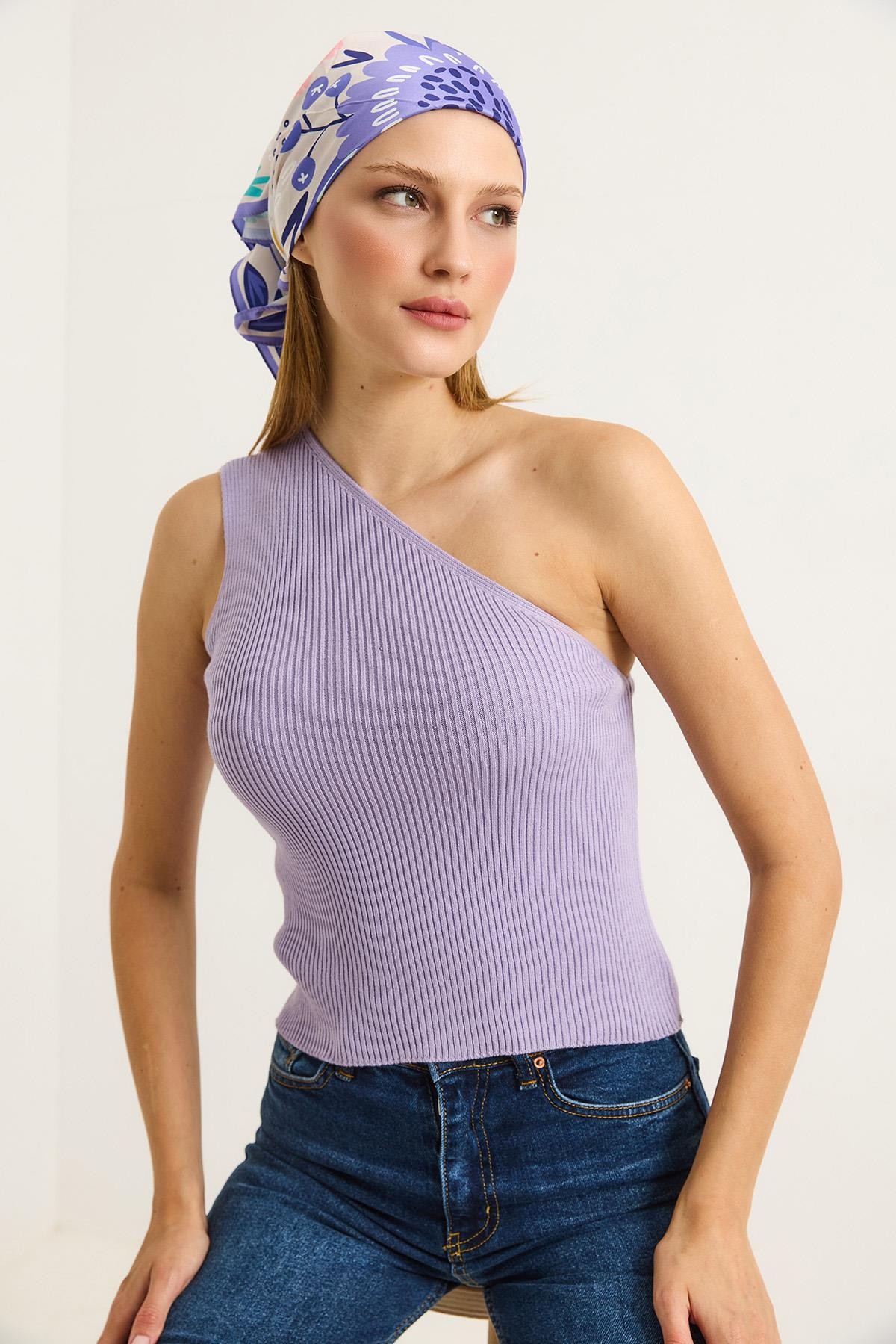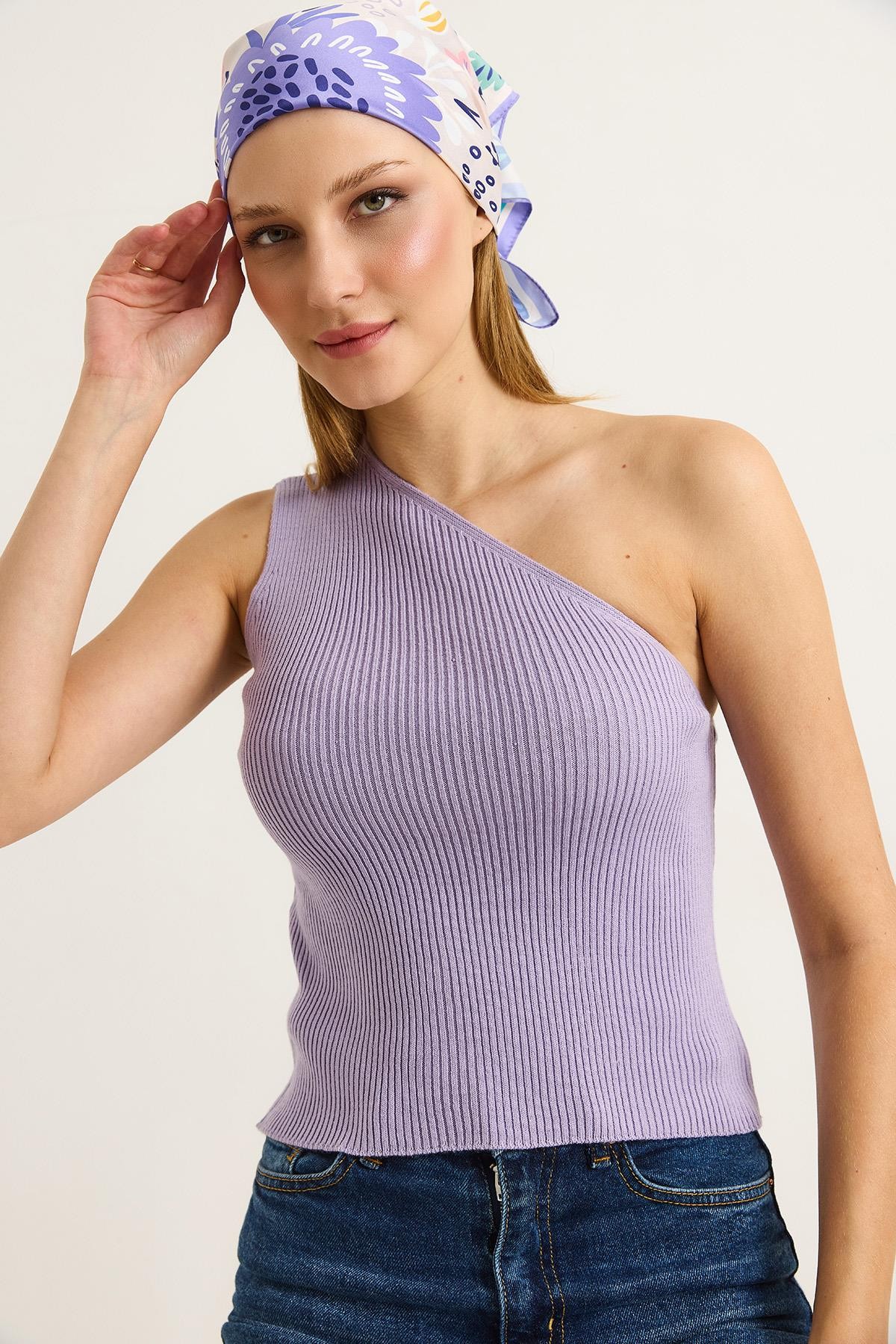 Tek Omuz Fitilli Kaşkorse Kadın Bluz Lila (251188BLZXLLA)