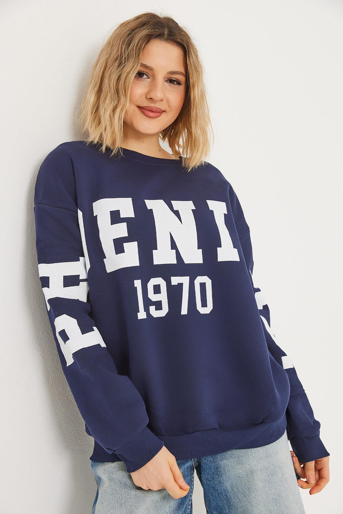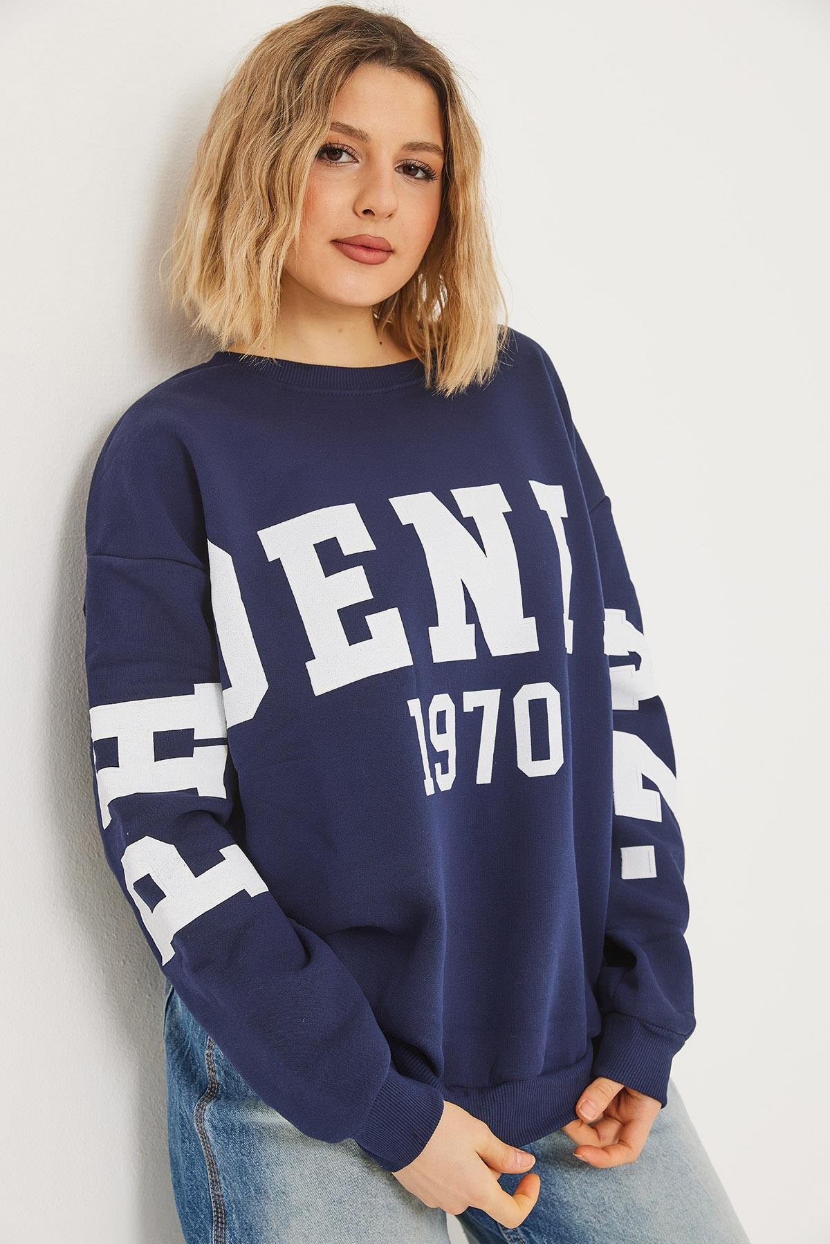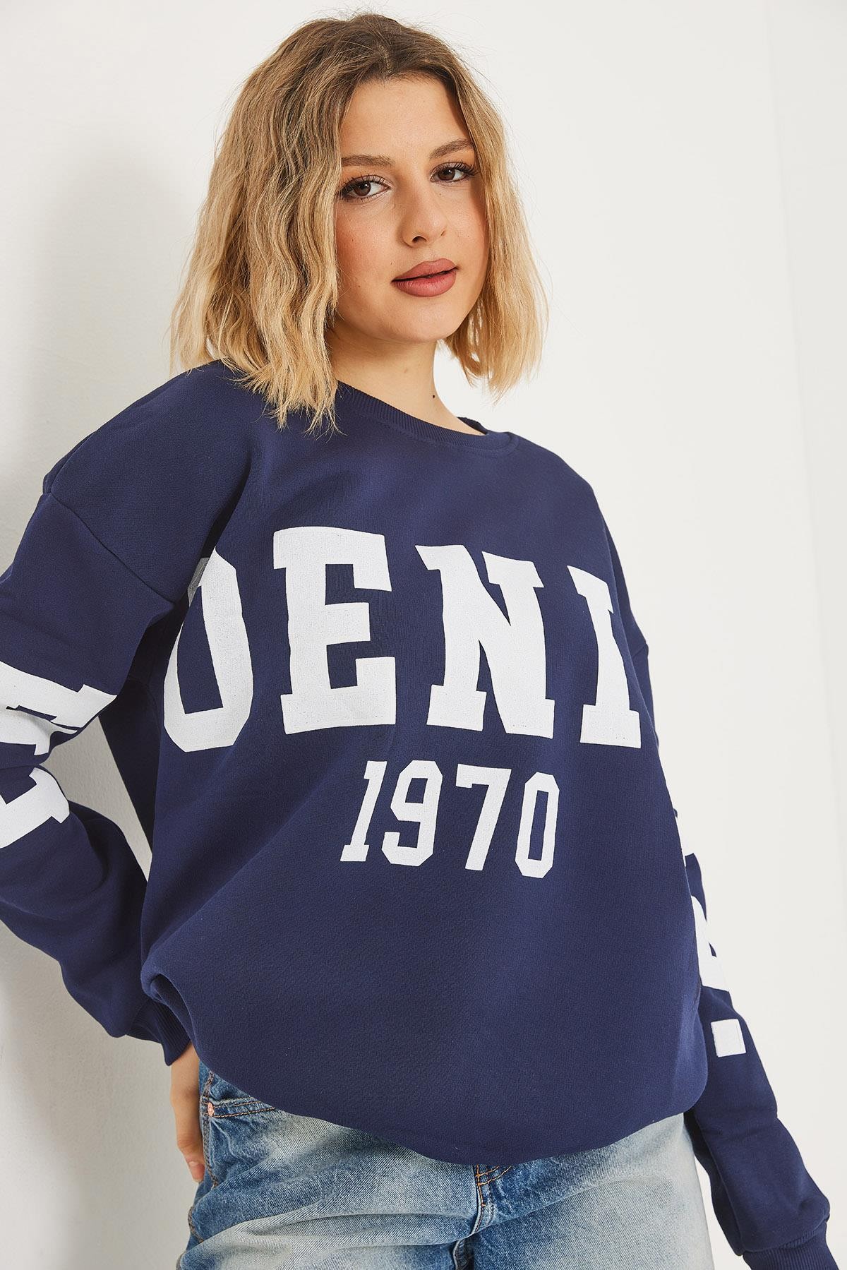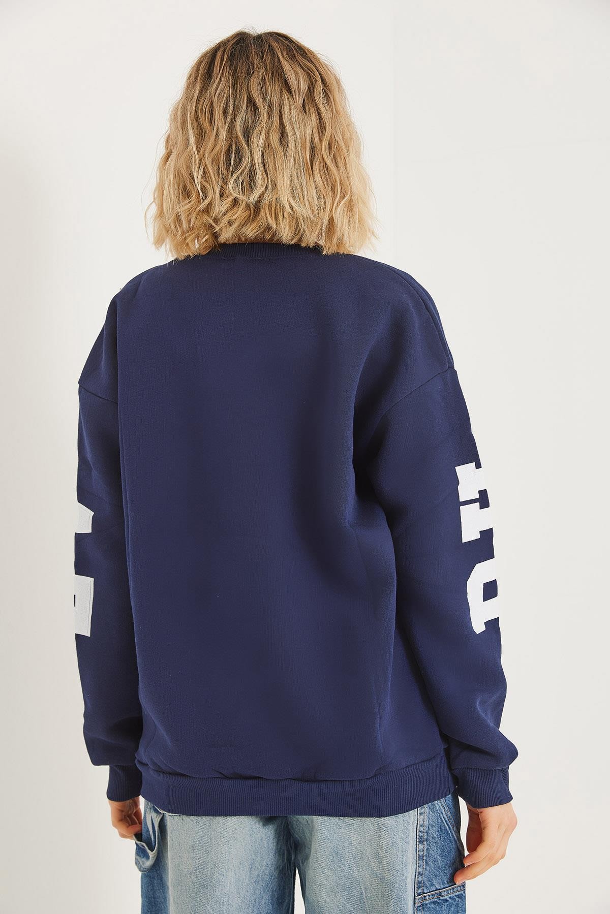 Üç İplik Baskılı Kapüşonlu Sweatshirt Lacivert (250067SWTXLACİ)