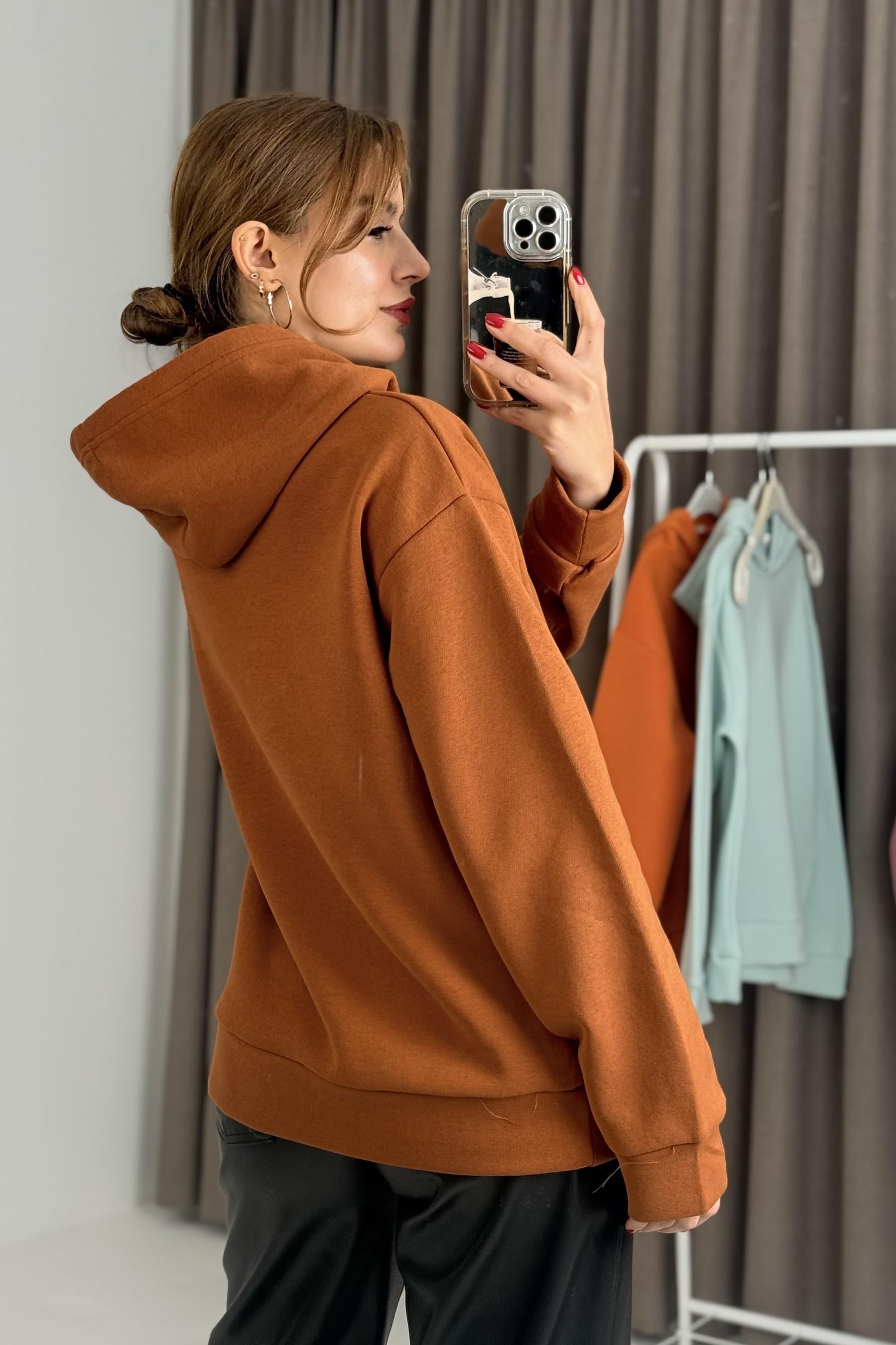 Üç İplik Kiremit Kalp Nakışlı Şardonlu Kapişonlu Sweat (600021SWTXKRM)