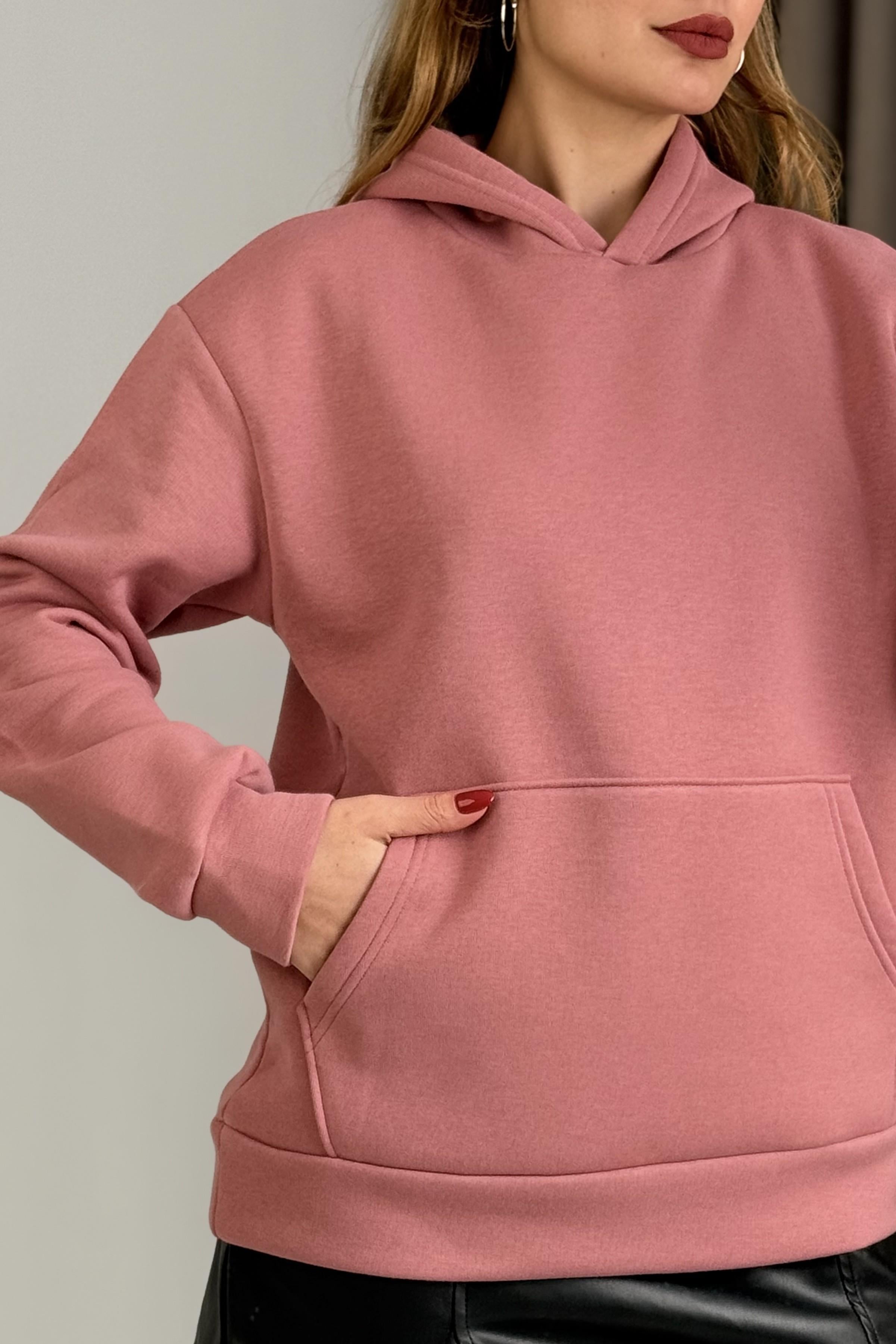 Üç İplik Pembe Şardonlu Kangru Cepli Kapişonlu Sweat (600020SWTXPMB)