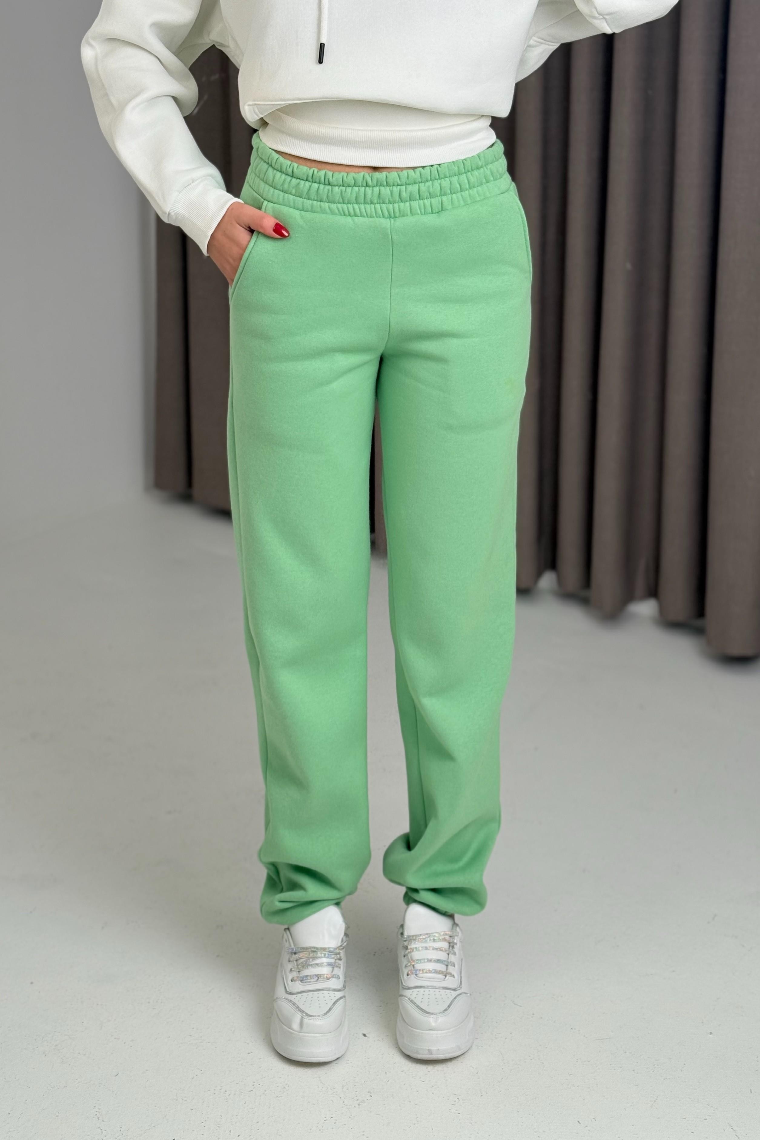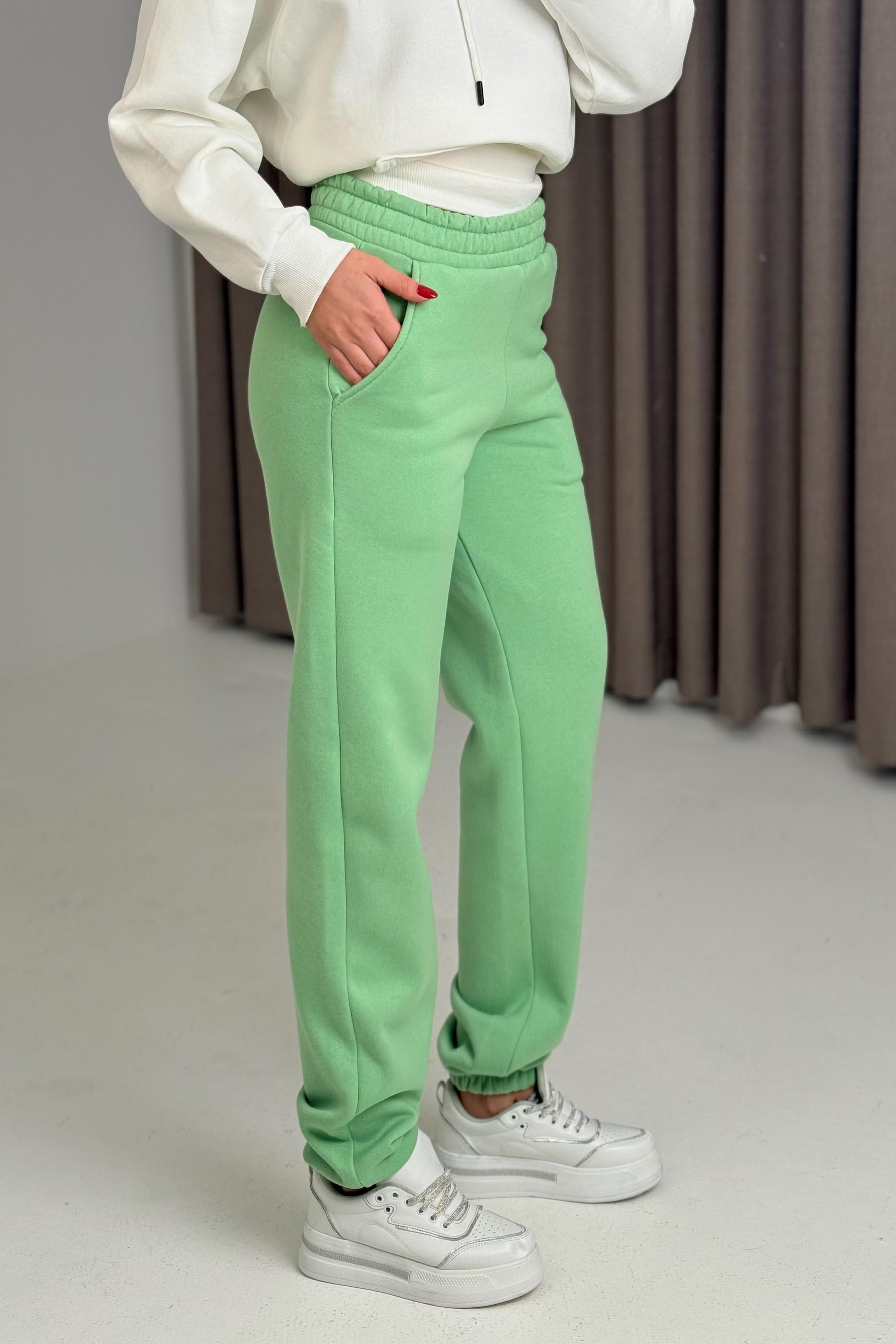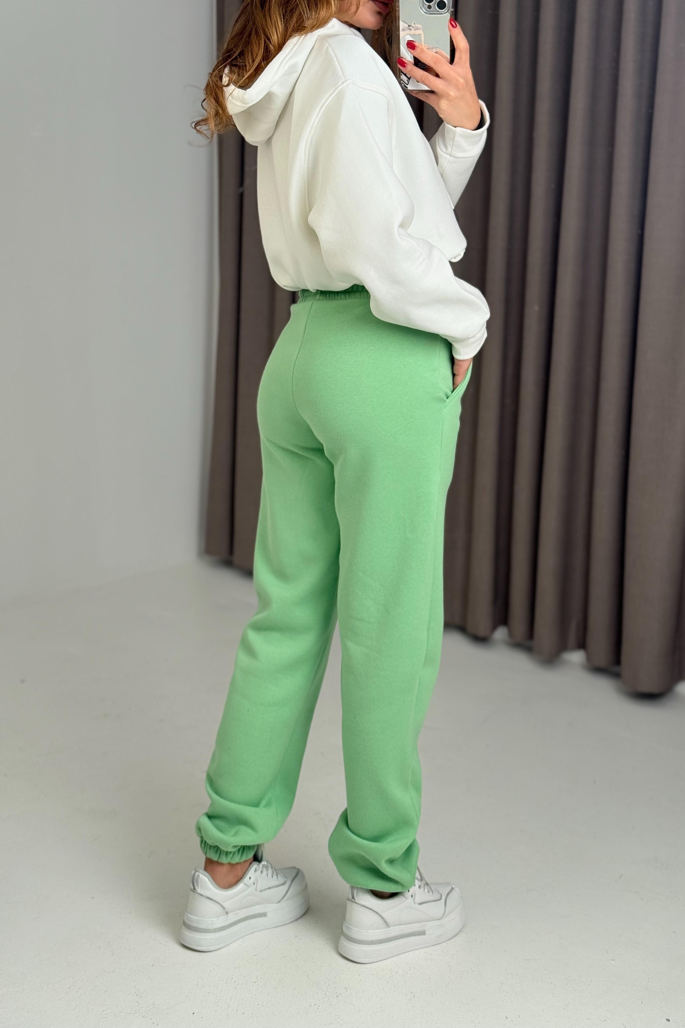 Üç İplik Şardonlu Kadın Eşofman Altı Su Yeşili