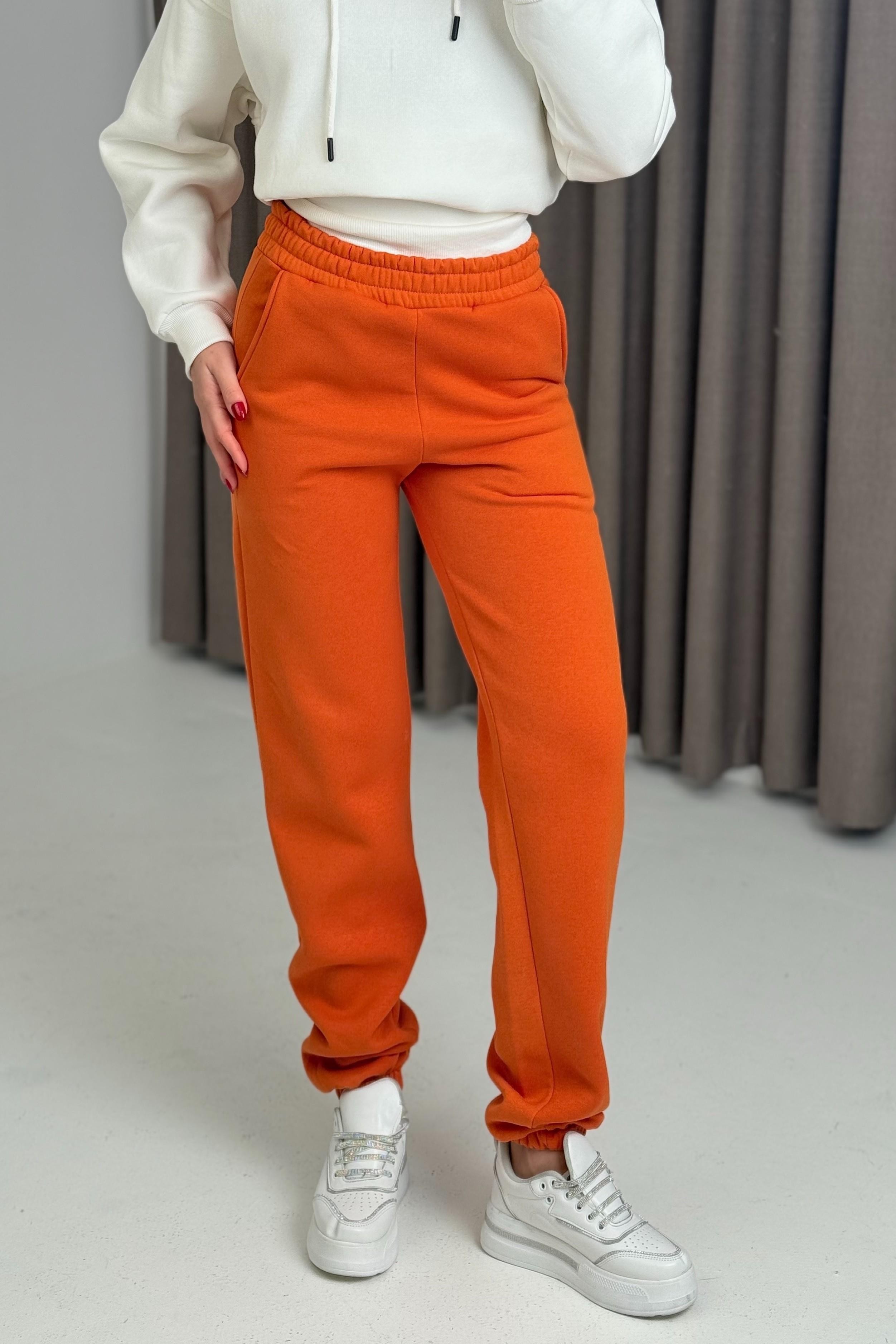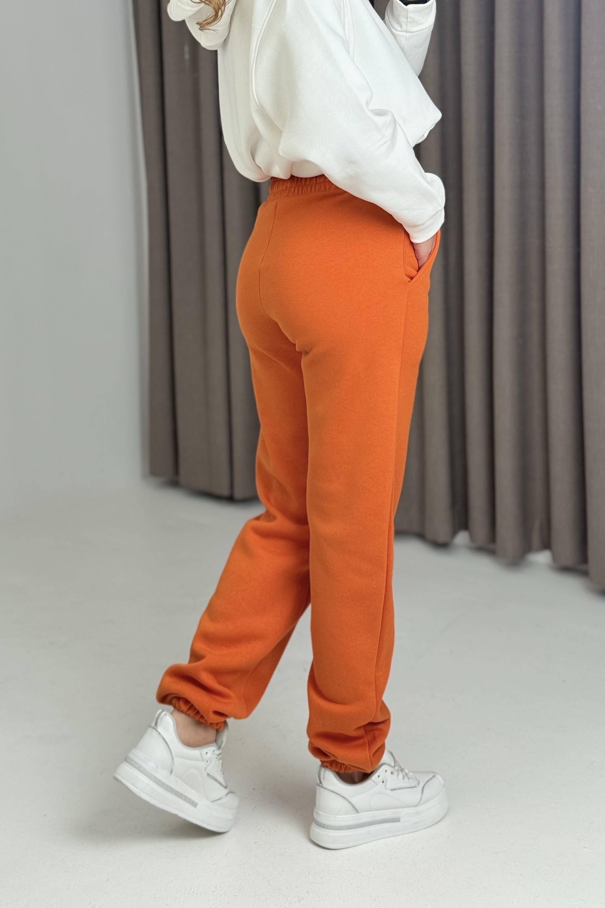 Üç İplik Şardonlu Kadın Eşofman Altı Turuncu