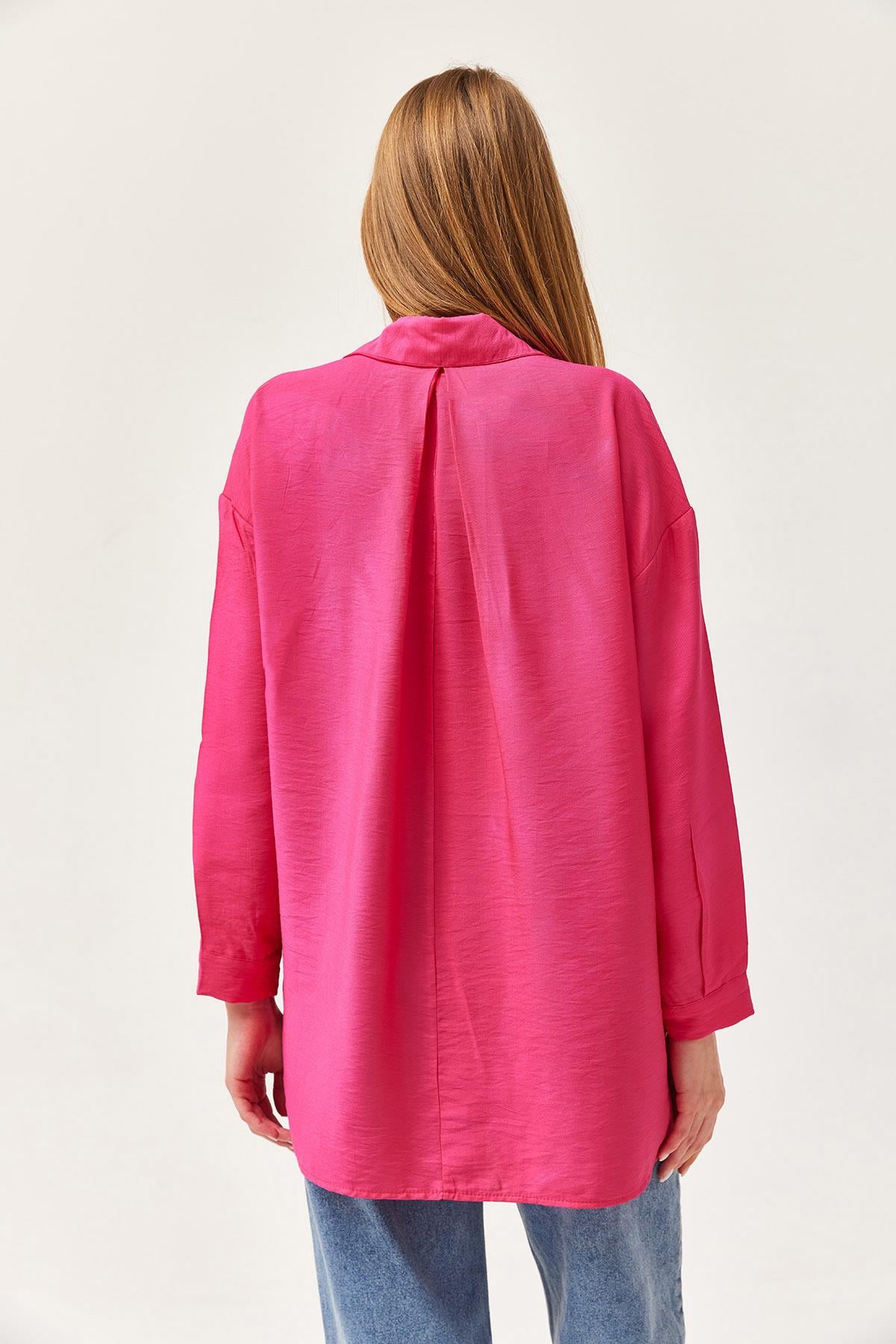Uzun Kollu Cep Detaylı Basic Gömlek Fuşya