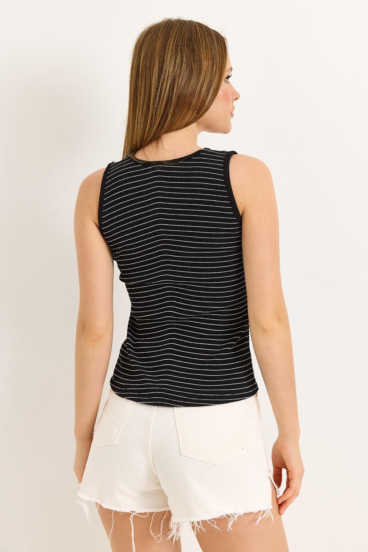 V Yaka Çizgi Desenli Bluz Siyah (500183BLZXSYH)