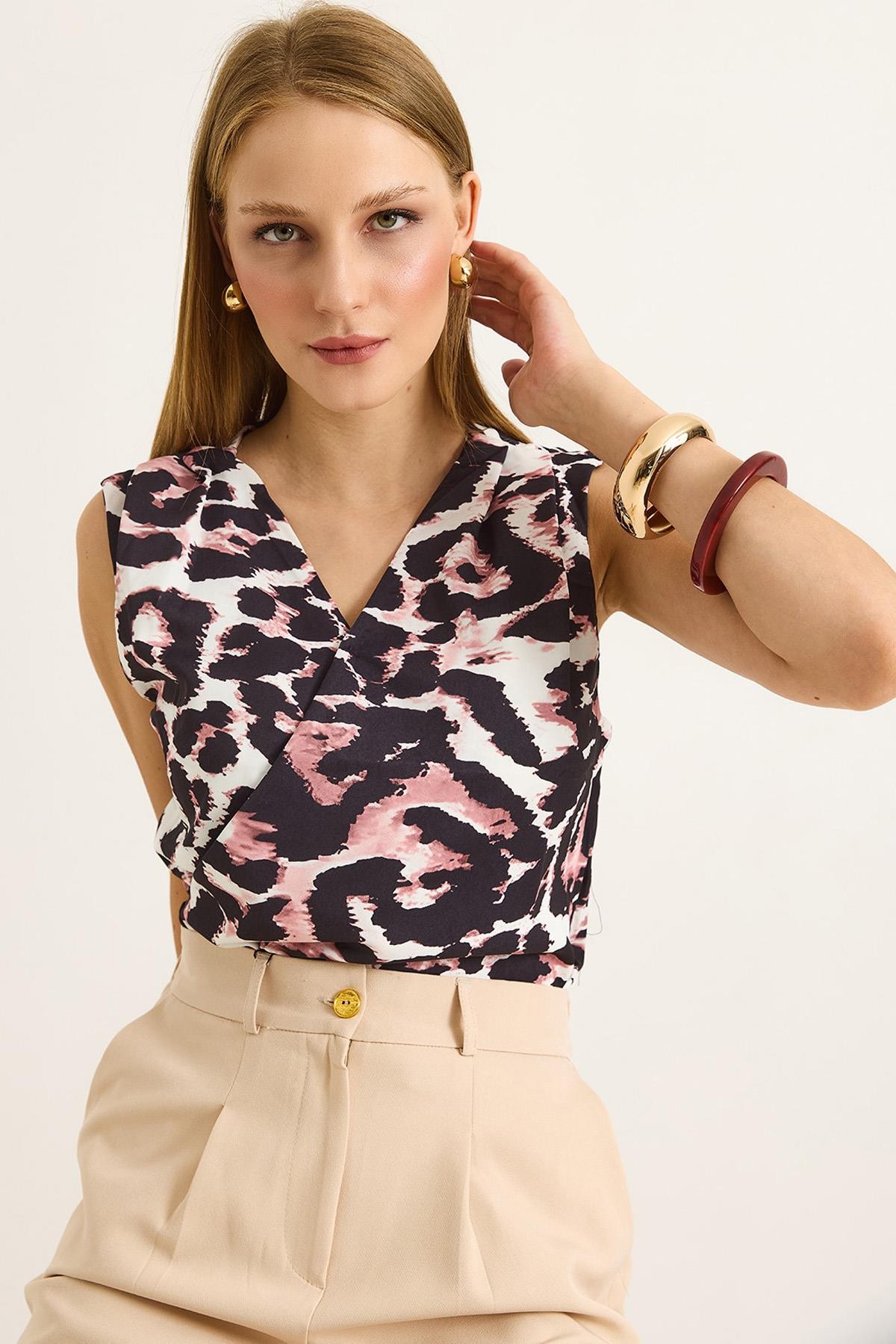 V Yaka Sıfır Kol Kadın Bluz Leopar (251177BLZXLEO)