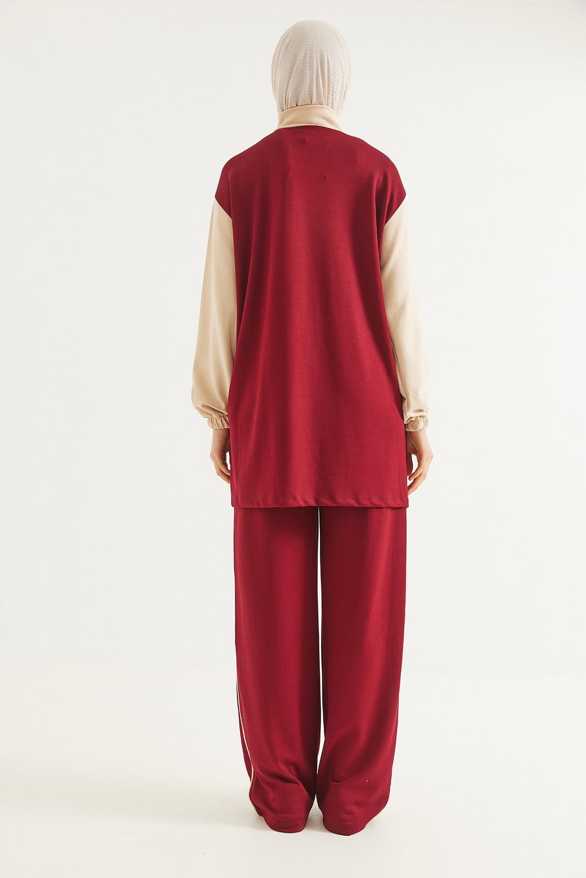 Yaka Fermuarlı Garnili Oysho Kumaş Takım Bordo