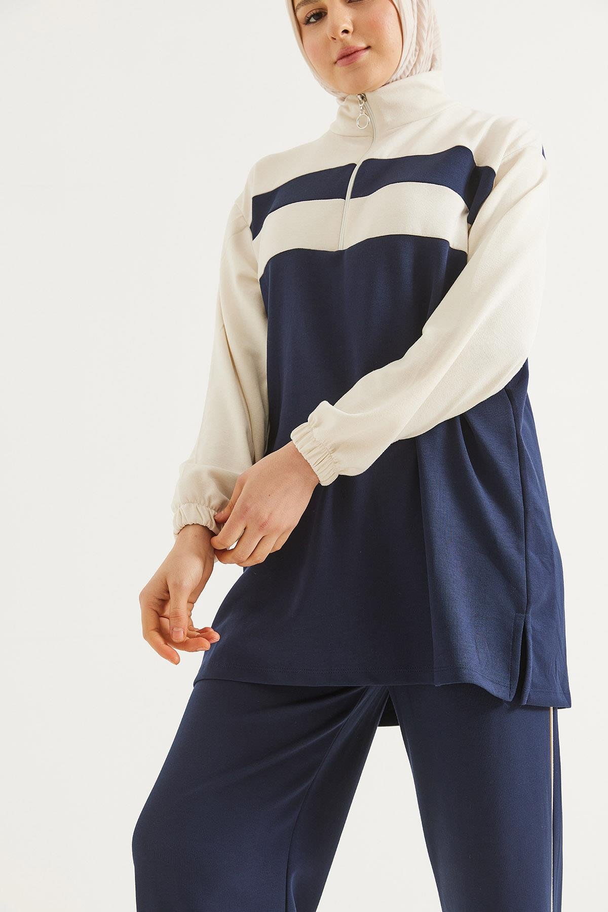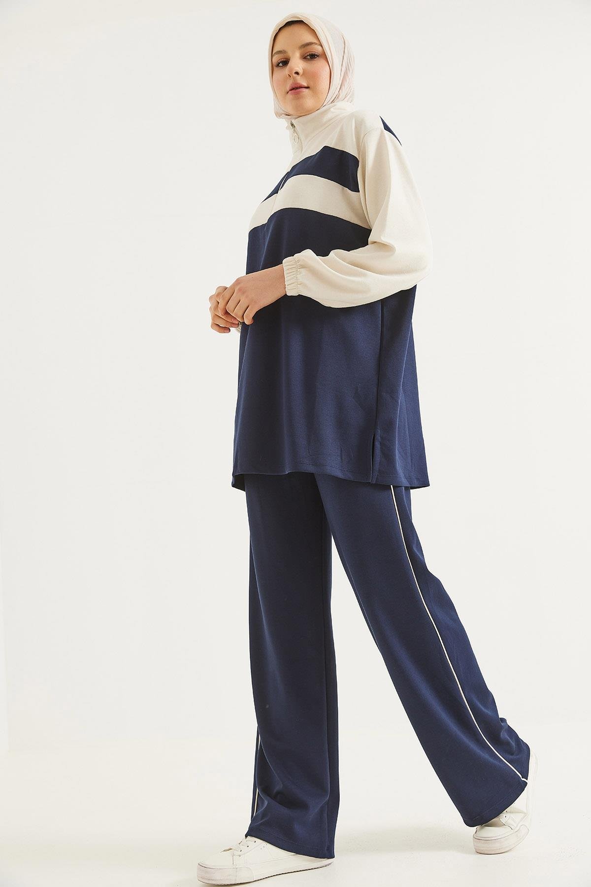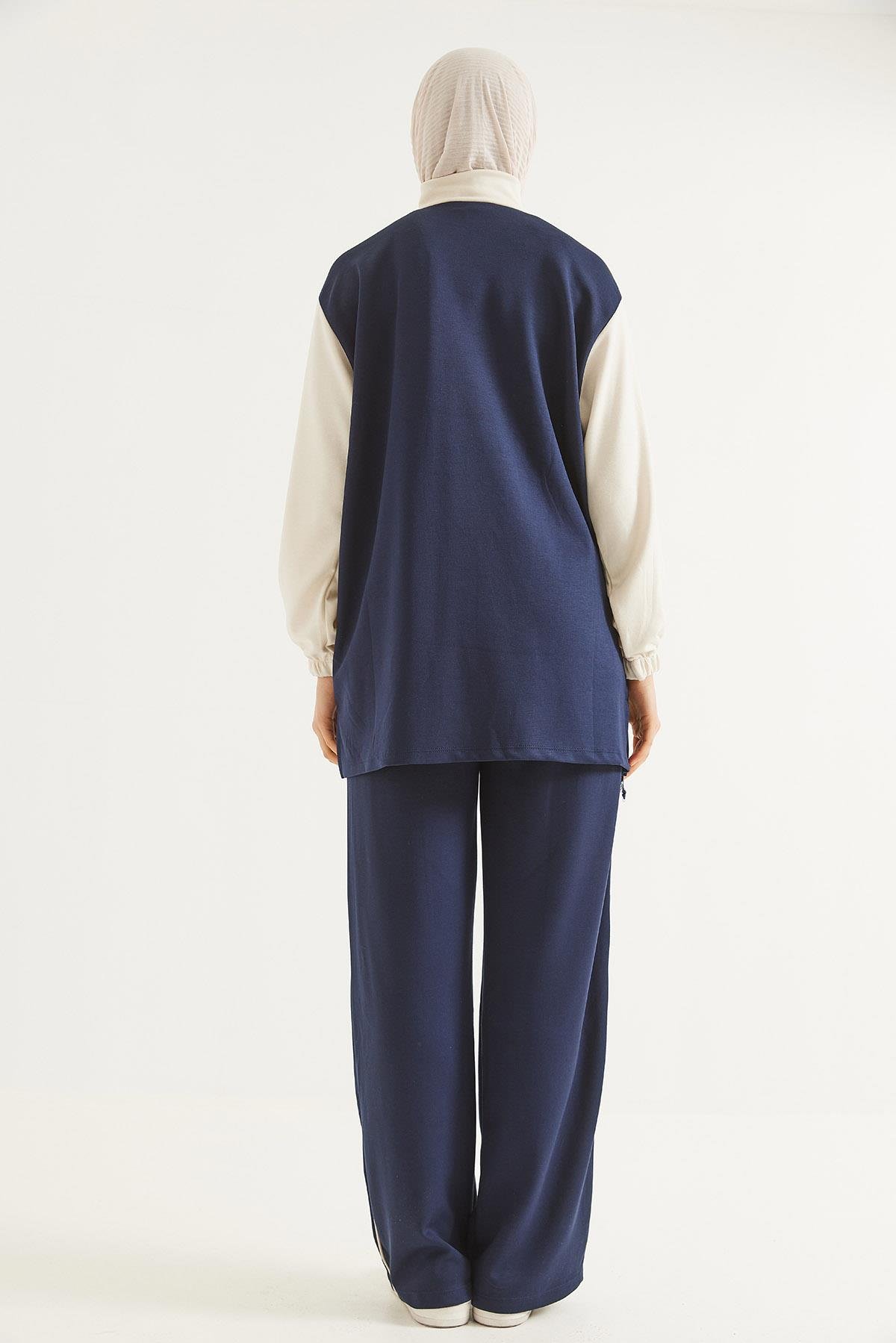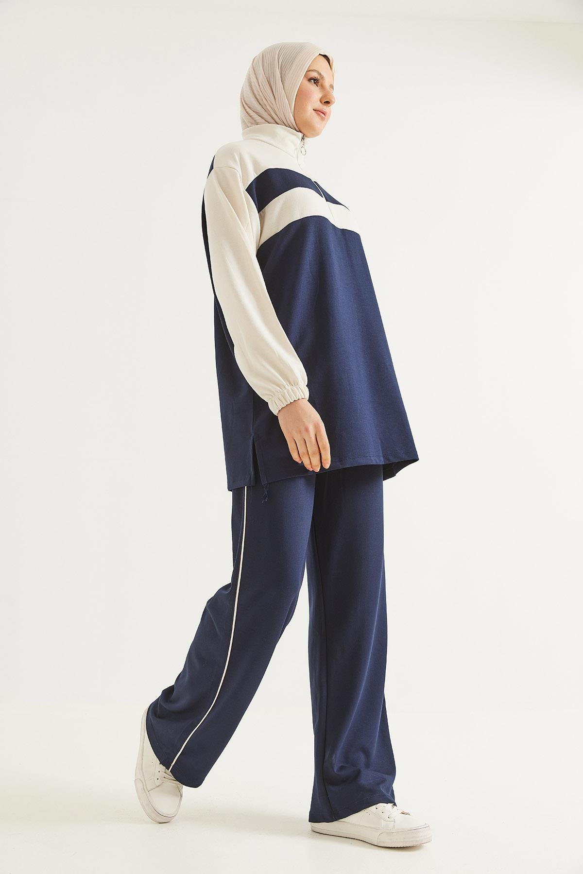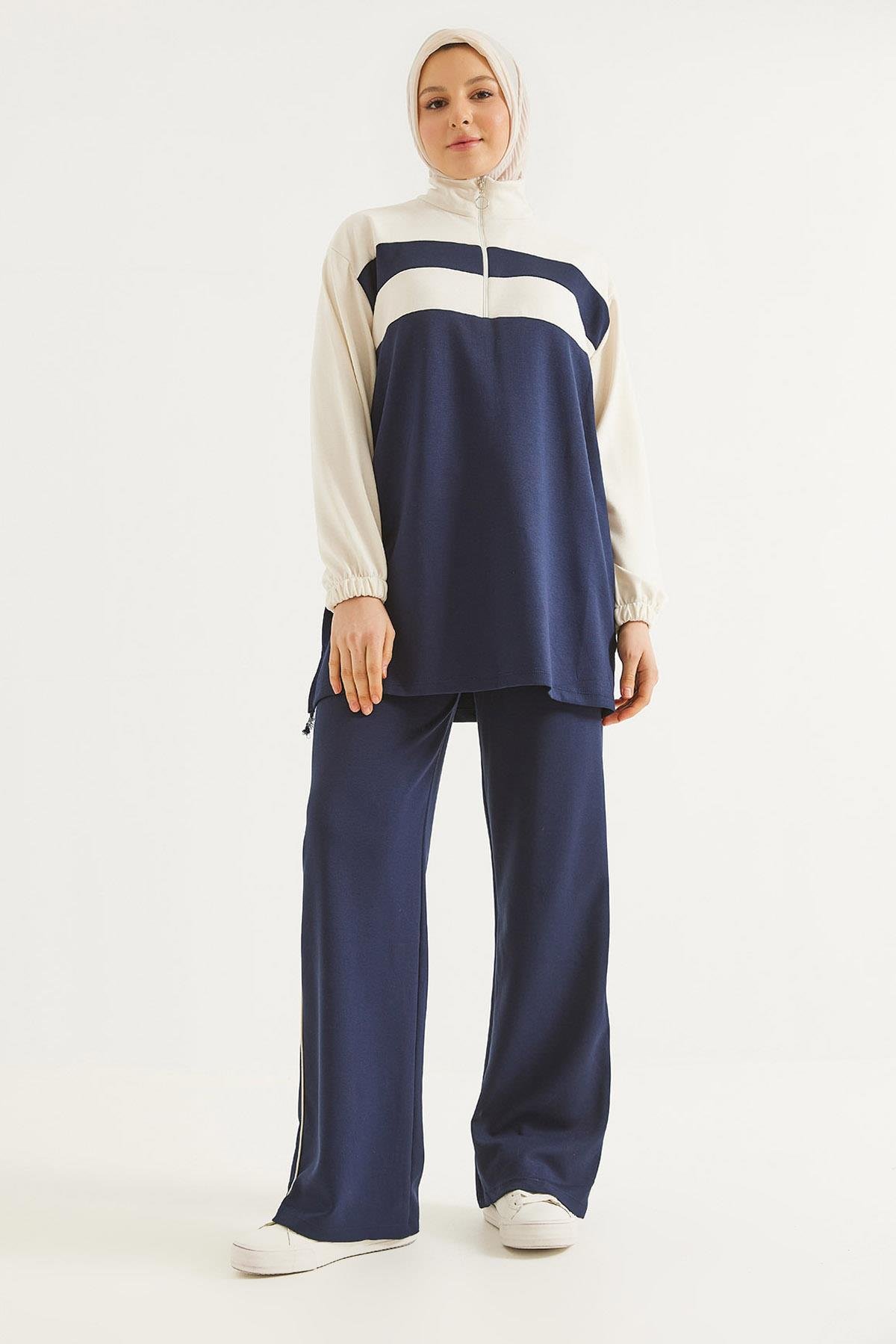 Yaka Fermuarlı Garnili Oysho Kumaş Takım Lacivert (250494TKMXLACİ)