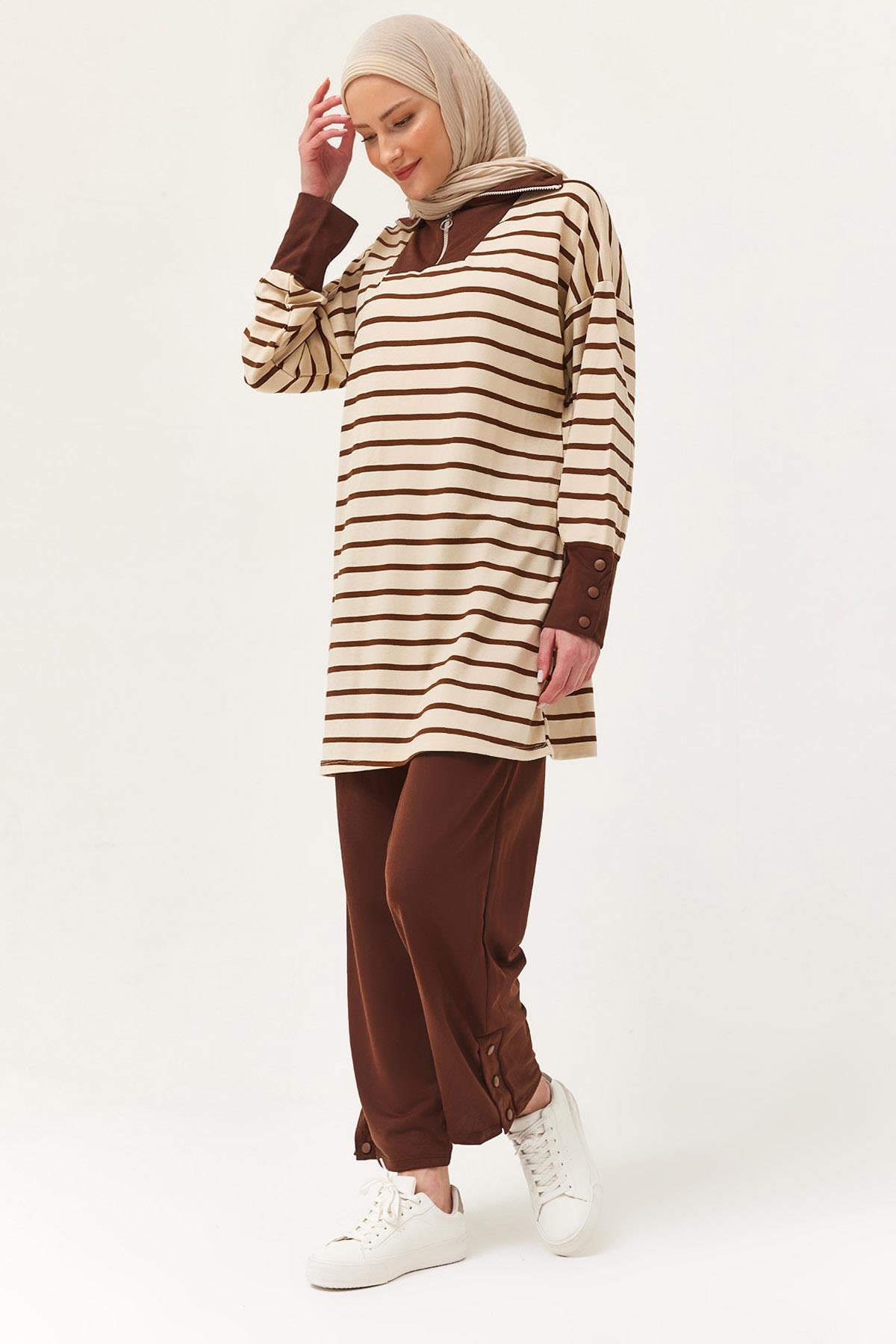 Yaka Fermuarlı Kol Detaylı İkili Takım Kahverengi (250436TKMXKHV)