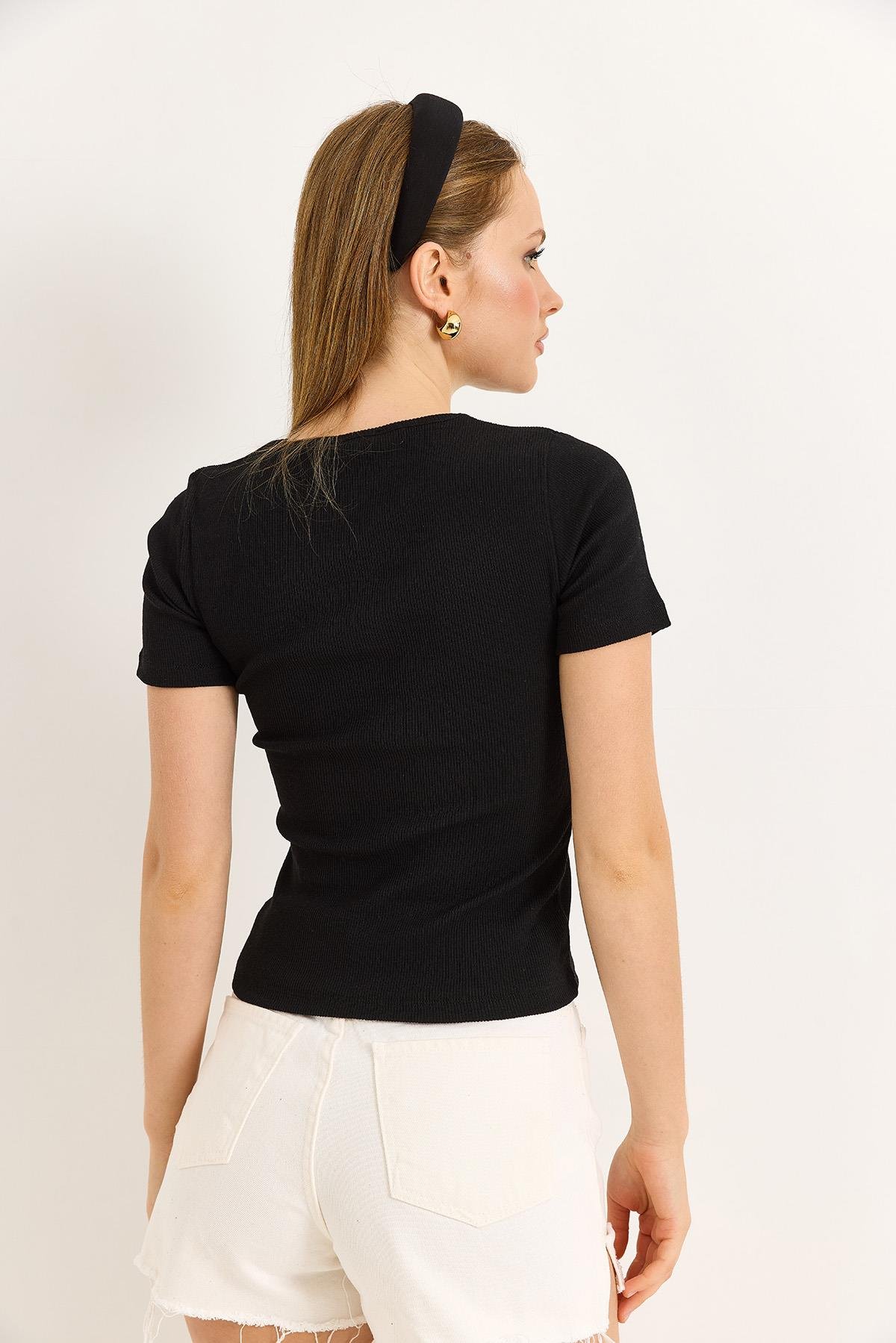 Yaka V detay Kısa Kol Kaşkorse Siyah