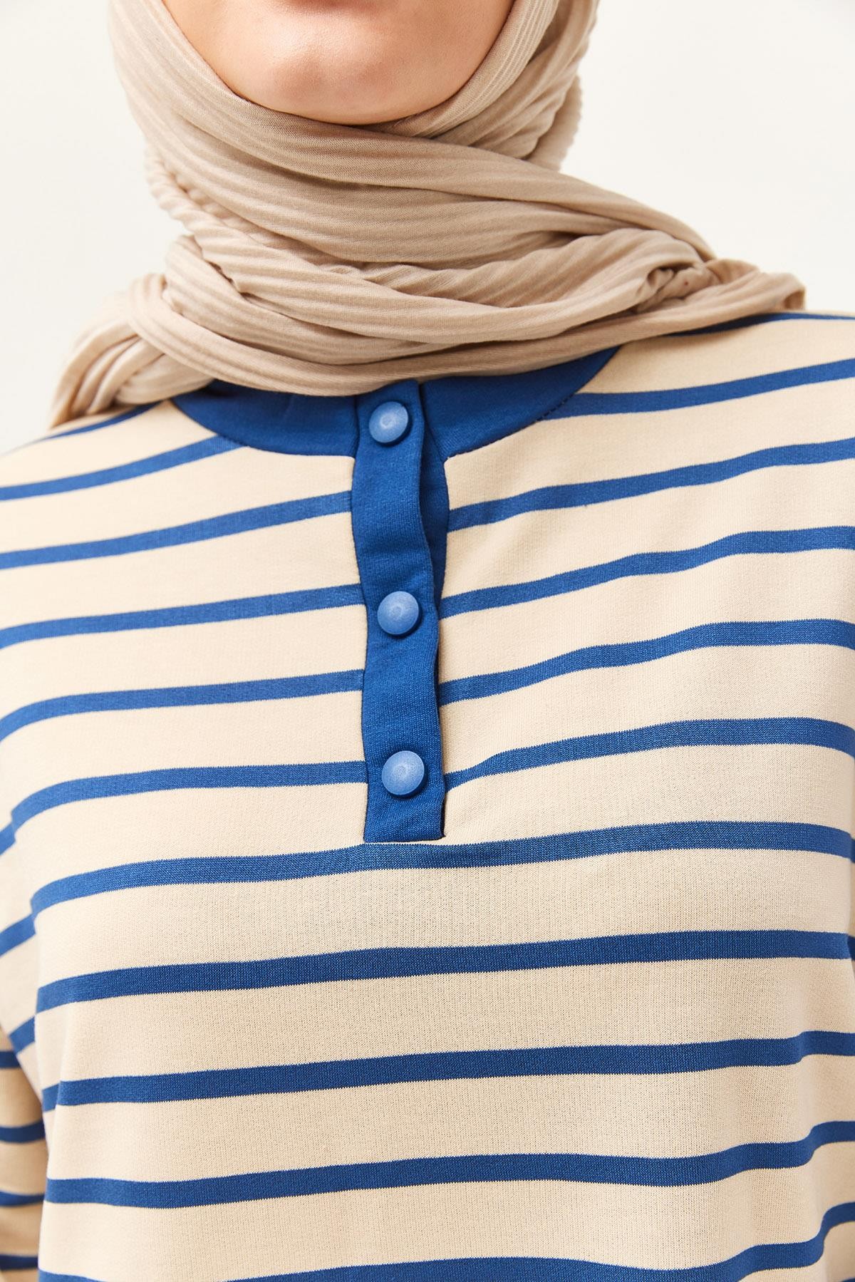 Yakası Düğmeli Çizgili İkili Takım Lacivert (250437TKMXLACİ)
