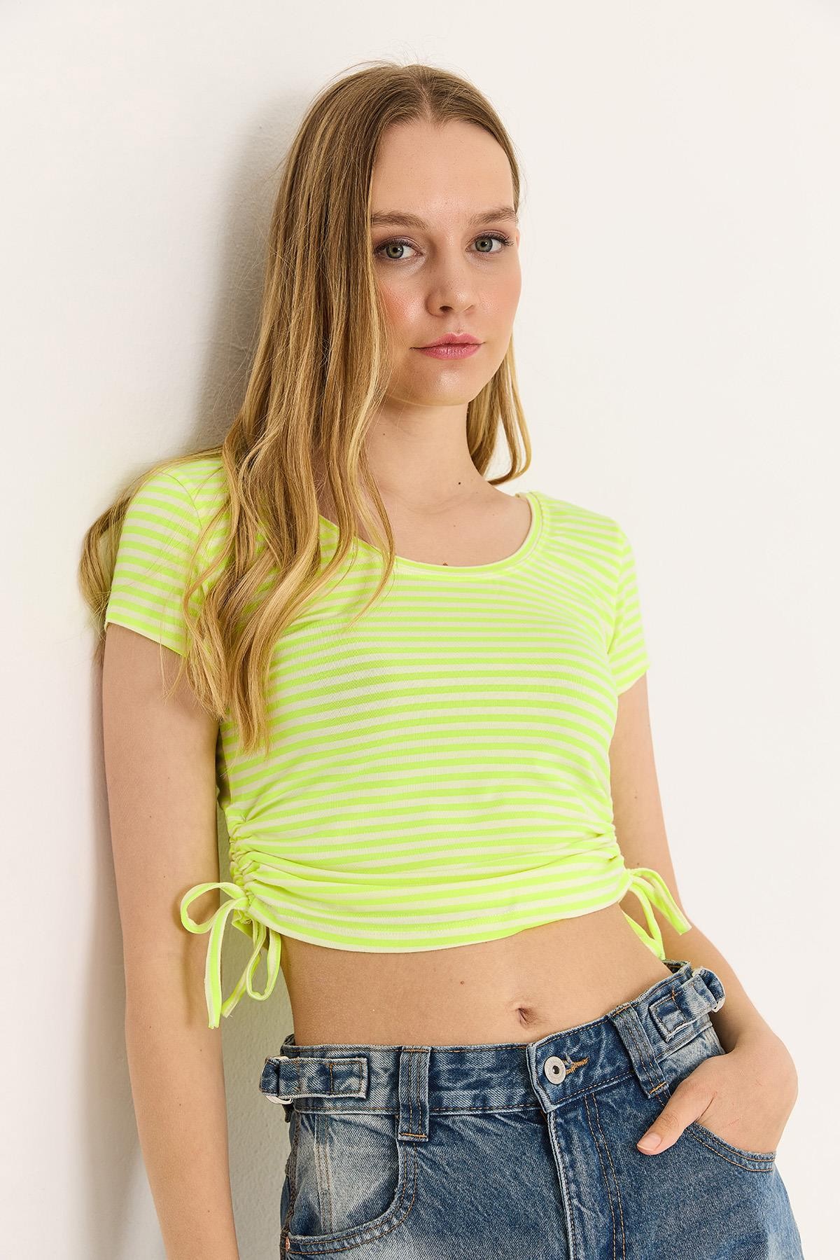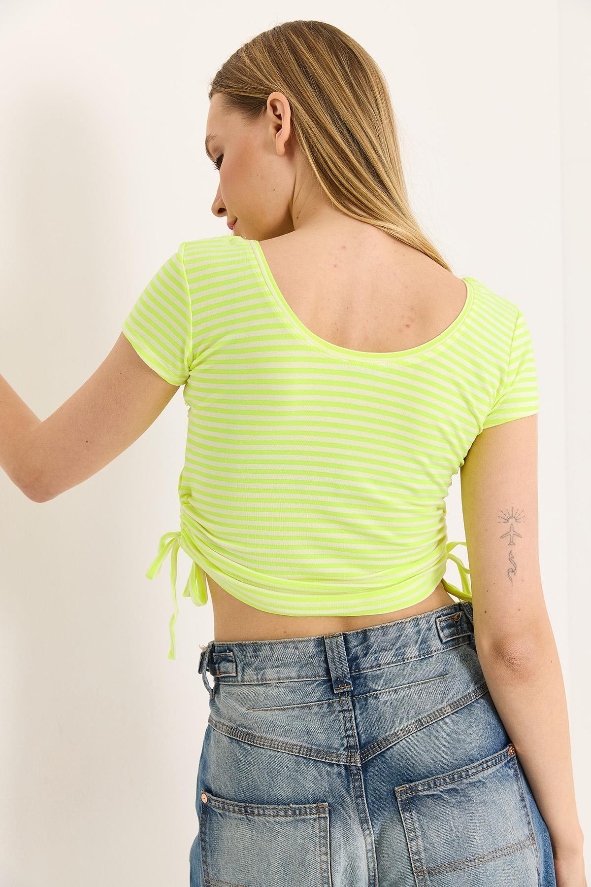 Yanları Büzglü Bisikley Yaka Crop Bluz Yeşil (251018BLZXYSL)