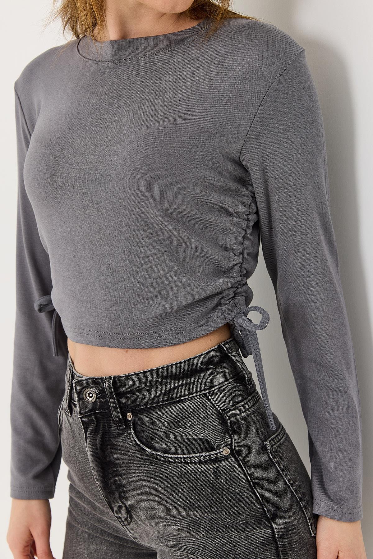 Yanları Büzgülü Uzun Kollu Antrasit Bluz (600145BLZXANT)